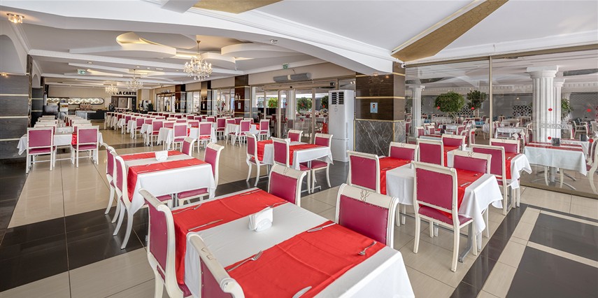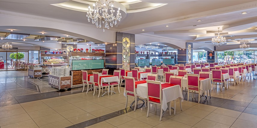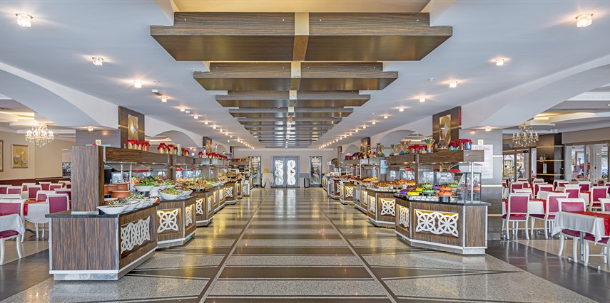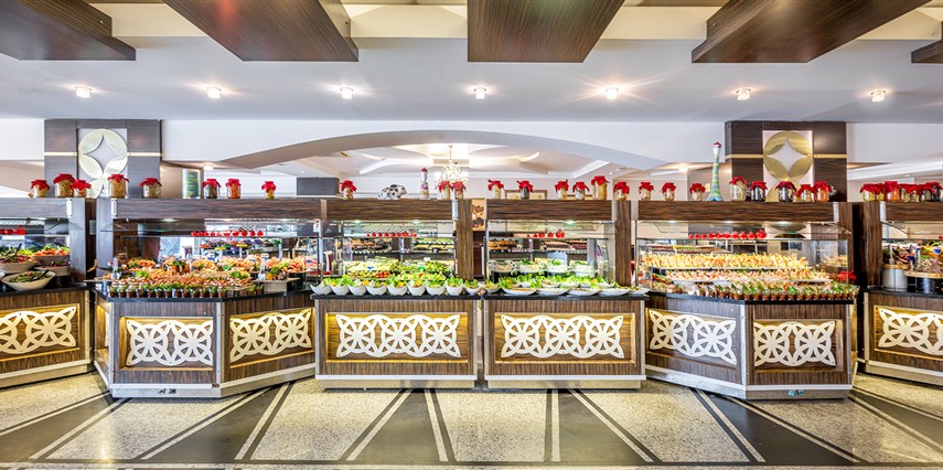 Sabah kahvaltısı, öğle ve akşam yemekleri açık büfe olup tesisin belirlemiş olduğu bazı yerli alkollü ve alkolsüz içecekler 10:00 ile 02:00 saatleri arasında ücretsizdir. Taze Portakal suyu, Şampanya ücretlidir.