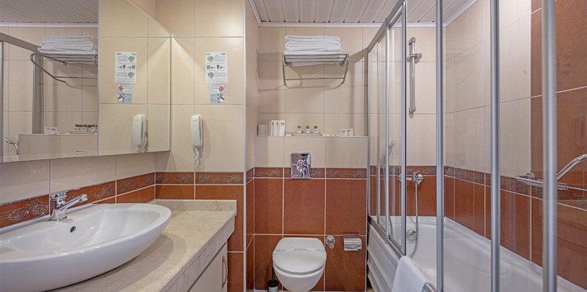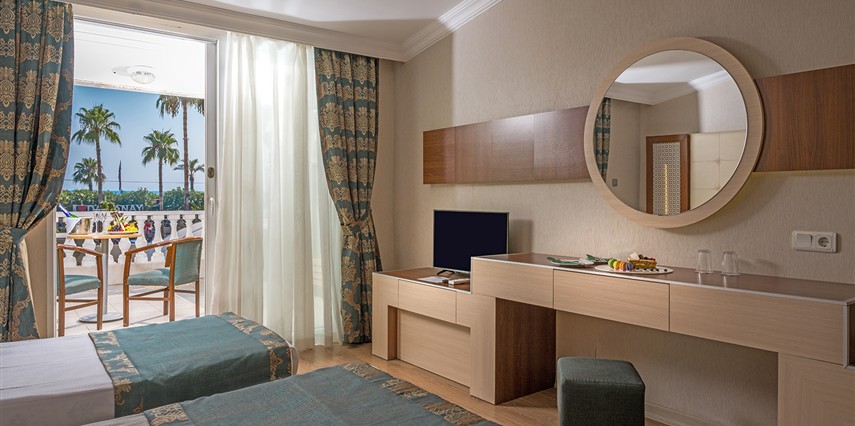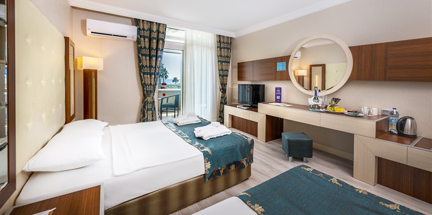 * Tüm Odalarda; Küvet veya duşakabin, direkt telefon, Tv uydu sistemi, müzik yayını, minibar (soft içecekler), klima, balkon, saç kurutma makinesi, su ısıtıcı, emanet kasa ve parke zemin bulunmaktadır.