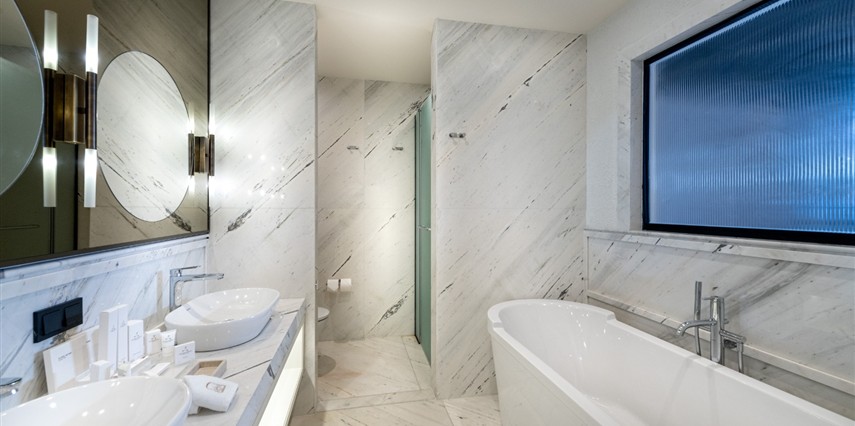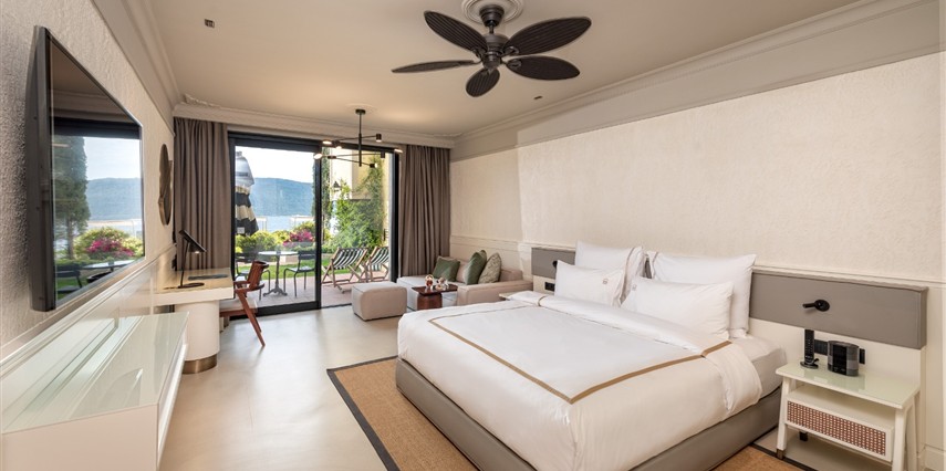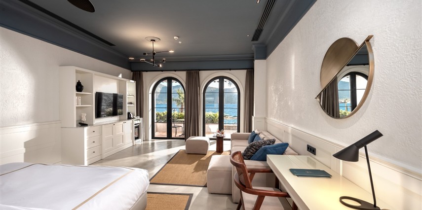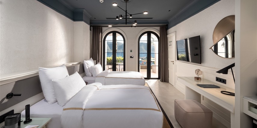 Otelin konforu ve lüksü eşsizdir. Ferah, havadar ve zarif bir şekilde tasarlanmış odaların tümü, içeriye bolca doğal ışık alan ve Akdeniz'in muhteşem manzarasını sunan tavandan tabana pencereler ile rahat ve keyifli bir konaklama için ihtiyacınız olan her şeyle donatılmıştır. Yataklar son derece konforludur, çarşaflar ve havlular en yüksek kalitededir.