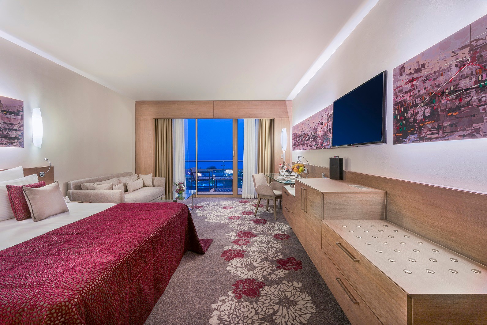 A’la Carte Restoranları, havuzları, spor aktiviteleri ve eğlence programları ile her yaştan misafirimizin beklentilerini aşmayı amaçlamaktadır. 125.000 m² alana kurulu 569 odalı otelin iddialı mimarisi, konumu, havuzları ve Spa merkezi ile adeta bir cenneti andırır.