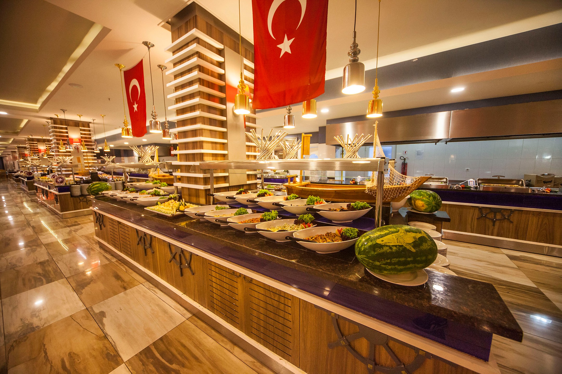 Her gün açık büfe kahvaltı servisi ile güne güzel başlayarak restoranlarda taze deniz ürünleri ve yerel yemeklerin tadına varabilirsiniz. Barlarda ise serinletici içecekler ve aperatifler sunulmakta. 1 Ana Restoran ve 5 A’la Carte Restoranımızda Osmanlı mutfağı, İtalyan mutfağı, Asya mutfağı, Grill mutfağı ve Meksika mutfağının lezzetli yemekleri ile tatilinizi taçlandırabilirsiniz.