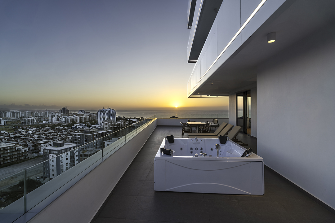 Infinity Pool, Sessizlik ve lüksün buluştuğu, 18 metre uzunluğundaki zarif bir sonsuzluk havuzudur. Bu özel alanda, 140 cm derinlikteki suyun içinde yüzerken, çevrenin huzuruyla bütünleşeceksiniz. Infinity Pool, modern mimarinin zarif çizgileriyle hazırlanmış ve Kıbrıs'ın ilk yedi yıldızlı yaşam tarzını yansıtan bir keyif alanı olarak tasarlandı.