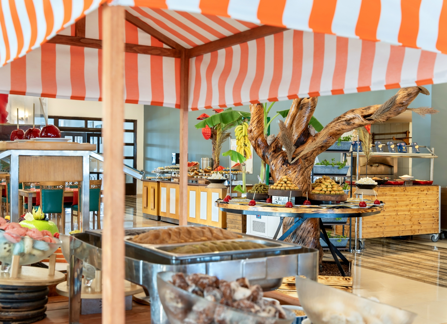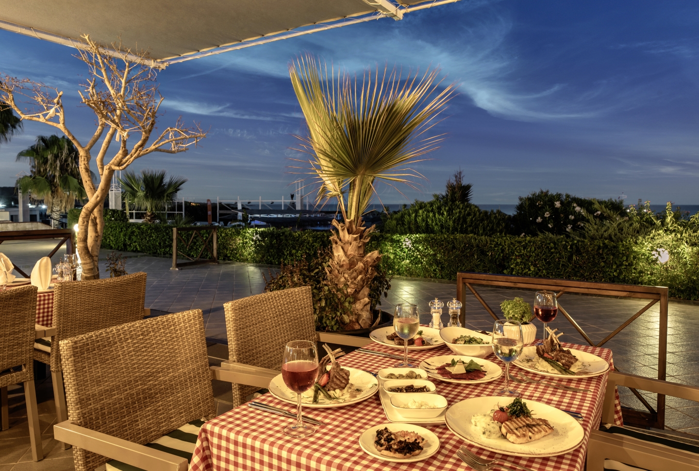 Sabah kahvaltısı, geç kahvaltı, öğle ve akşam açık büfe yemekler ücretsiz. Tesisin belirlemiş olduğu markalar dahilinde bazı yerli ve yabancı premium alkollü ve alkolsüz içecekler tesisin belirlemiş olduğu barlarda ücretsiz. Ana restoranda 16 yaş üzeri için ayrı bölüm bulunuyor.