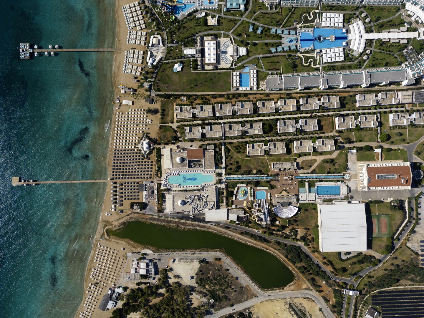 - Denize sıfır konumda olan tesisin 250 m uzunluğunda özel kum plajı ve 1 adet iskelesi mevcuttur.