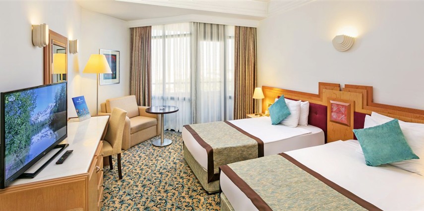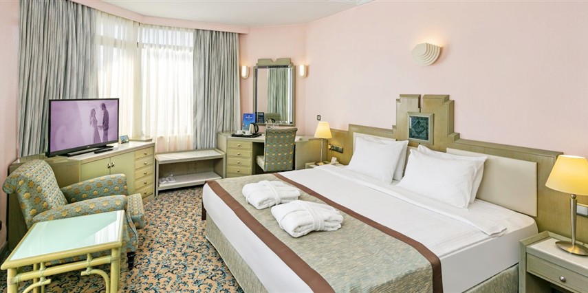 * Standart Oda : 320 adet / 28 m² 259 tanesi ayrı yataklı, 12 adet birleşik yataklıdır, uydu yayın TV, saç kurutma makinesi, direkt telefon, mini bar, döşeme halı, merkezi klima, banyo/küvet, balkon, kasa mevcuttur.