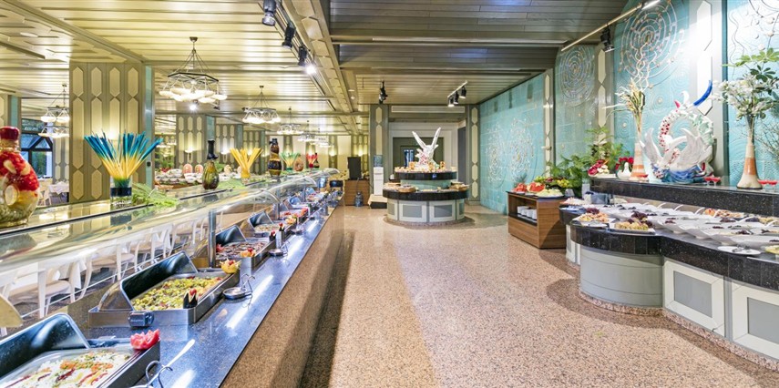 Sabah kahvaltısı, öğle ve akşam yemeği açık büfe olup, tesisin belirlemiş olduğu markalar dahilinde yerli alkollü ve alkolsüz içecekler 23:00'a kadar ücretsizdir, 23:00 ile 08:00 saatler arasında ücretlidir.
