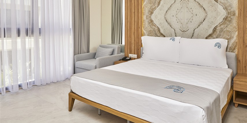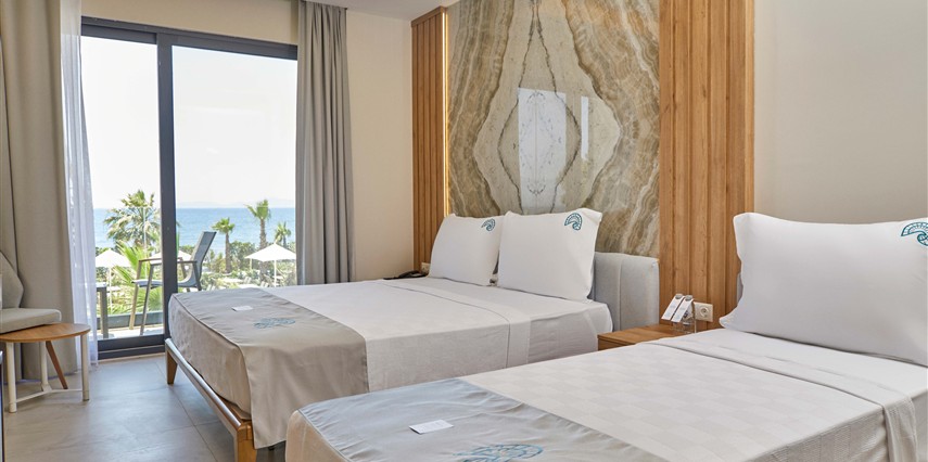 * Deluxe Deniz Manzaralı Oda; 34 m² genişliğindedir. 19 adettir. Maximum 3 yetişkin veya 2 yetişkin + 1 çocuk +1 bebek konaklamaya uygundur.