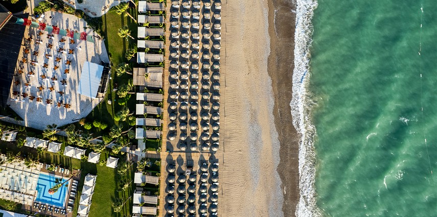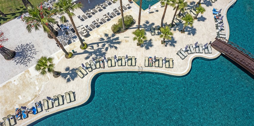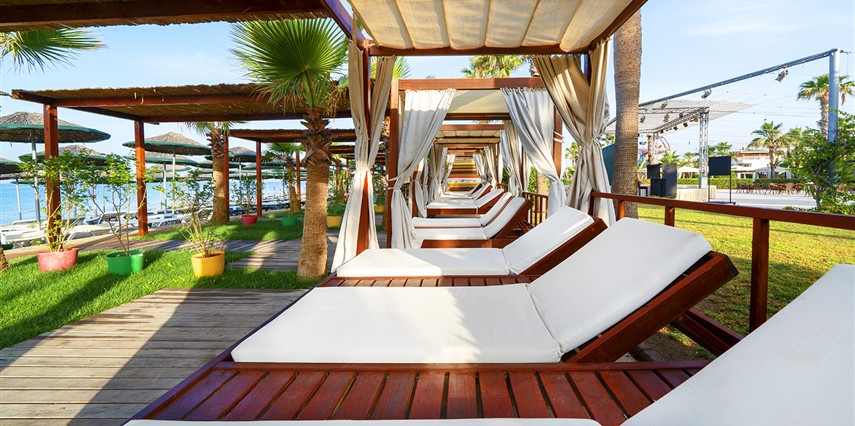 * Ana havuz, çocuk havuzu ve sahile Cabanalar yerleştirilmiştir.