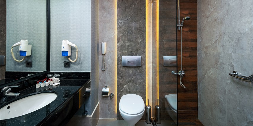 * Engelli Odası: Standart odalarımızla aynı özelliklere sahiptir. Engelli misafirlerimizin kullanımına uygundur. Sadece 1. Katta, lobi ve asansöre yakındır. ( 5 oda )