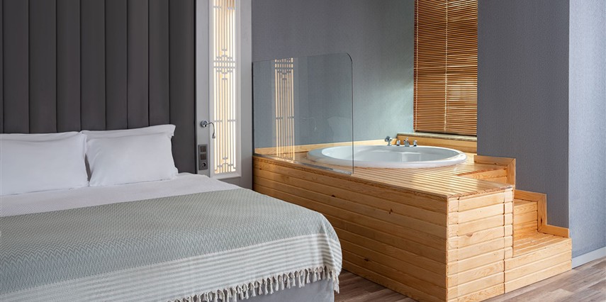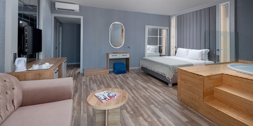 * Junior Suite: 31 m² büyüklüğünde maksimum 2 kişi + bebek kapasiteli jakuzili odalarımızdır. Kara ve deniz manzaralı seçenekleri bulunmaktadır. (17 oda )