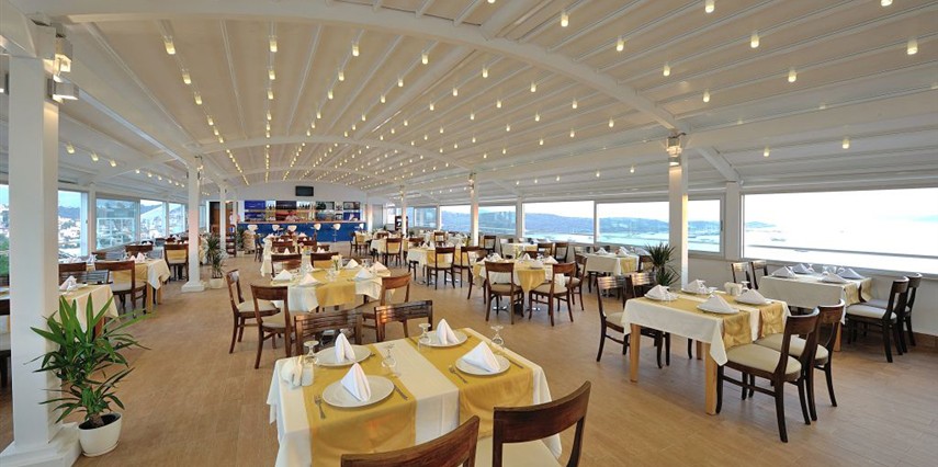 Sabah kahvaltısı, öğle ve akşam yemeği açık büfe olup, tesisin belirlemiş olduğu markalar dahilinde Yerel alkollü içecekler, yerel bira, meşrubat, çay, kahve (makine kahvesi) 22:50'ye kadar ücretsizdir.