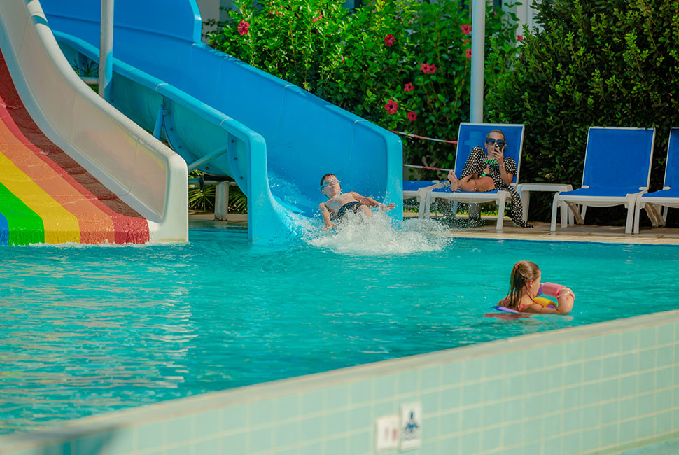 Su Kaydırakları: Otelde 2 adet su kaydırağı bulunmaktadır. Saat 10.00 – 12.00 ve 14.00 – 16.00 arası, 1 adet yetişkin - 1 adet çocuk su kaydırağımız, keyifli anlarınıza renk katacak.