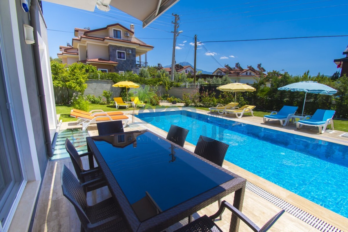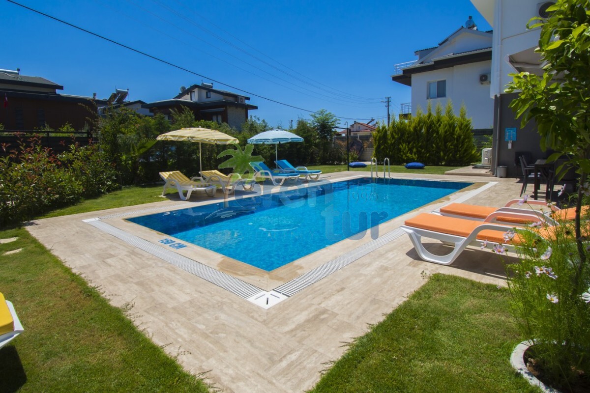 Fethiye Çalış mevkiinde bulunan tatil villamız birbirinden ayrı iki bağımsız bölüme ve 15 kişiye kadar konaklama kapasitesine sahiptir. Doğa içerisinde bulunan villamız geniş ailelerimiz ve kalabalık arkadaş grupları için ideal tatil villalarımız arasındadır. Gün batımı ile dünyaca ünlenmiş Çalış plajına ise yalnızca 2 km'lik mesafededir. Yemyeşil bahçesi ile keyifli bir tatil sizleri beklemektedir.