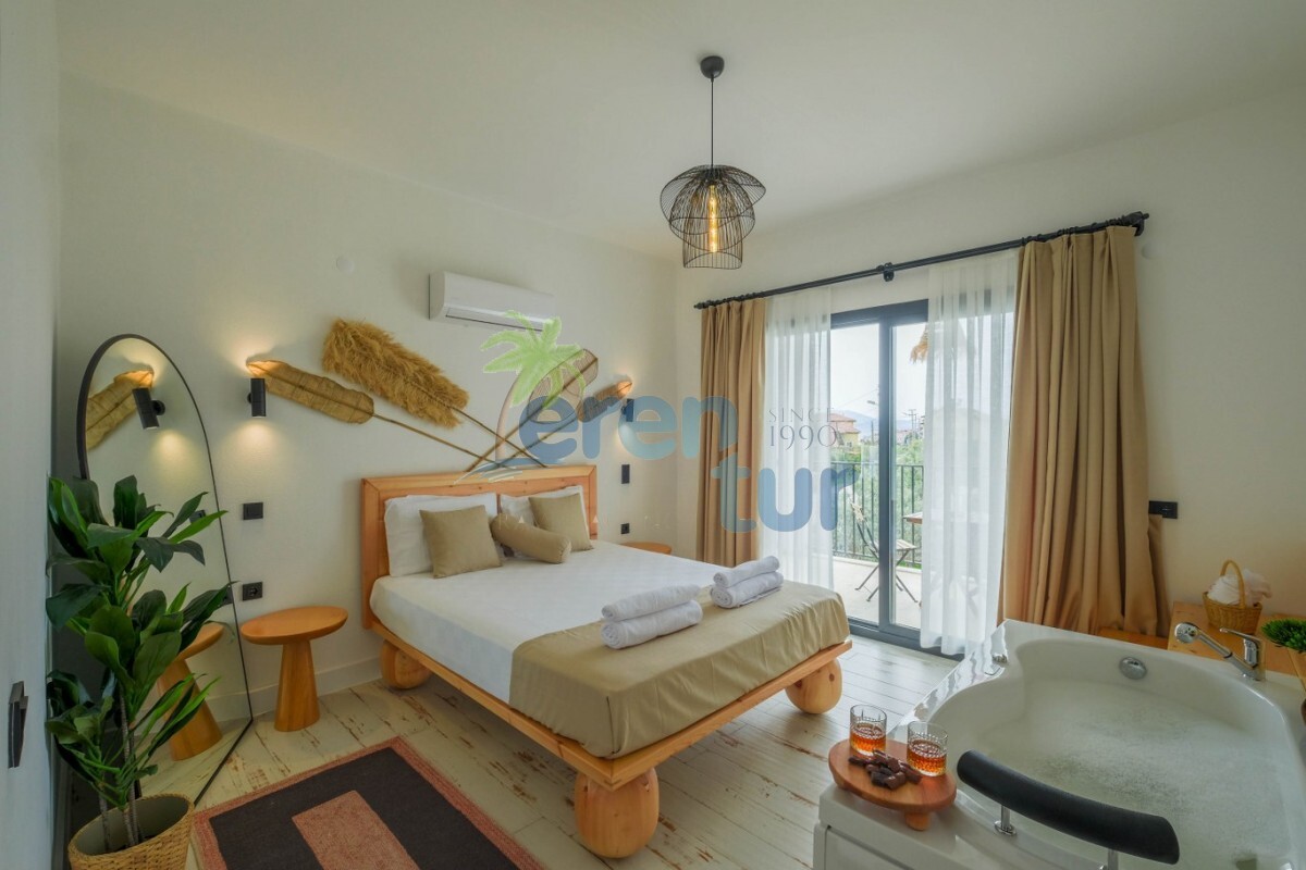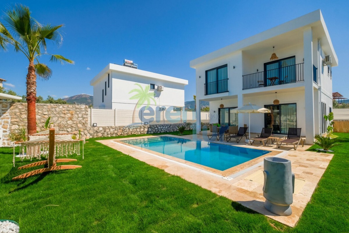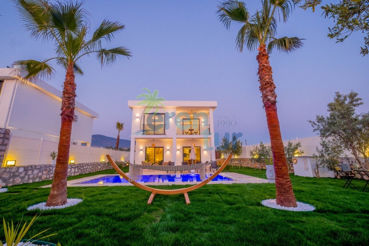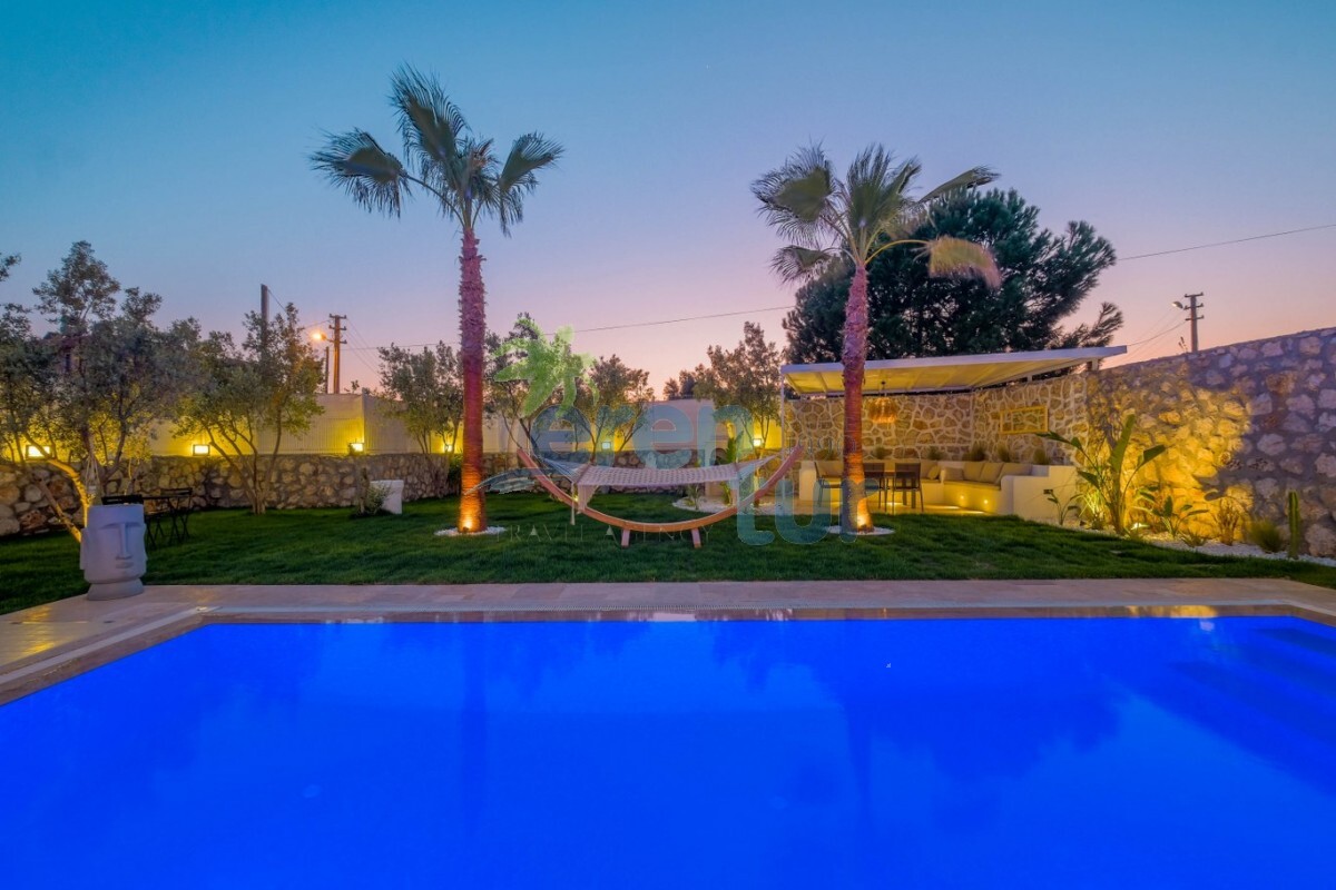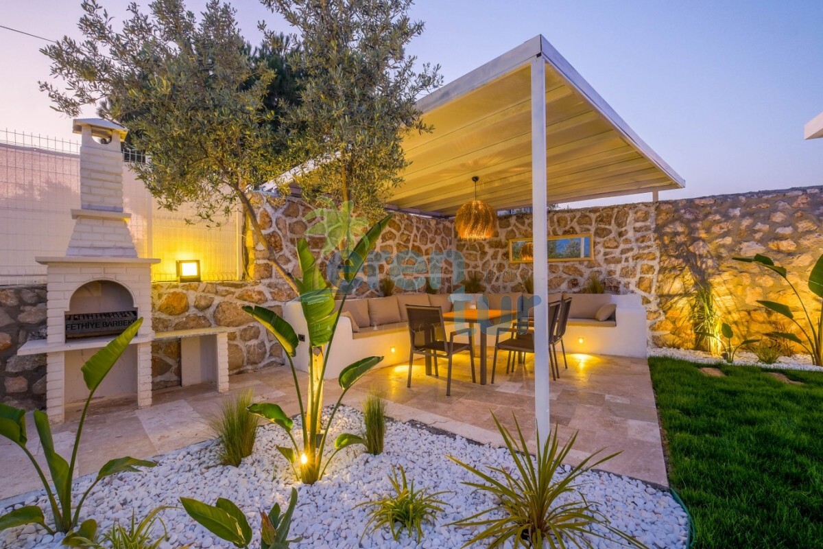Fethiye'nin eşsiz doğası içinde yer alan Çamköy mevkiindeki bu 4 kişilik lüks tatil villamız, konforlu ve huzurlu bir tatil deneyimi sunuyor. Villamız, modern ve şık tasarımıyla öne çıkıyor. Tamamen doğal malzemeler kullanılarak inşa edilen villamız, yemyeşil bahçesi ve özel yüzme havuzu ile sizi doğanın kucağına davet ediyor. İç mekanlarında da aynı şıklığı ve konforu hissediyorsunuz. Ferah ve aydınlık odaları, modern mobilyaları ve tam donanımlı mutfağı ile tüm ihtiyaçlarınızı karşılayacak donanıma sahiptir. Villamızın geniş terası ve bahçesi, açık havada keyifli vakit geçirmenize olanak tanırken, barbekü alanı da size lezzetli yemekler hazırlama imkanı sunuyor. Fethiye'nin muhteşem doğasında yapabileceğiniz aktiviteler arasında trekking, bisiklet turları, tekne turları ve su sporları yer alıyor. Ayrıca, yakındaki restoranlar ve kafeler de bölgenin lezzetli yemeklerini tadabilmeniz için ideal yerler.