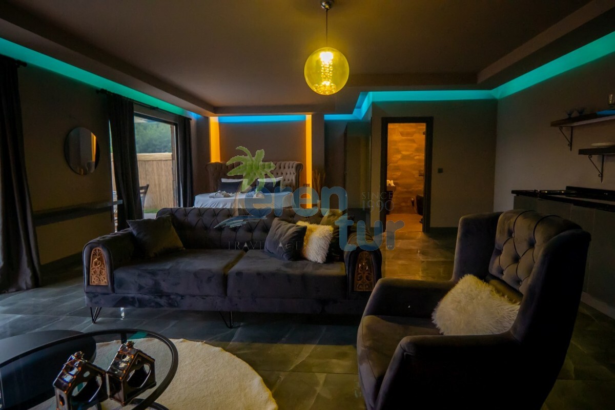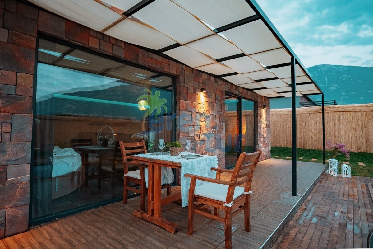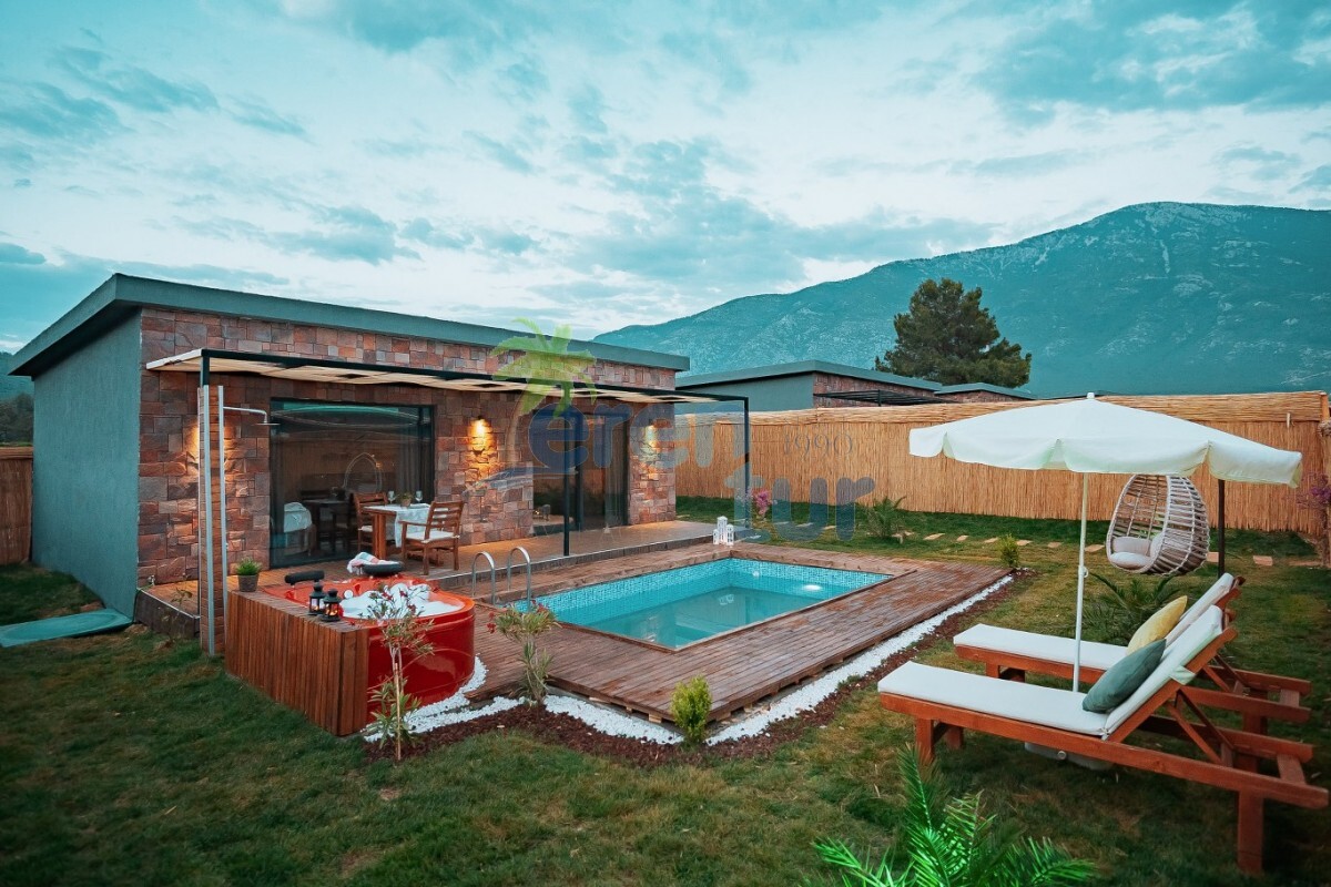 Fethiye Hisarönü mevkiinde bulunan tatil villamız 1 yatak odası ile 2 kişilik konaklama kapasitesine sahiptir. Villamızın havuz kısmı korunaklı hale getirilmiş olup, muhafazakar çiftlerimiz ve balayı çiftlerimiz için ideal tatil villalarımız arasındadır. Villamız dünyaca ünlü Ölüdeniz plajına 5 km mesafede yer almaktadır. Hisarönü merkeze ise 1 km mesafededir, aracınız ile eğlence merkezlerine, marketlere, restuarantlara kısa sürede ulaşım sağlayabilirsiniz.