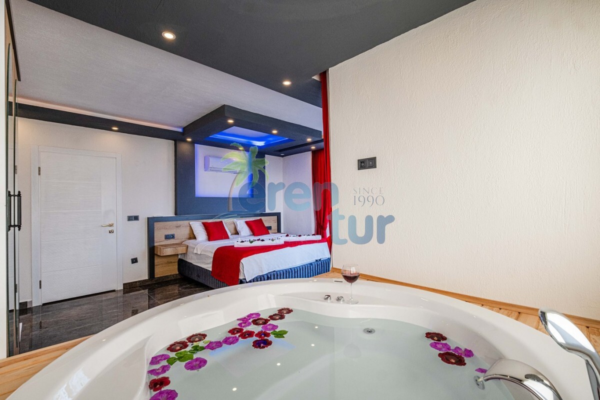 NOT : Villanın alt katında girişleri tamamen bağımsız olmak üzere 2 kişilik suit yer almaktadır. Müsaitlik doğrultusunda her ikisi de kiralanarak 6 kişiye kadar konaklama yapılabilir.