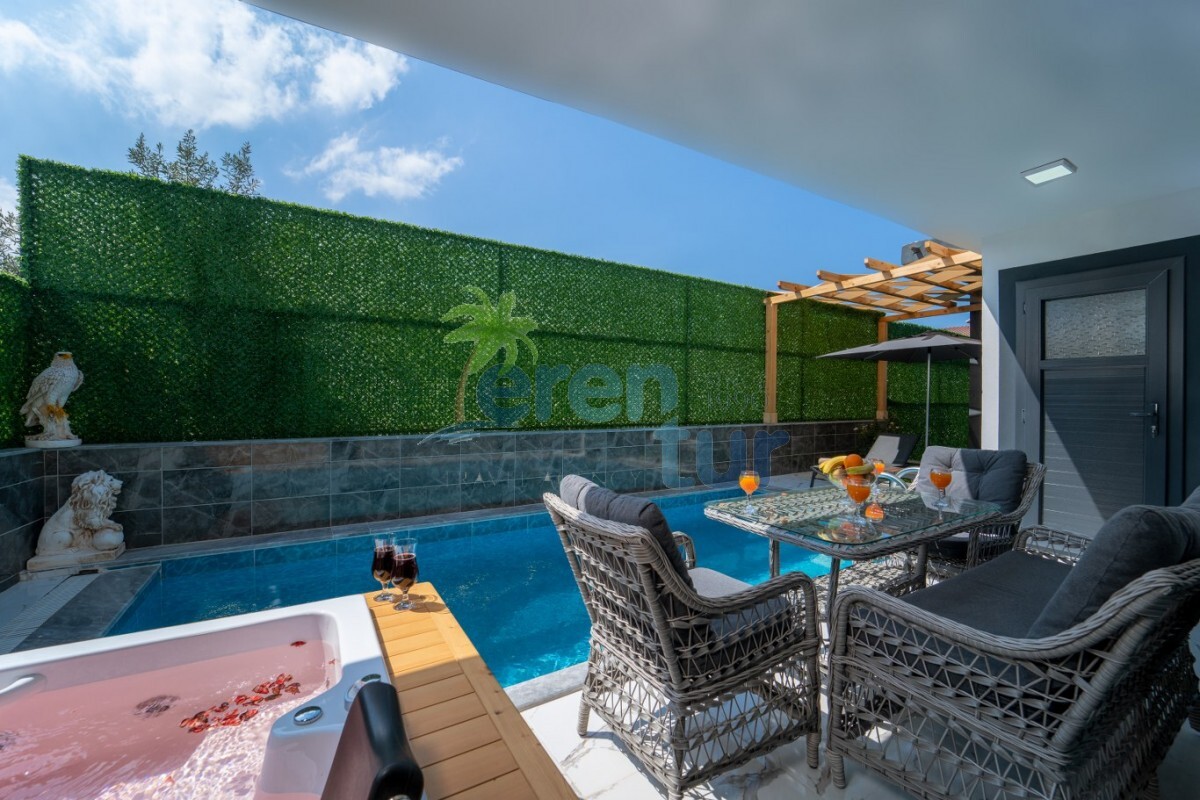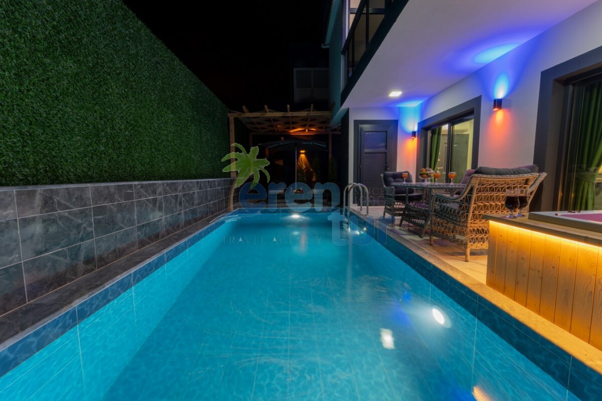 Fethiye'nin eşsiz doğasını keşfetmek ve samimi bir tatil deneyimi yaşamak isteyenler için mükemmel bir seçenek olan bu villamız, Karaçulha mevkiinde yer almaktadır. 2 yatak odası ve 4 kişilik konaklama kapasitesi ile muhafazakar bir tatil arayanlar için idealdir. Villamız, modern ve şık dekorasyonu ile dikkat çekerken, aynı zamanda doğanın içinde bir konaklama deneyimi sunar. Özenle tasarlanmış bahçesi, açık havada keyifli vakit geçirmek isteyenler için vazgeçilmez bir noktadır. İsterseniz güneşlenmek, isterseniz kitap okumak ya da sadece manzaranın tadını çıkarmak için harika bir alandır. Villamızın en büyük avantajlarından biri de, Fethiye'nin ünlü plajlarına yakın olmasıdır.