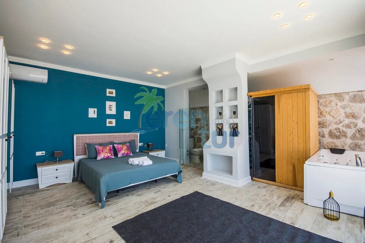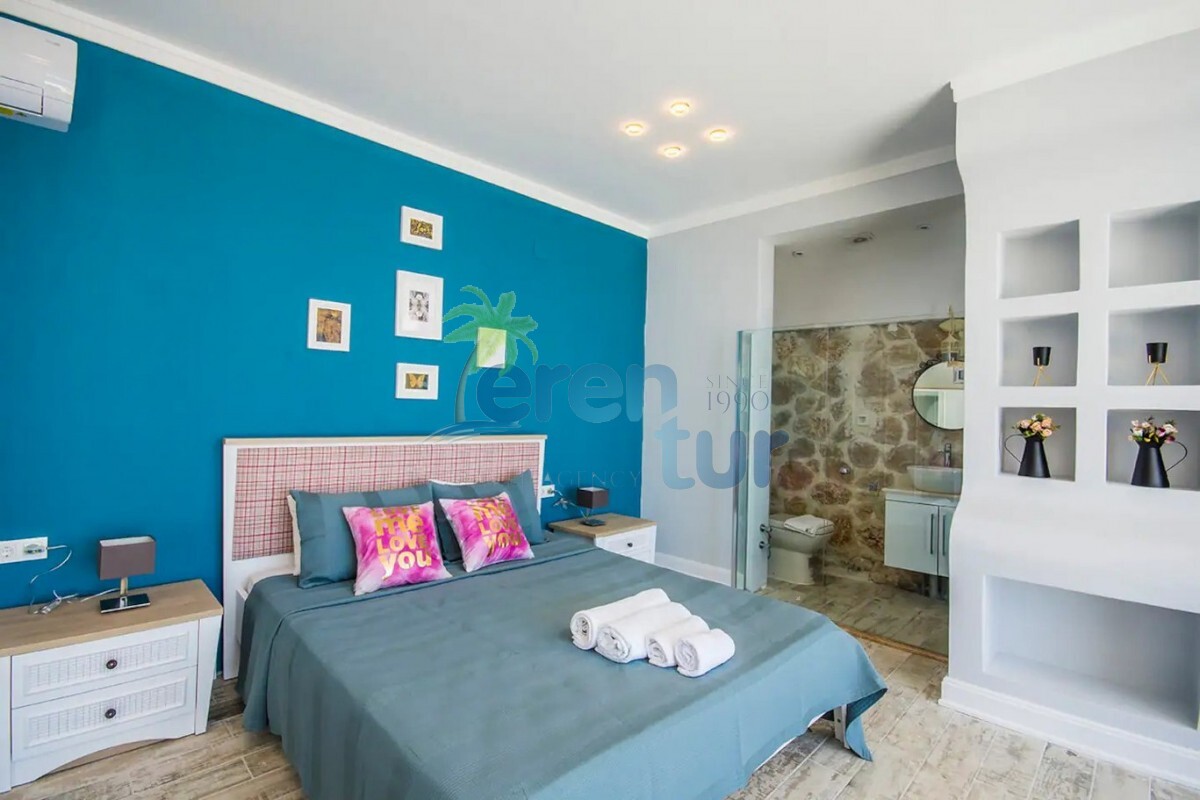 Kalkan İslamlar köyünde bulunan bu tatil villası 1 süit (banyolu) yatak odası ile 2 kişilik kapasiteye sahiptir. Villamızda yeni yapılan restorede yatak odamızda jakuzi ve sauna bulunmaktadır.Ancak 3 kişilik aileler içinde uygun bir villadır 2 yetişkin bir küçük çocuk kalabilir villamızda Bebeği olan konuklarımız içinde ayrıca bebek yatağı konulacaktır