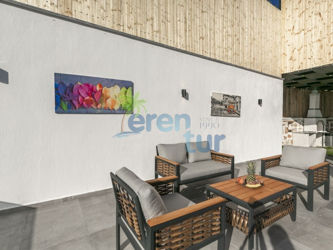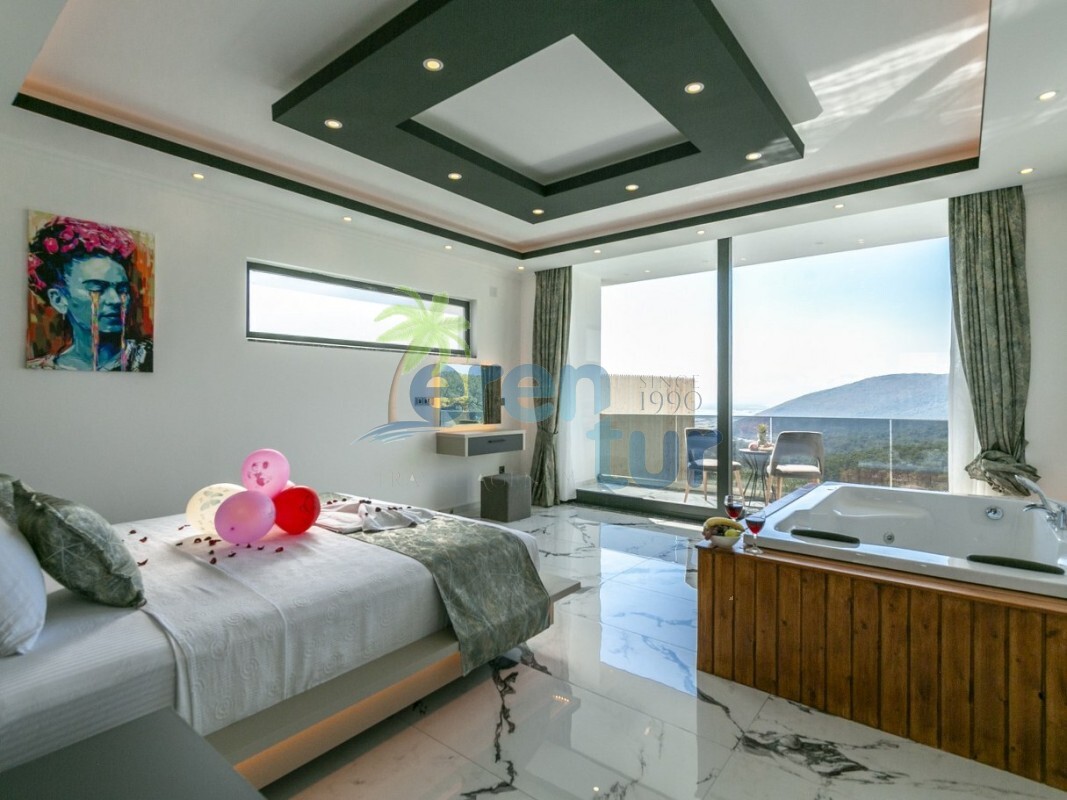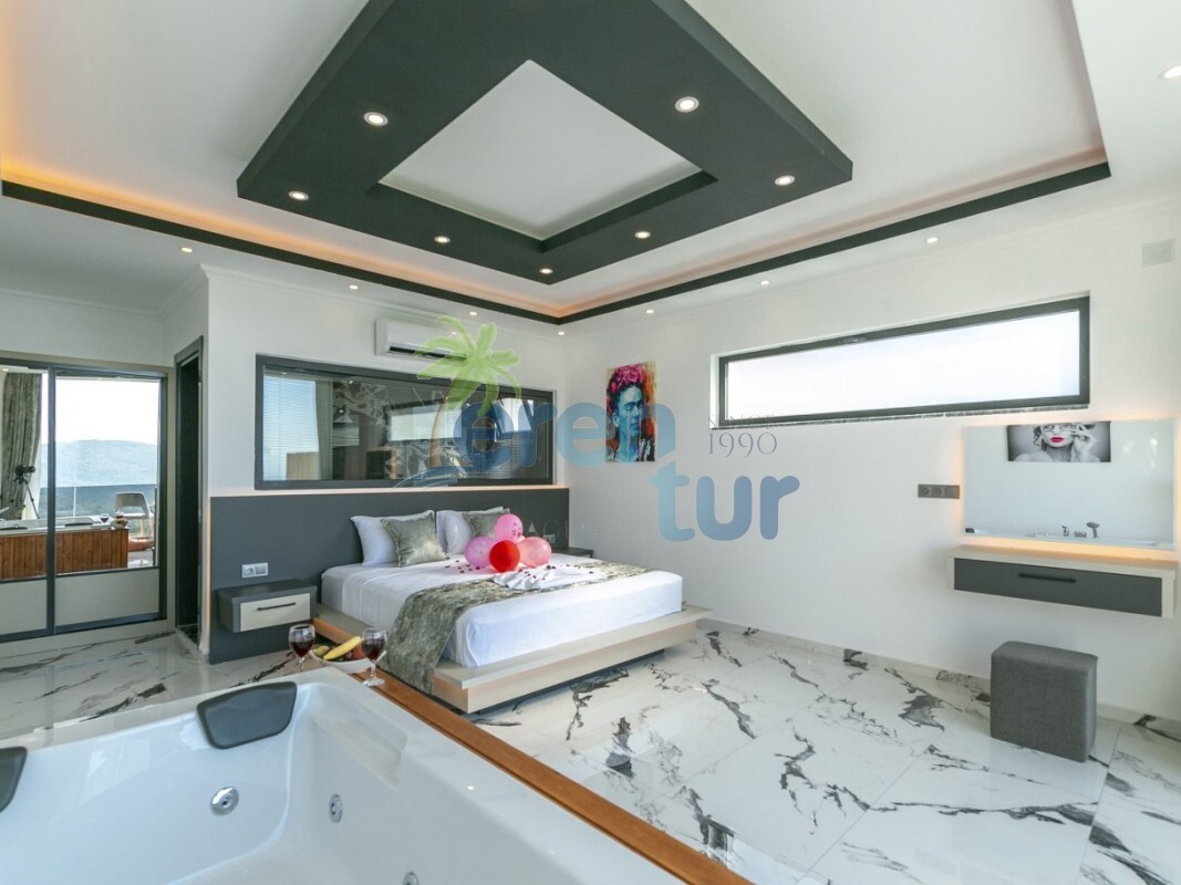 Havuz terasının korunaklı olması, muhafazakar ve balayı çiftleri için ideal bir tercih sunmaktadır. Ayrıca, villamızda sauna ve jakuzi gibi lüks detaylar da mevcuttur. Konaklama için iki adet yatak odası bulunan villamız, 4 kişiye kadar konaklama imkanı sağlamaktadır.