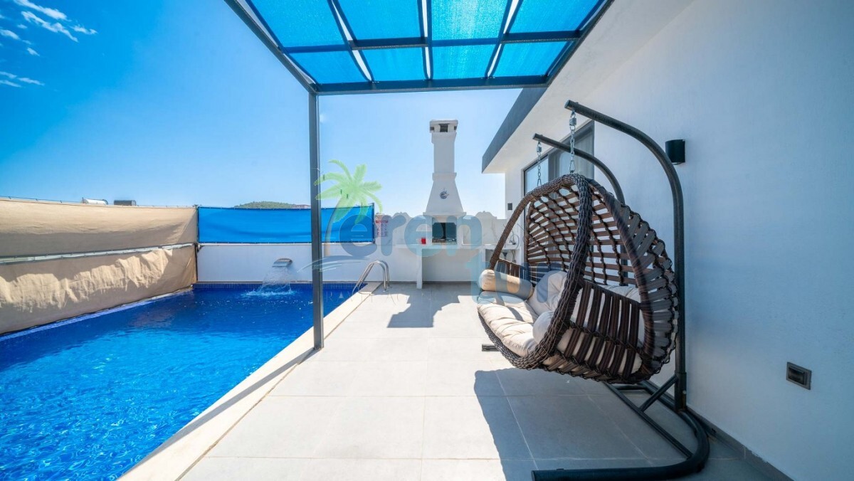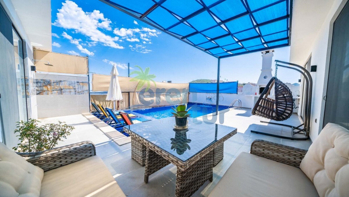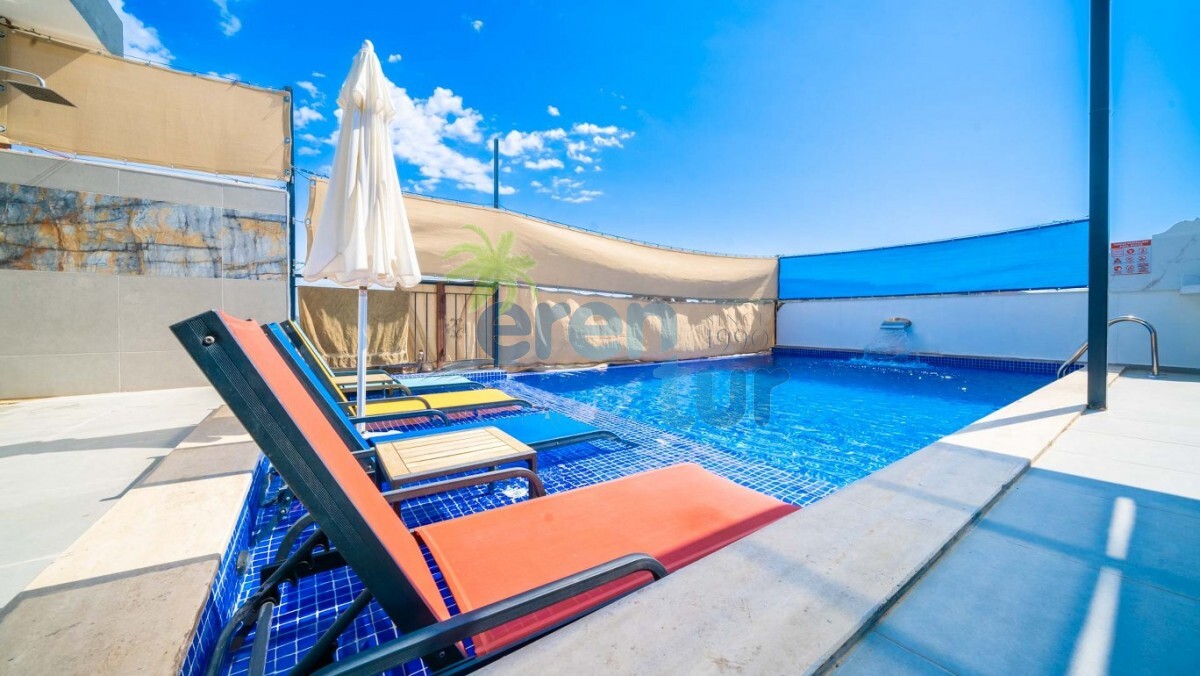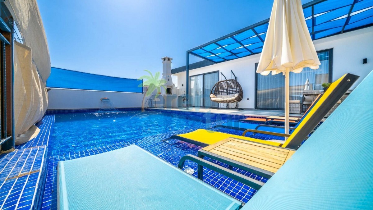 Kalkan'ın Akbel bölgesinde yer alan tatil villamız 2 yatak odası ile toplamda 4 kişilik konaklama kapasitesine sahiptir. Lokasyon olarak merkezi bir bölgede yer almasından dolayı denize ve şehir merkezine yakın konumda tatil yapmak isteyen müşterilerimiz için ideal bir seçenekdir. Geniş havuz terasına sahip olan villamızın bahçe ve havuz terasının etrafı kapatılarak gözlerden uzak tatil yapmak isteyen mutaassıp ailelerimiz ve balayı çiftlerimiz için idealdir.