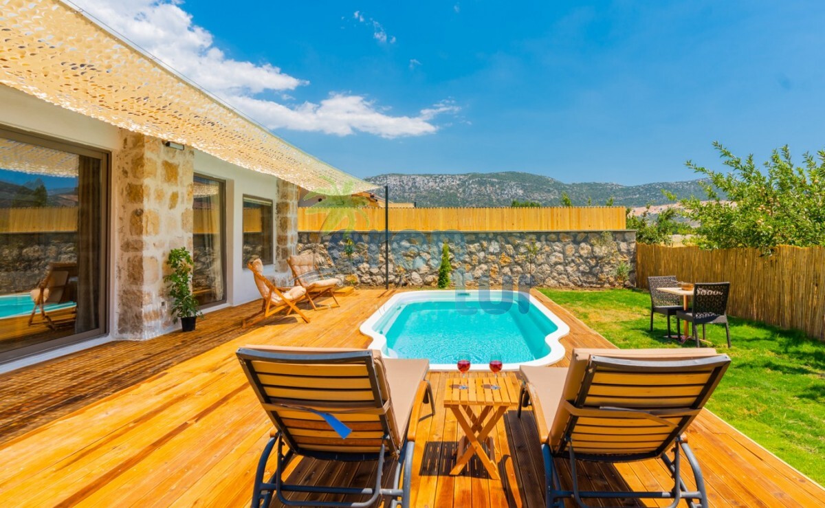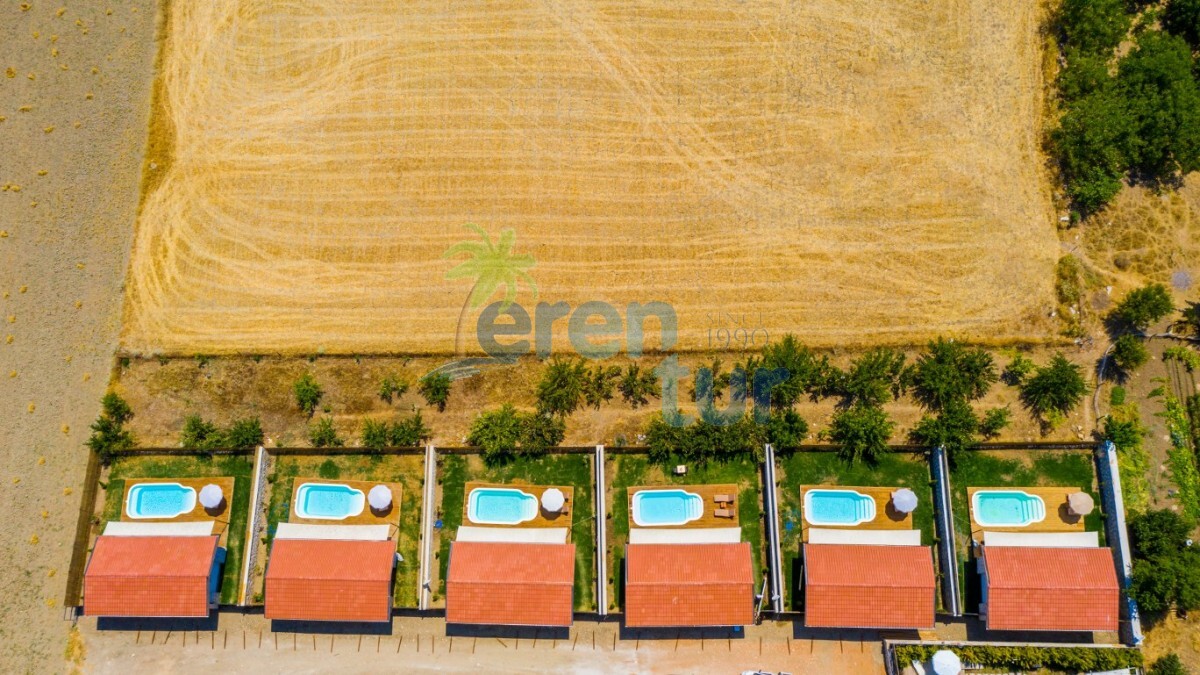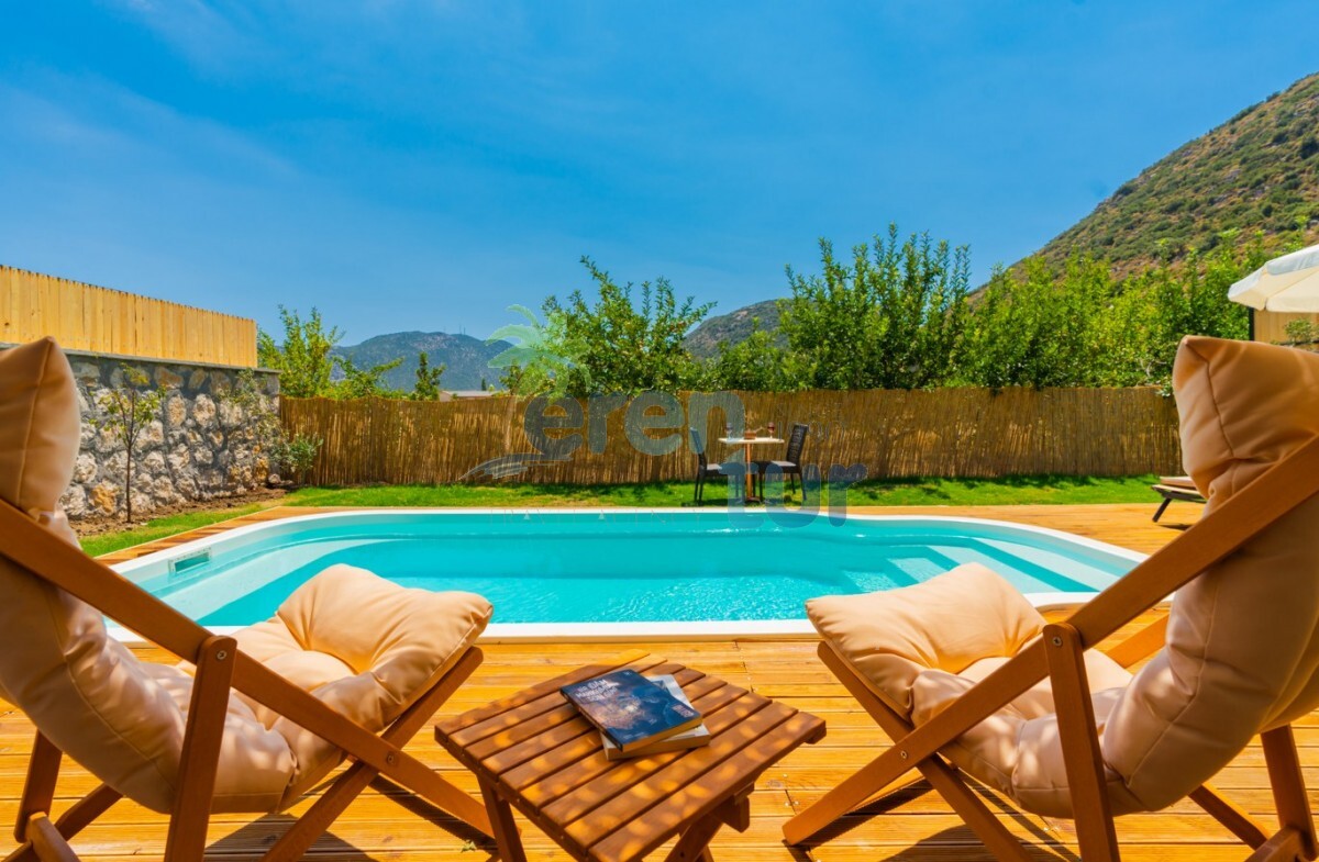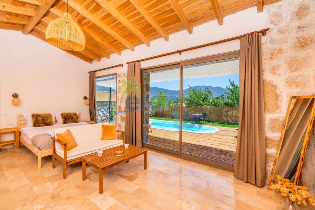 Ahşap ve taş mimarisi ile dikkat çeken tatil villamızın havuz kısmı korunaklı hale getirilmiş olup muhafazakar çiftlerimiz ve balayı çiftlerimiz için ideal villa seçeneklerimiz arasındadır.