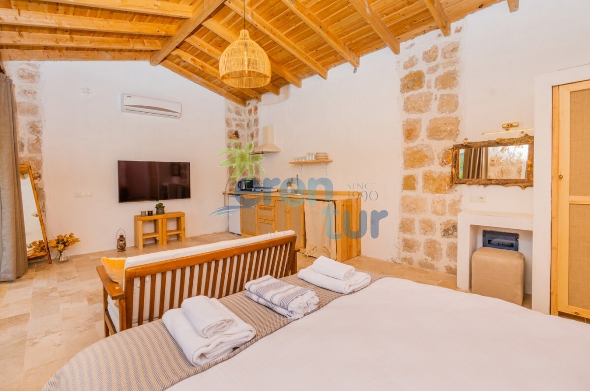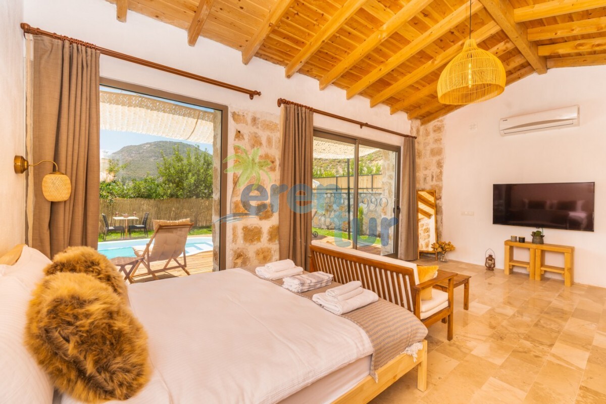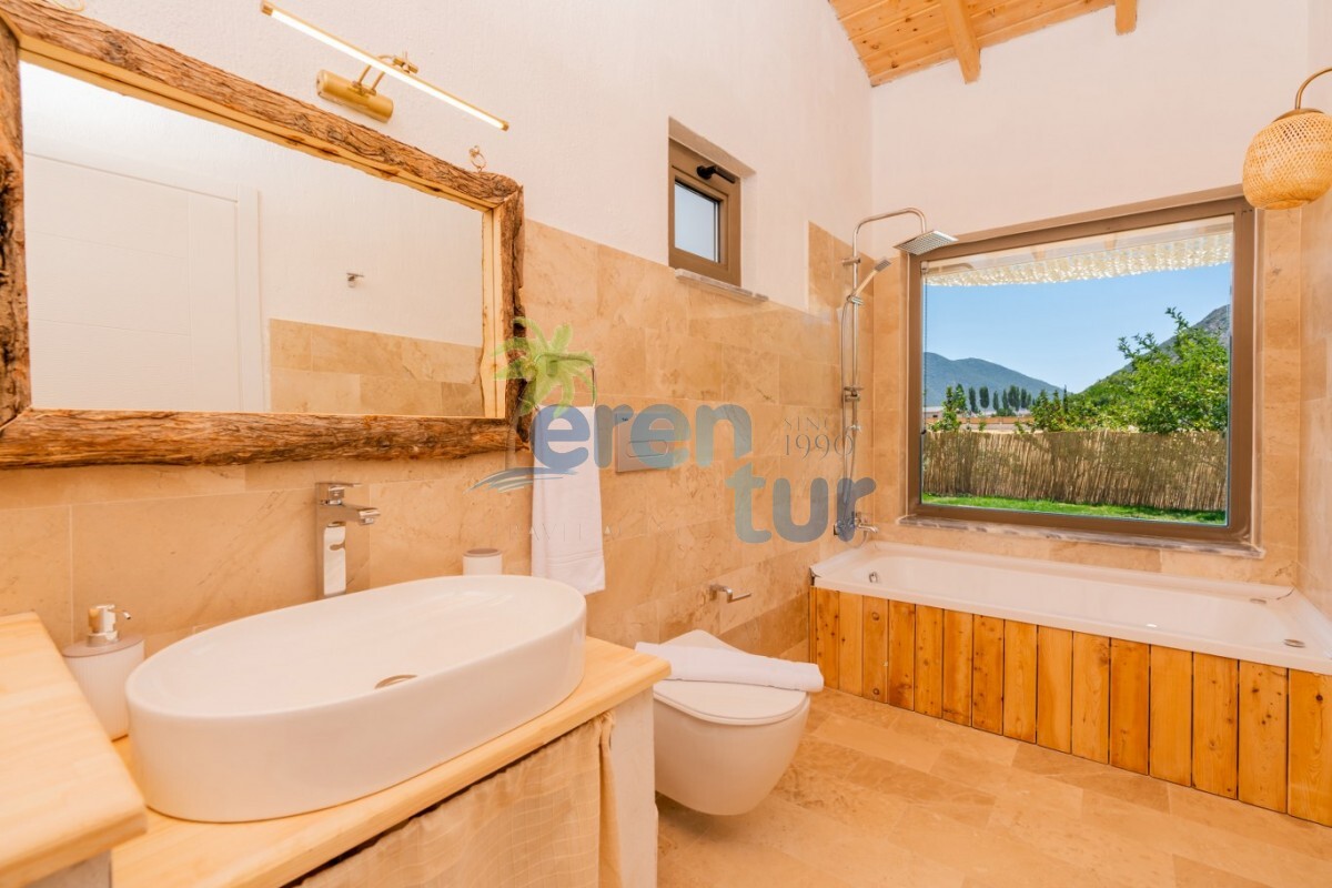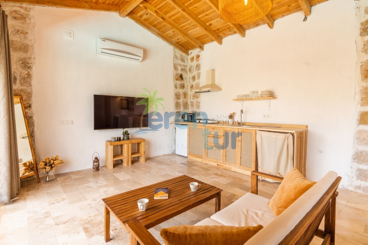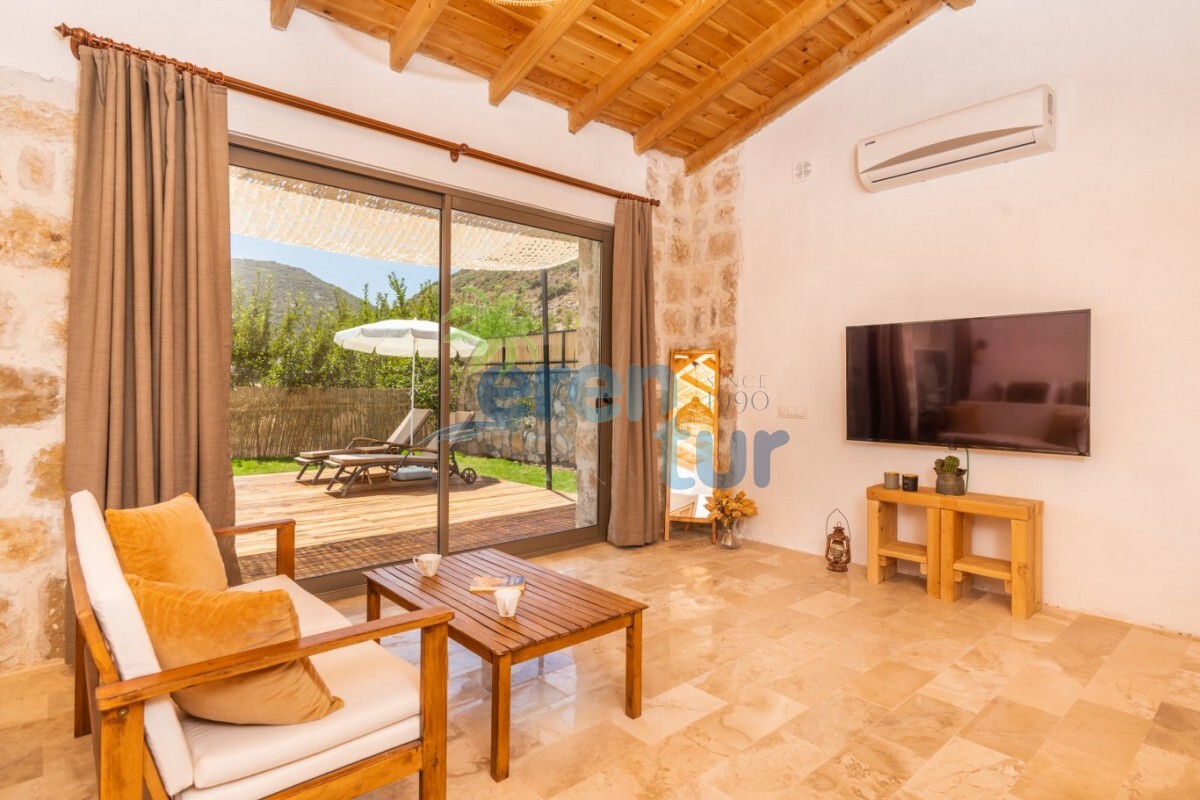 Kalkan Bezirgan köyünde bulunan tatil villamız 1+0 şeklinde tasarlanmış olup iki kişilik kapasiteye sahiptir. Salon ve mutfaktan oluşan tatil villamız doğa içerisinde bulunmaktadır. Villamızda bulaşık ve çamaşır makinesi mevcut değildir. Çamaşır makinesi kullanmak istediğiniz taktirde ortak alanda bulunan çamaşır makinesini görevlilerinde yardımıyla kullanabilirsiniz. Havuz kısmı korunaklı hale getirilmiş olan tatil villamızı balayı çiftlerimiz rahatlıkla tercih edebilirler.