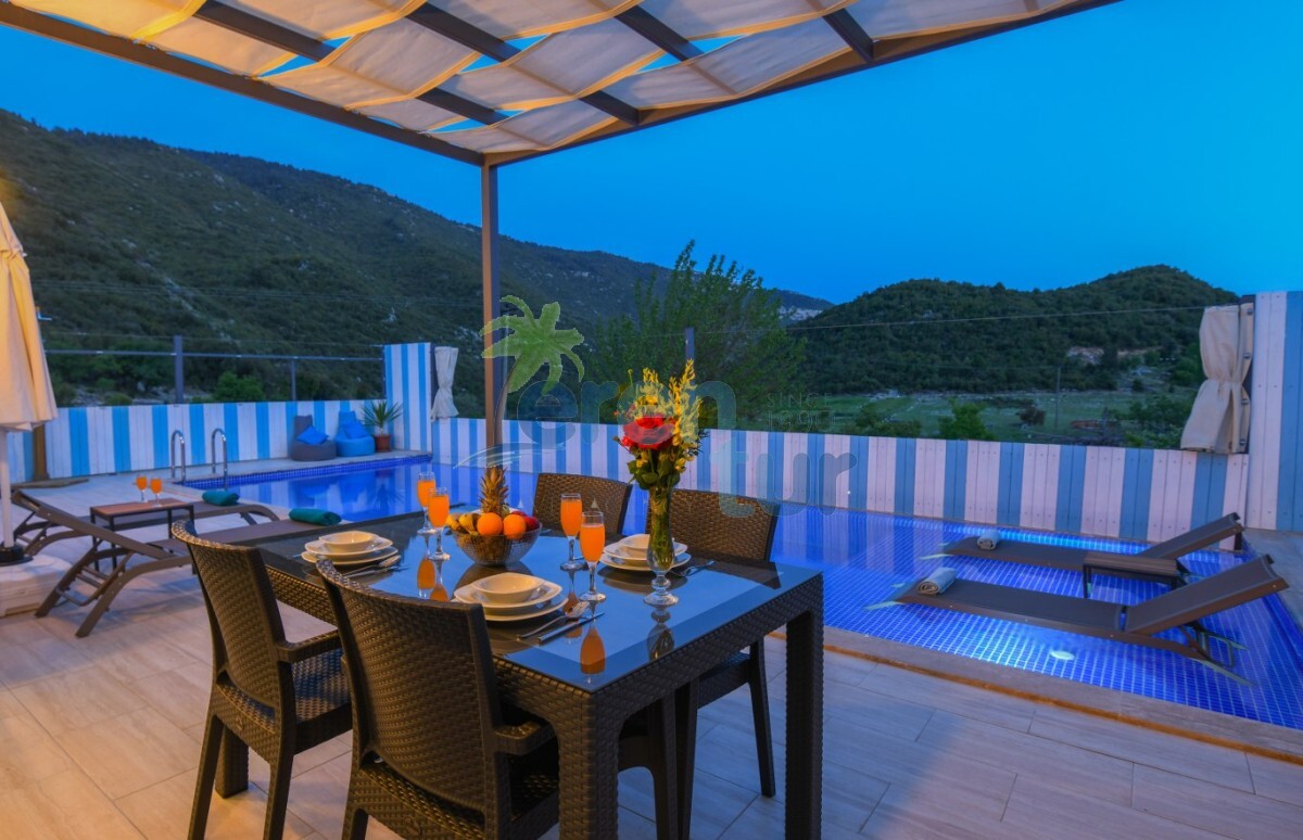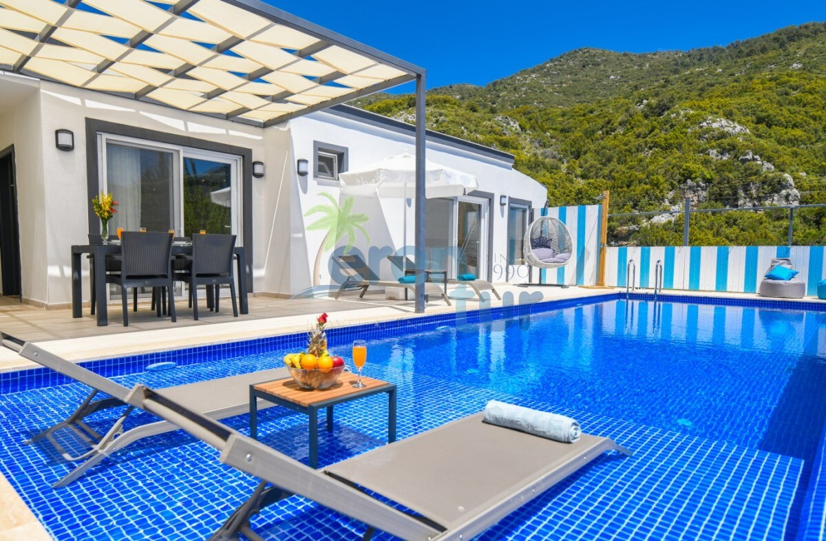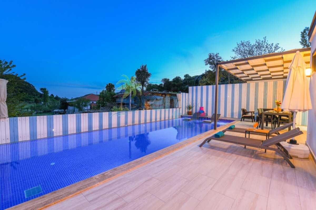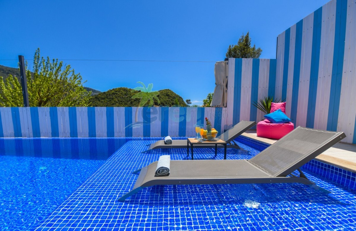 Villamız Kalkan İkizce mevkiinde yer almaktadır. 2 yatak odası ile 4 kişilik kapasiteye sahiptir. Villamızın havuz kısmı çit ve perde sistemi ile korunaklı hale getirilmiş olup, muhafazakar ailelerimiz ve balayı çiftlerimiz için ideal tatil villalarımız arasındadır. Doğa içerisinde bulunan villamız sessiz sakin ve huzurlu bir tatil imkanı sağlamaktadır. Villamızda ihtyiacınız olacak araç gereçler mevcuttur.