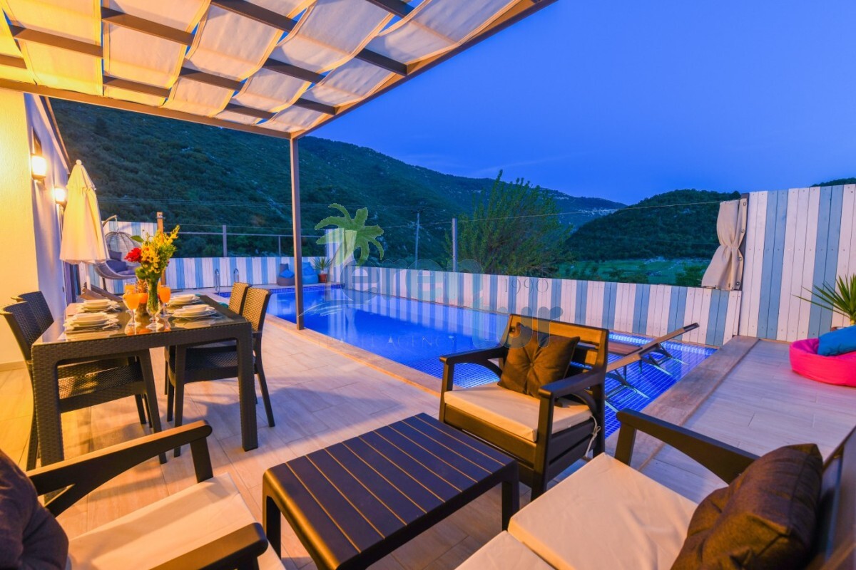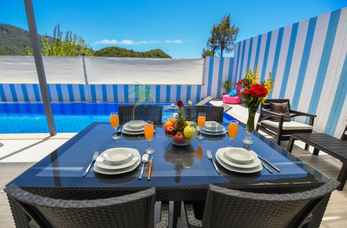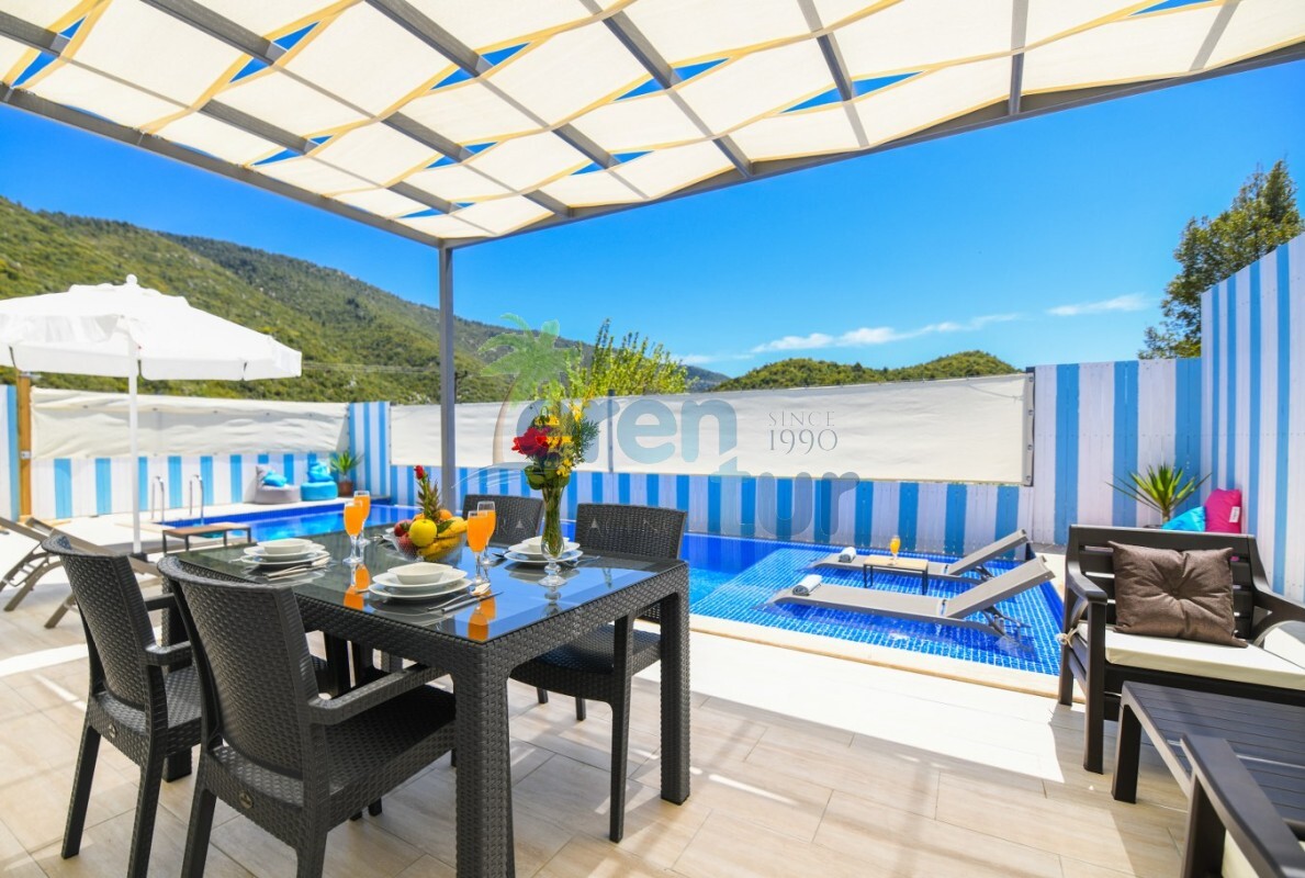 Villamız Kalkan İkizce mevkiinde yer almaktadır. 2 yatak odası ile 4 kişilik kapasiteye sahiptir. Villamızın havuz kısmı çit ve perde sistemi ile korunaklı hale getirilmiş olup, muhafazakar ailelerimiz ve balayı çiftlerimiz için ideal tatil villalarımız arasındadır. Doğa içerisinde bulunan villamız sessiz sakin ve huzurlu bir tatil imkanı sağlamaktadır. Villamızda ihtyiacınız olacak araç gereçler mevcuttur.