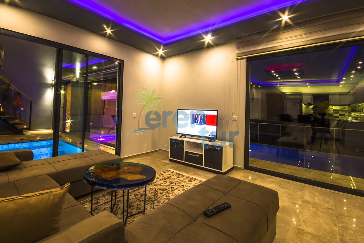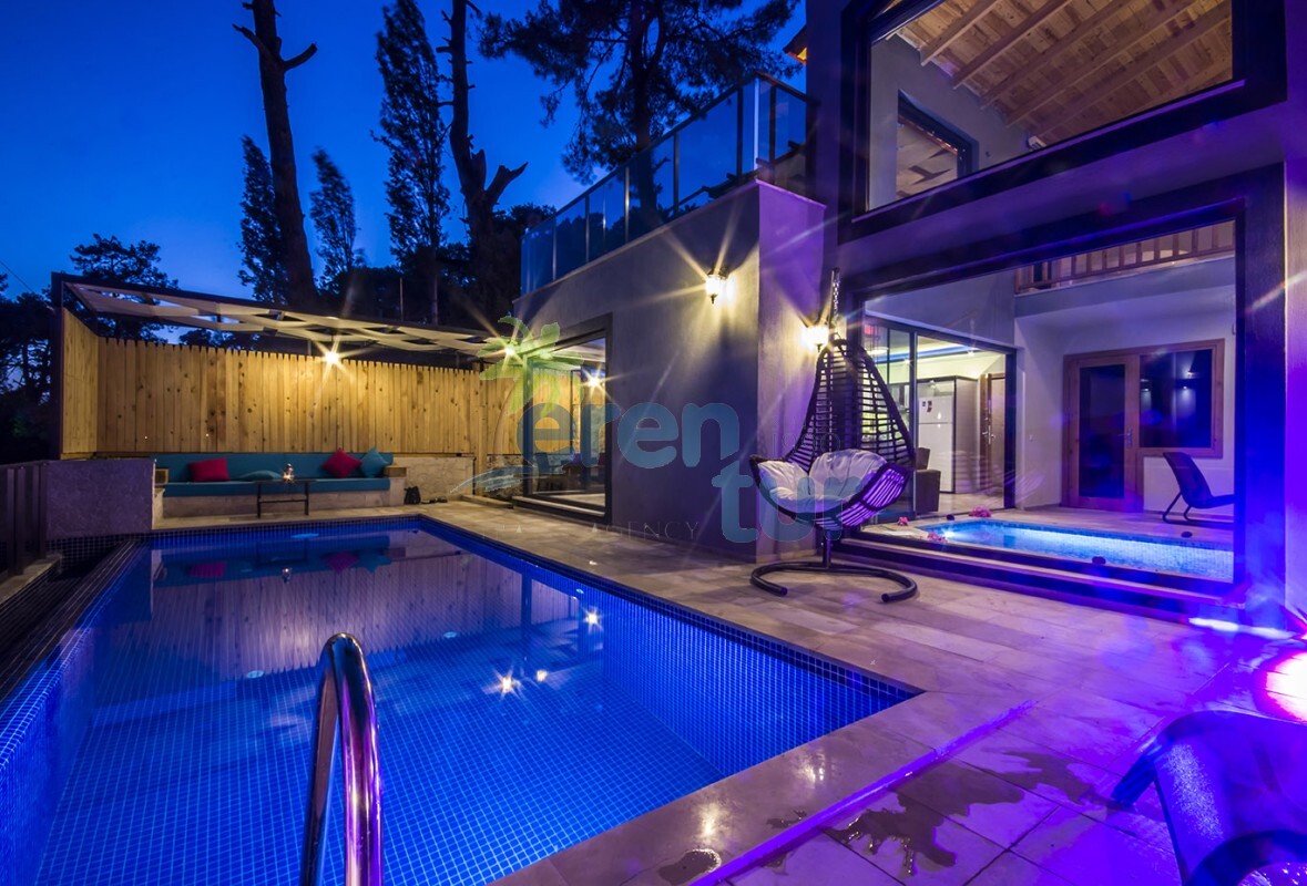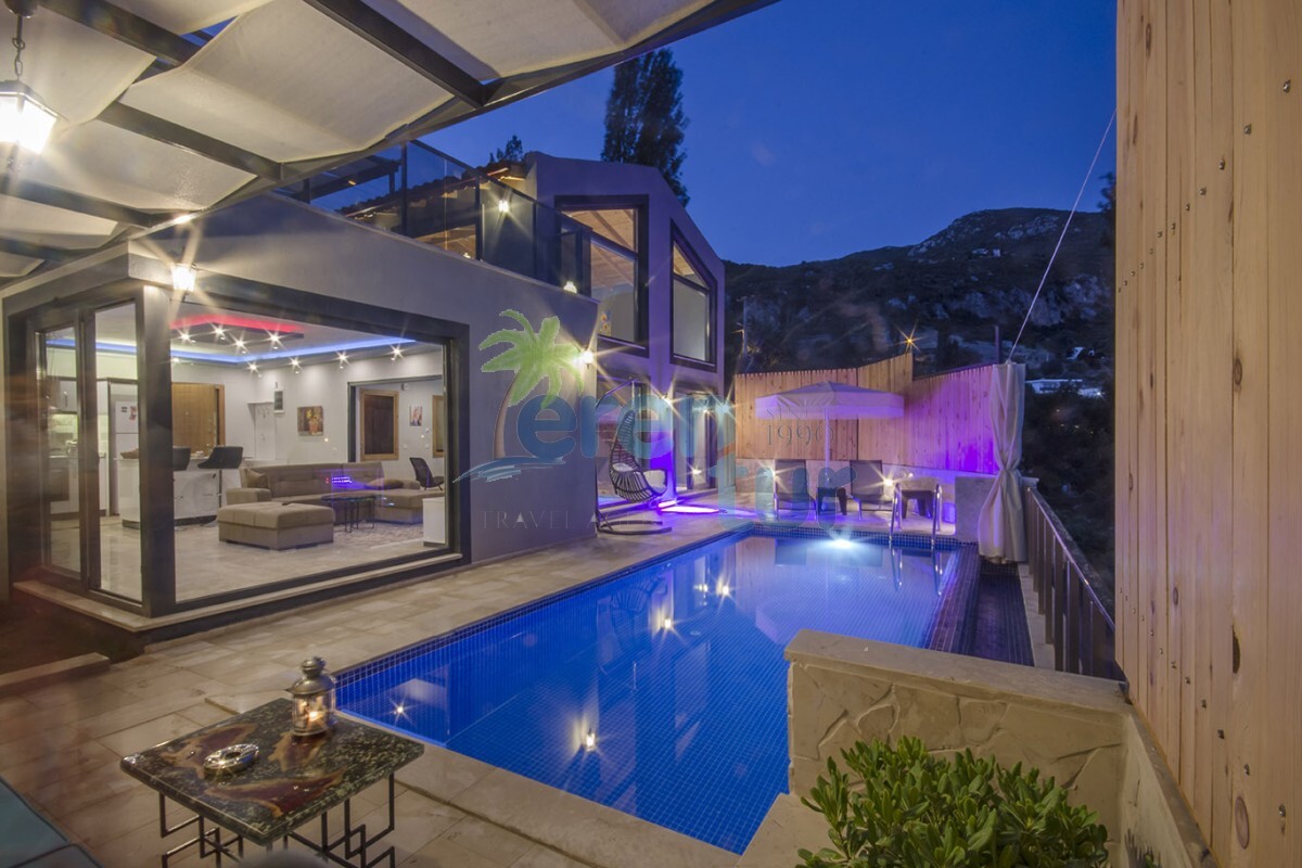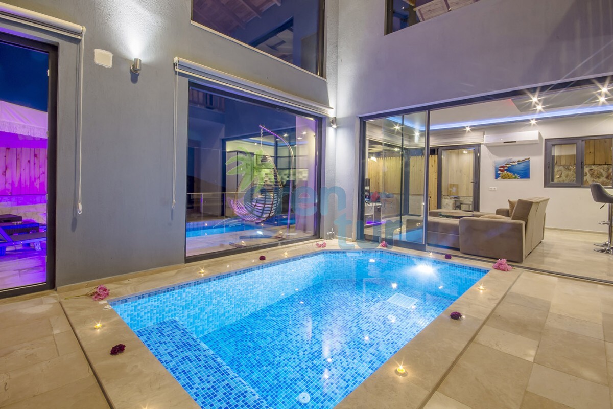 2019 yılında hizmete giren villamız, muhteşem doğal güzellikler içinde konumlanmaktadır. Kalkan şehir merkezine yaklaşık 12 km mesafede olan villamız, İslamlar Köyü merkezine 3.5 km uzaklıktadır. Havuz terası etrafı çit sistemi ile kapatılarak muhafazakâr aileler için uygundur. Galeri tarzında iki kattan oluşan villamızın alt katında, 3.50 cm / 2.50 cm ebatlarına sahip kapalı ısıtmalı havuz, sauna ve Türk hamamı bulunmaktadır. Bu sayede, balayı çiftleri ve müşterilerimiz kış dönemlerinde de keyifli bir tatil geçirebilirler.