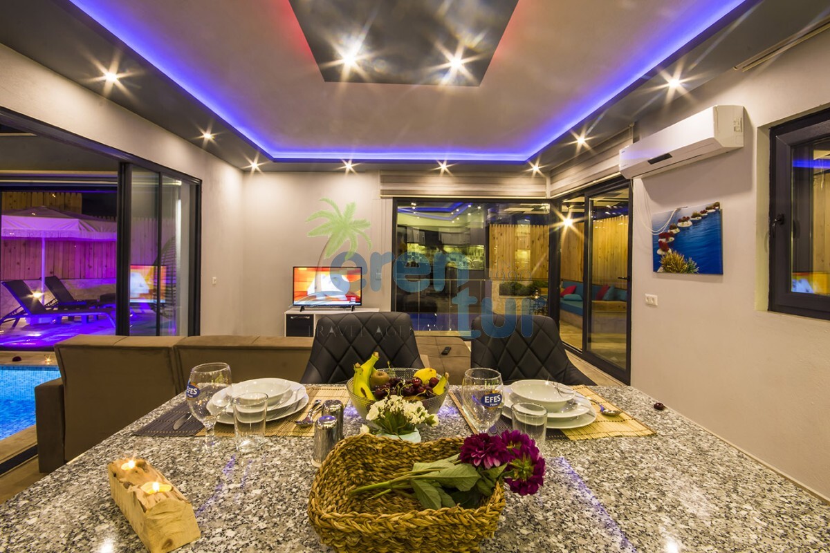 Villamızda ihtiyacınız olan tüm mobilya, mutfak araç gereçleri, saç kurutma makinesi ve ütü gibi olanaklar mevcuttur. Villa sahibimiz tarafından sunulan kapalı havuzun ısıtma sistemi için, 1 Kasım - 1 Mayıs tarihleri arası fiyatlara dahildir. Diğer aylarda  günlük ekstra (750TL) ücret alınmaktadır. Ekim ayından itibaren aktif hale gelen havuz ısıtma sistemi için konuklarımızın gelmeden 2 gün önce firmamızı arayarak bilgi vermesi rica olunur.Sonuç olarak, doğal güzelliklerle dolu Kalkan İslamlar Köyü'nde yer alan villamız, balayı çiftleri ve aileler için mükemmel bir tatil seçeneğidir. Kapalı ısıtmalı havuzu, sauna ve Türk hamamıyla kış dönemlerinde bile keyifli tatiller geçirebilirsiniz. Tüm detaylar düşünülerek tasarlanan villamızda, unutulmaz bir tatil deneyimi yaşayabilirsiniz.