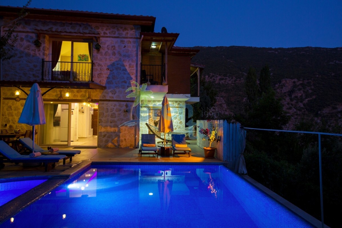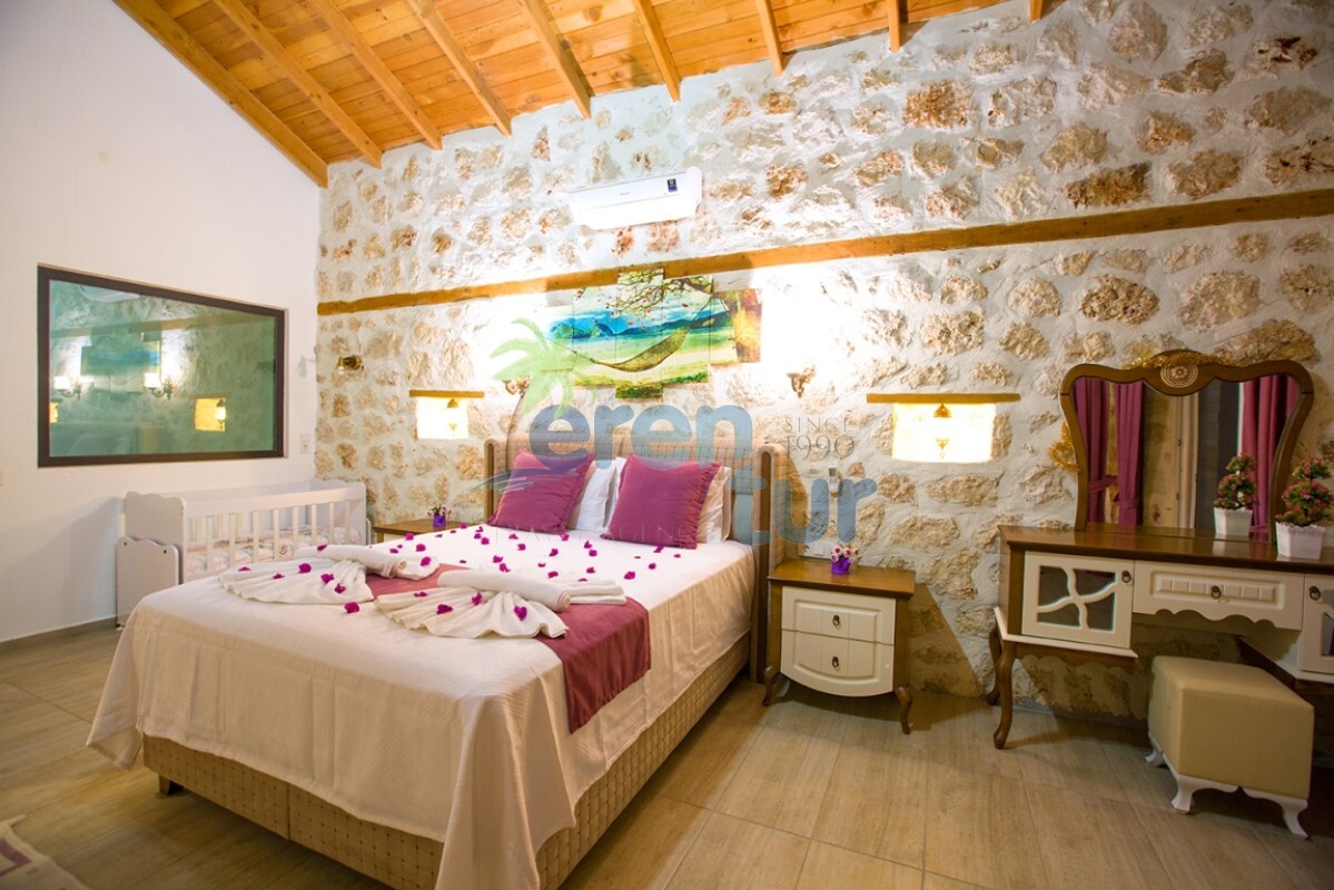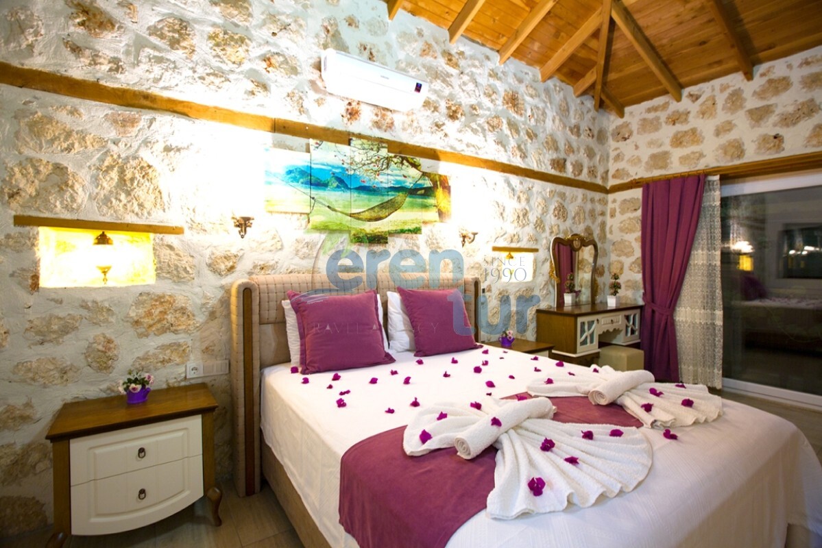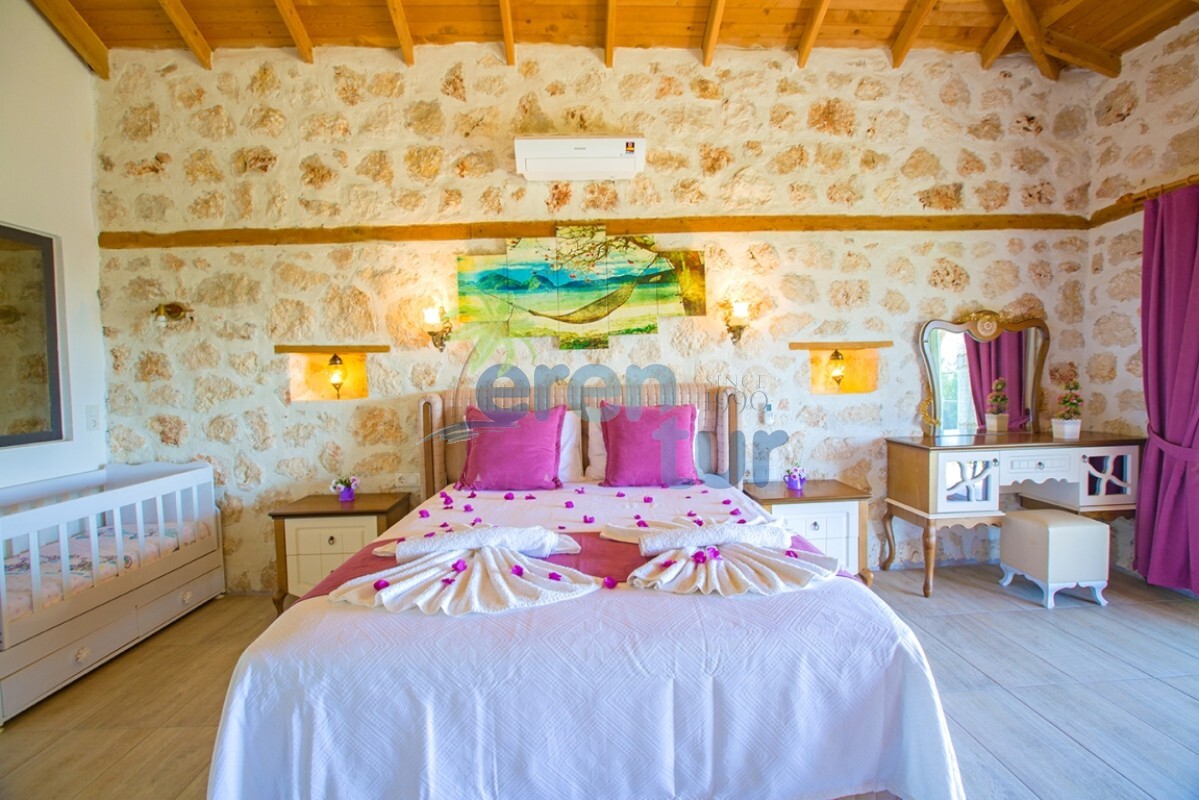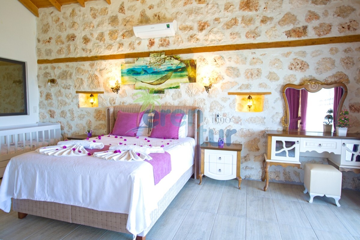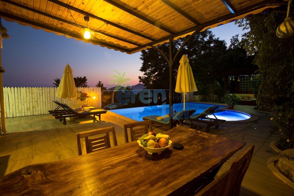 İslamlar köyünde bulunan bu otantik tatil villamız, 2 süit (banyolu) yatak odası ile 4 kişilik konaklama kapasitesine sahiptir. Villamız İslamlar köyü girişindeki Öz mahallesinde yer almaktadır ve şehir merkezine yaklaşık 5 km mesafede bulunmaktadır. Günlük ihtiyaçlarınızı karşılayabileceğiniz markete ise yaklaşık 700-800 metre uzaklıktadır. Turistik İslamlar köyünün doğal güzelliklerini keşfetmek isteyen misafirlerimiz için ideal bir seçim olan villamız, taş ve ahşap mimarisi ile dikkat çekmektedir. Geniş kullanım alanları ve tavanları sayesinde rahat edeceğiniz villamızda, geniş havuz terasında, kamelyasında, hamakta ve bahçesinde güneşin tadını doyasıya çıkarabilirsiniz. Villamızın giriş katında geniş bir oturma odası, mutfak ve alaturka bir WC, üst katta ise yatak odaları bulunmaktadır. Her iki yatak odasında da WC-Banyo, klima, balkon ve deniz manzarası mevcuttur. Ana ebeveyn yatak odamızda büyük ebatlı bir jakuzi de bulunmaktadır. Jakuziden İslamlar köyünün muhteşem doğası ve deniz manzarasının keyfini doyasıya çıkarabilirsiniz.