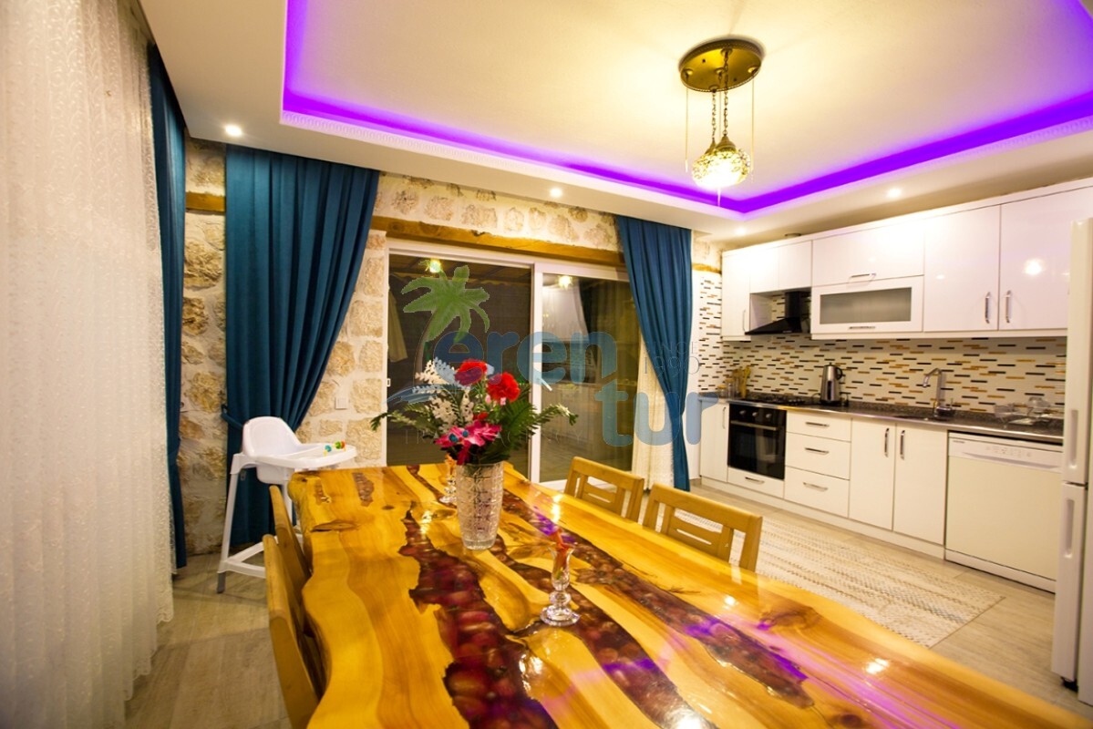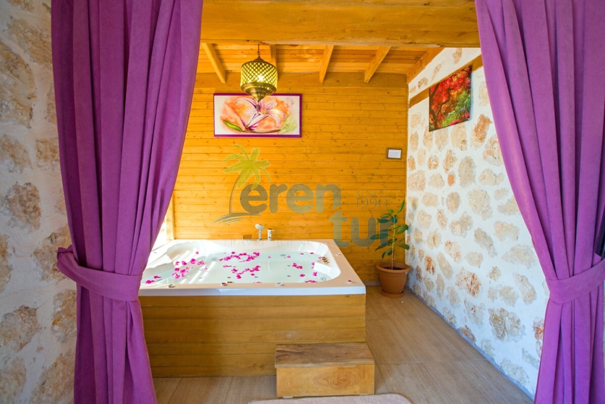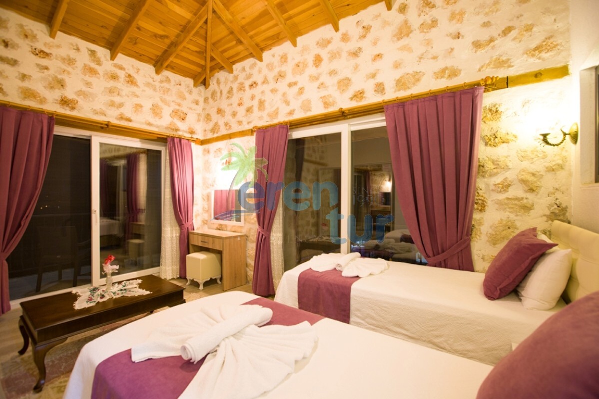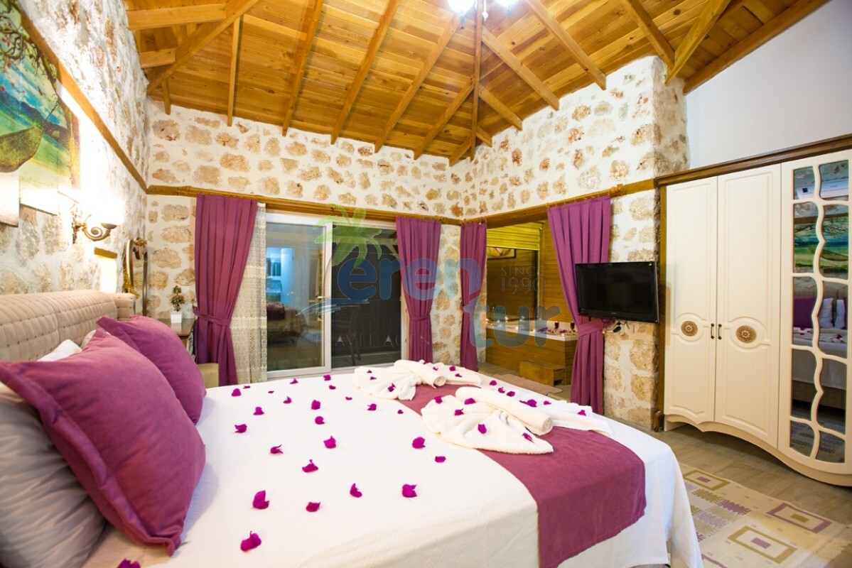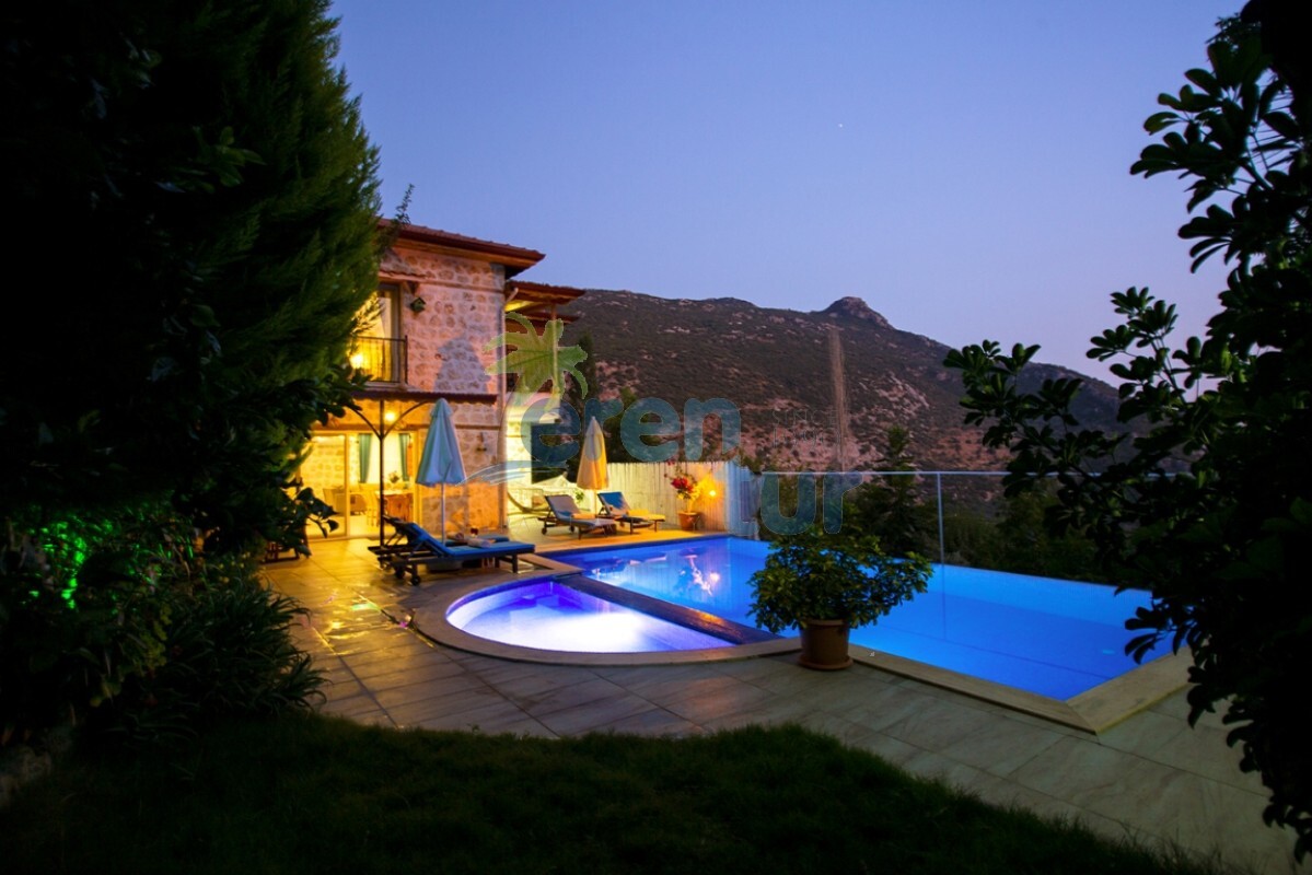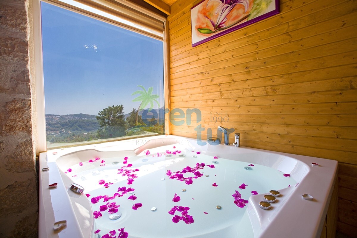 İslamlar köyünde bulunan bu otantik tatil villamız, 2 süit (banyolu) yatak odası ile 4 kişilik konaklama kapasitesine sahiptir. Villamız İslamlar köyü girişindeki Öz mahallesinde yer almaktadır ve şehir merkezine yaklaşık 5 km mesafede bulunmaktadır. Günlük ihtiyaçlarınızı karşılayabileceğiniz markete ise yaklaşık 700-800 metre uzaklıktadır. Turistik İslamlar köyünün doğal güzelliklerini keşfetmek isteyen misafirlerimiz için ideal bir seçim olan villamız, taş ve ahşap mimarisi ile dikkat çekmektedir. Geniş kullanım alanları ve tavanları sayesinde rahat edeceğiniz villamızda, geniş havuz terasında, kamelyasında, hamakta ve bahçesinde güneşin tadını doyasıya çıkarabilirsiniz. Villamızın giriş katında geniş bir oturma odası, mutfak ve alaturka bir WC, üst katta ise yatak odaları bulunmaktadır. Her iki yatak odasında da WC-Banyo, klima, balkon ve deniz manzarası mevcuttur. Ana ebeveyn yatak odamızda büyük ebatlı bir jakuzi de bulunmaktadır. Jakuziden İslamlar köyünün muhteşem doğası ve deniz manzarasının keyfini doyasıya çıkarabilirsiniz.