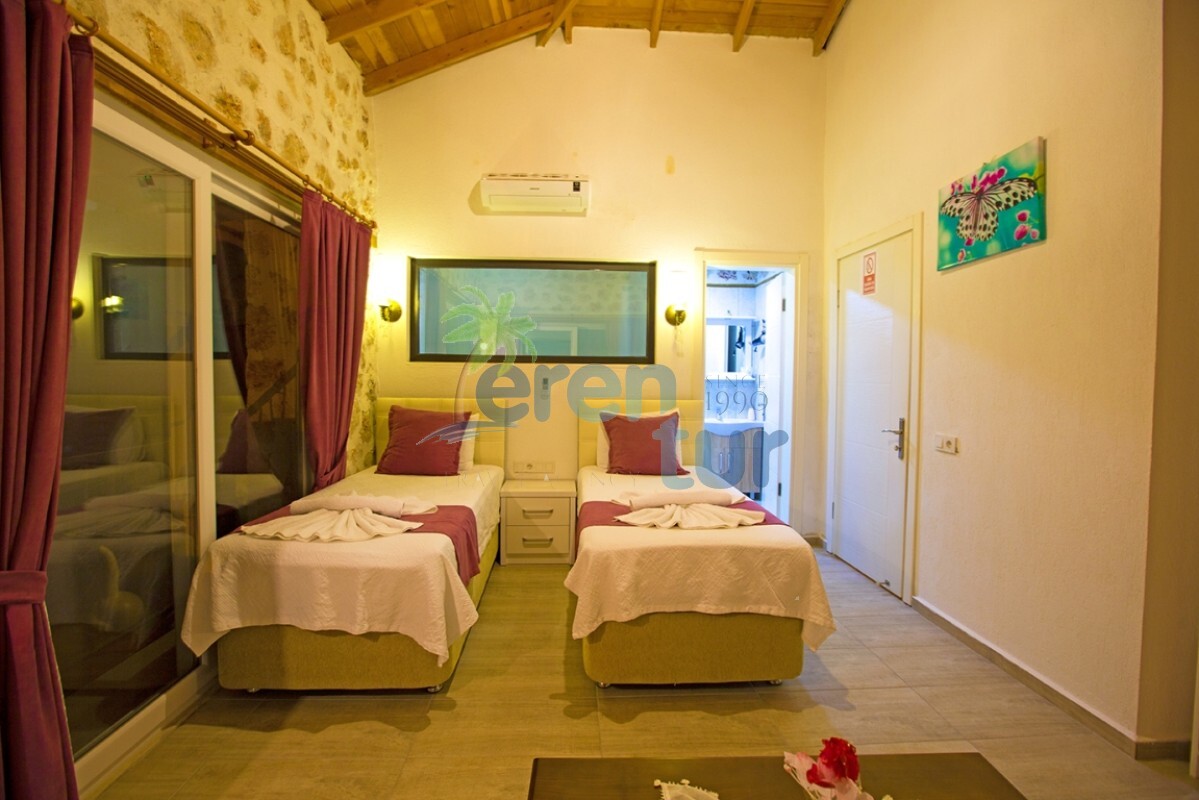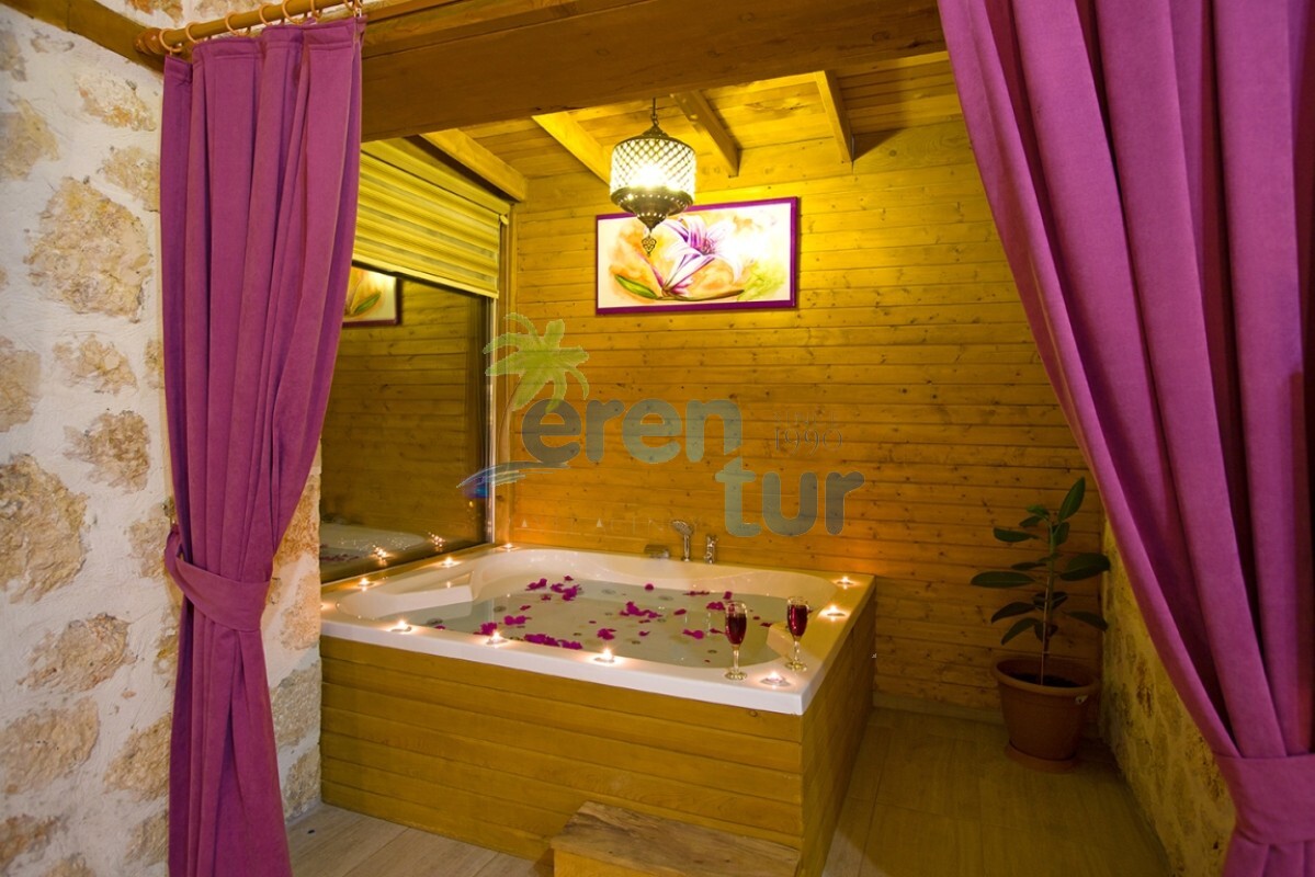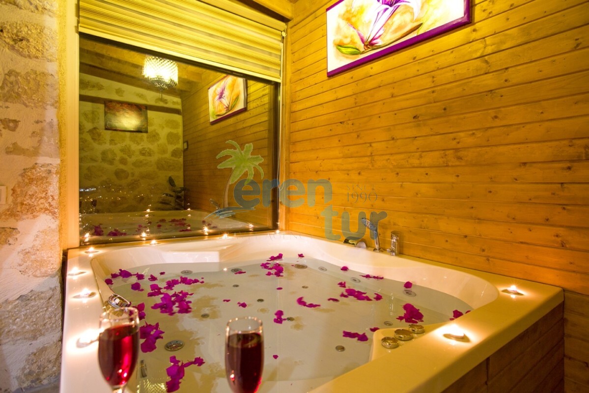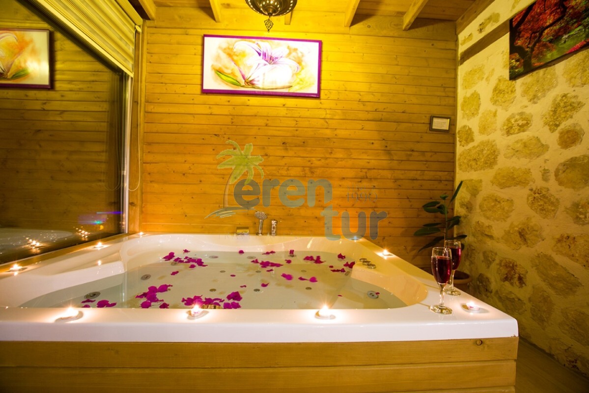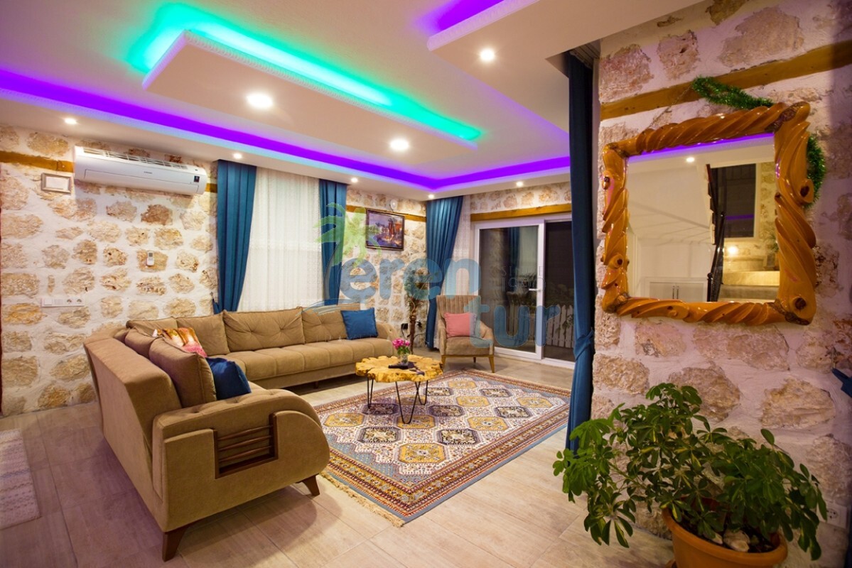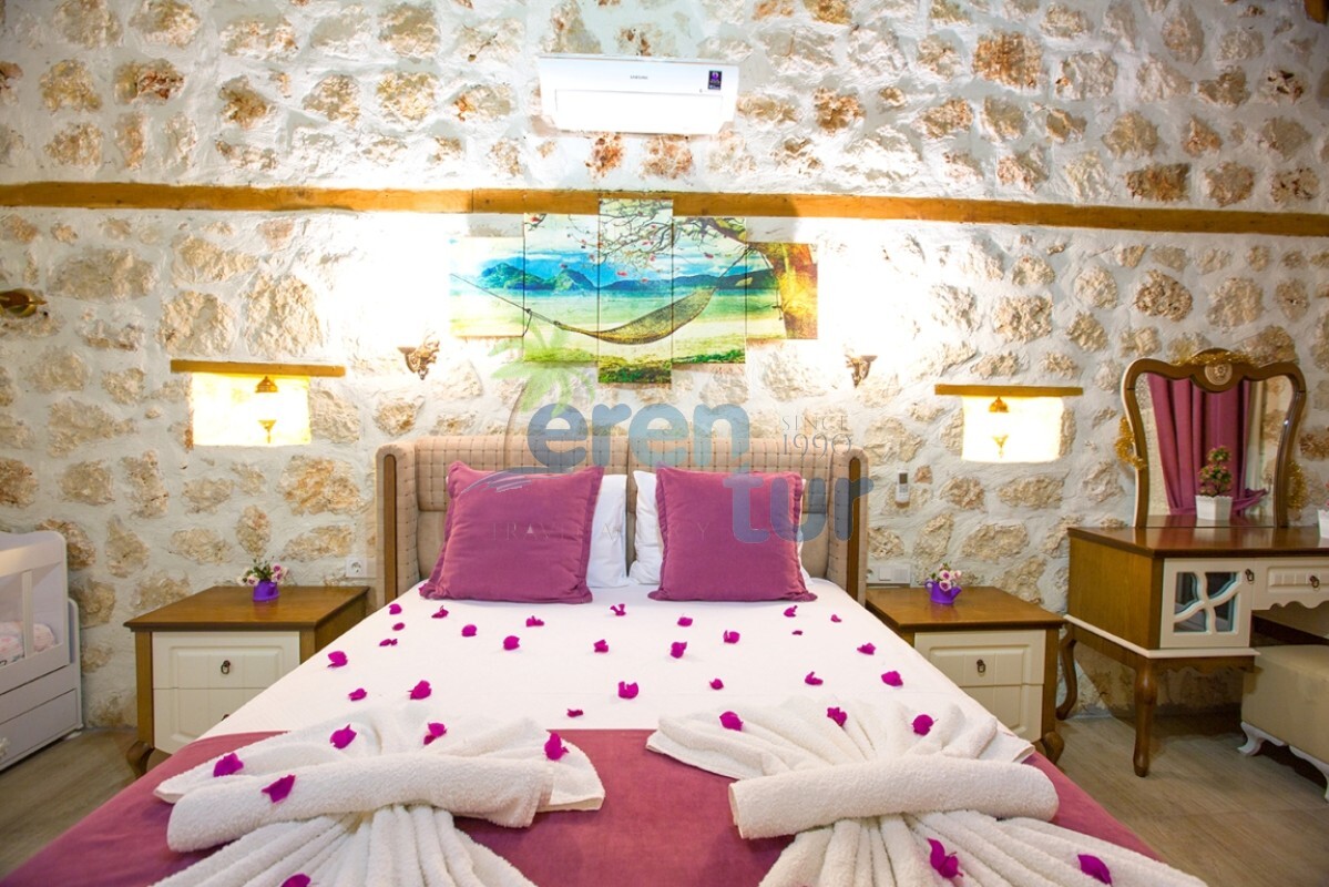 İslamlar köyünde bulunan bu otantik tatil villamız, 2 süit (banyolu) yatak odası ile 4 kişilik konaklama kapasitesine sahiptir. Villamız İslamlar köyü girişindeki Öz mahallesinde yer almaktadır ve şehir merkezine yaklaşık 5 km mesafede bulunmaktadır. Günlük ihtiyaçlarınızı karşılayabileceğiniz markete ise yaklaşık 700-800 metre uzaklıktadır. Turistik İslamlar köyünün doğal güzelliklerini keşfetmek isteyen misafirlerimiz için ideal bir seçim olan villamız, taş ve ahşap mimarisi ile dikkat çekmektedir. Geniş kullanım alanları ve tavanları sayesinde rahat edeceğiniz villamızda, geniş havuz terasında, kamelyasında, hamakta ve bahçesinde güneşin tadını doyasıya çıkarabilirsiniz. Villamızın giriş katında geniş bir oturma odası, mutfak ve alaturka bir WC, üst katta ise yatak odaları bulunmaktadır. Her iki yatak odasında da WC-Banyo, klima, balkon ve deniz manzarası mevcuttur. Ana ebeveyn yatak odamızda büyük ebatlı bir jakuzi de bulunmaktadır. Jakuziden İslamlar köyünün muhteşem doğası ve deniz manzarasının keyfini doyasıya çıkarabilirsiniz.