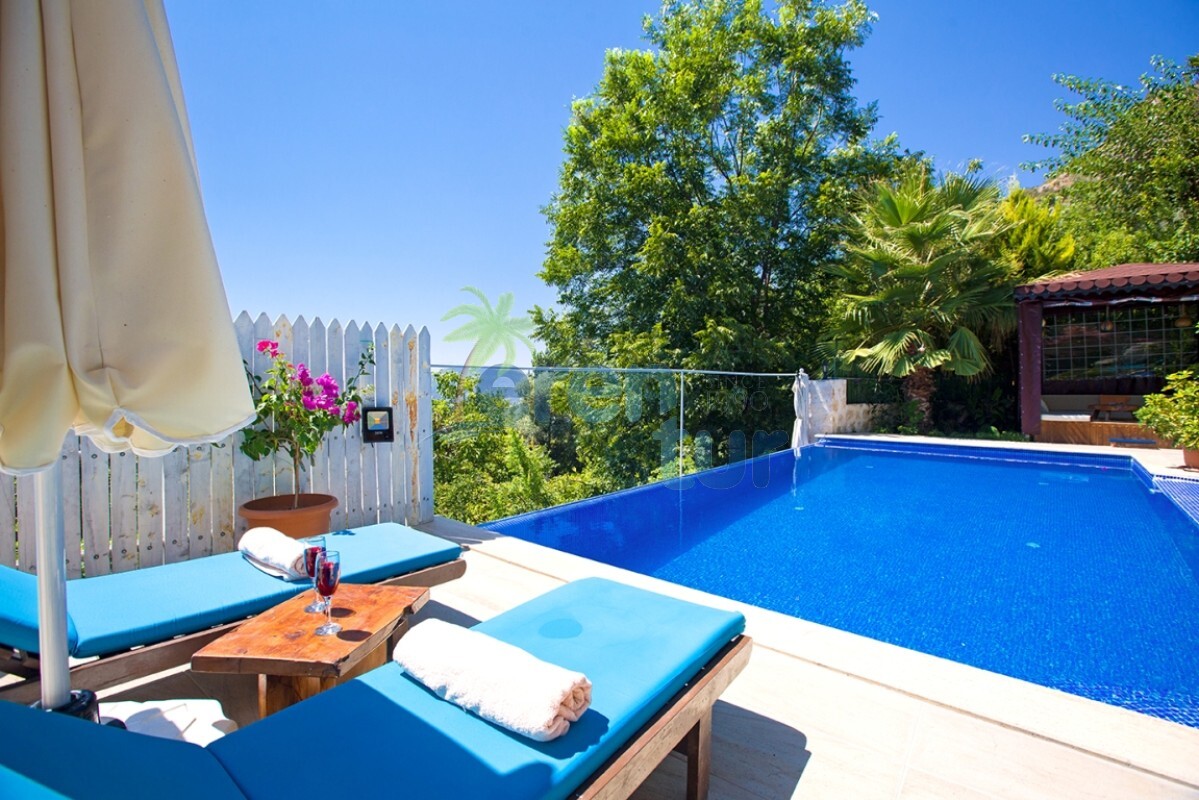 Villamız etrafındaki çitlerle ve havuz önündeki perde ile korunaklı hale getirilmiştir. Bu sayede, muhafazakar ailelerimiz ve balayı çiftlerimiz için de ideal bir seçim olmaktadır.