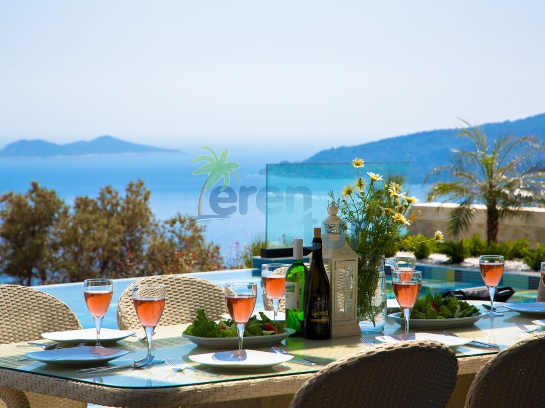 Kalkan Kalamarda bulunan villamız, Kalamar Koyu ve deniz manzaralı son derece lüks ve konforlu dekorasyonu ile siz değerli müşterilerimizi beklemektedir. 4 yatak odası ile 8 kişilik konaklama kapasitesine sahiptir. Villamız plaja, markete ve şehir merkezine yakın konumuyla ön plana çıkmaktadır. Özel havuzu ve çocuk havuzu ile geniş ailelerin tercih ettiği villamız, harika manzarasıyla da dikkat çekmektedir. Villamız, müşterilerimizin rahatı düşünülerek tasarlanmıştır ve son derece lüks eşyalarla dizayn edilmiştir. Tatiliniz boyunca ihtiyacınız olan her şeyi bulabileceğiniz villamızda, çamaşır makinesi, bulaşık makinesi, ütü ve saç kurutma makinesi gibi temel eşyalar mevcuttur. Her odada klima bulunması sayesinde sıcak yaz günlerinde bile serin kalabilirsiniz.