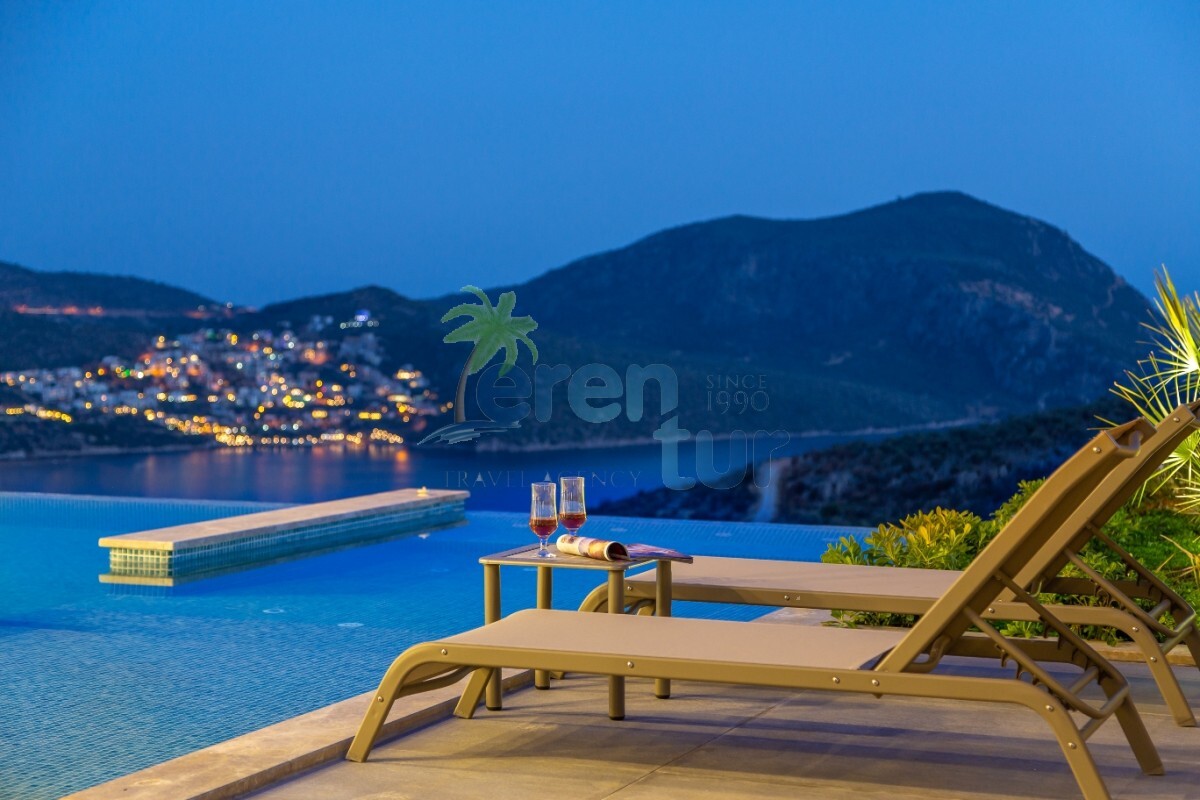 Villamız Kalkan Kalamar mevkiinde yer almaktadır. 5 yatak odası ile 10 kişilik konaklama kapasitesine sahiptir. Villamız muhteşem bir deniz manzarasına ev sahipliği yapmaktadır. Lüks ve modern yapısı ile dikkat çeken villamız merkeze ve plaja 1 km mesafede yer almaktadır. Kısa sürede ulaşım sağlayabilirsiniz. Villamızda konforunuz için her şey düşünülmüş olup, ihtiyacınız olacak araç gereçler bulunmaktadır.