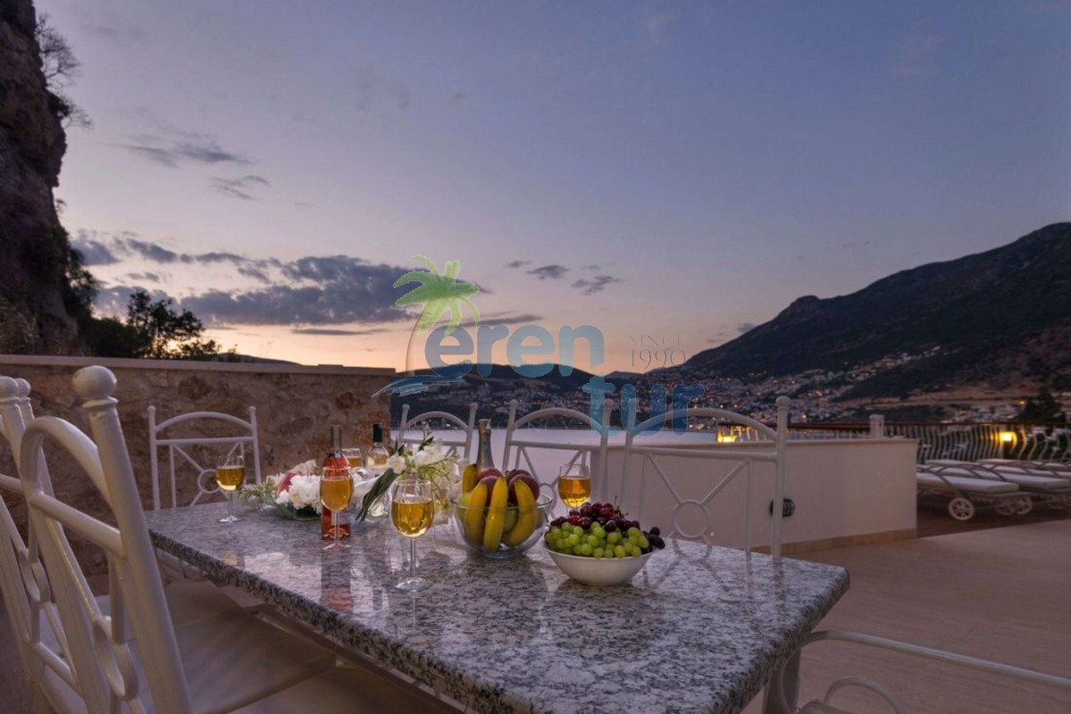 Kalkan Kışla mevkiinde bulunan tatil villamız 6 yatak odası ile 12 kişilik konaklama kapasitesine sahiptir. Villamız Kalkan bölgesinin sık tercih edilen mevkiilerinden biri olan Kışla mevkiindedir. Denize sadece 450 metre mesafede yer almaktadır. Kalkan şehir merkezine ise 3 km mesafededir. Aracınız ile kısa sürede ulaşım sağlayabilirsiniz. Villamızın yakınında market ve restoran mevcuttur. Villamız geniş ailelerimiz için ideal tatil villalarımız arasında yer almaktadır. Lüks ve modern tasarımı ile dikkat çeken villamızın havuz terasında bulunan dış jakuzi de unutulmayacak bir tatil sizleri beklemektedir. Villamızda ihtiyacınız olacak araç gereçler yer almaktadır.