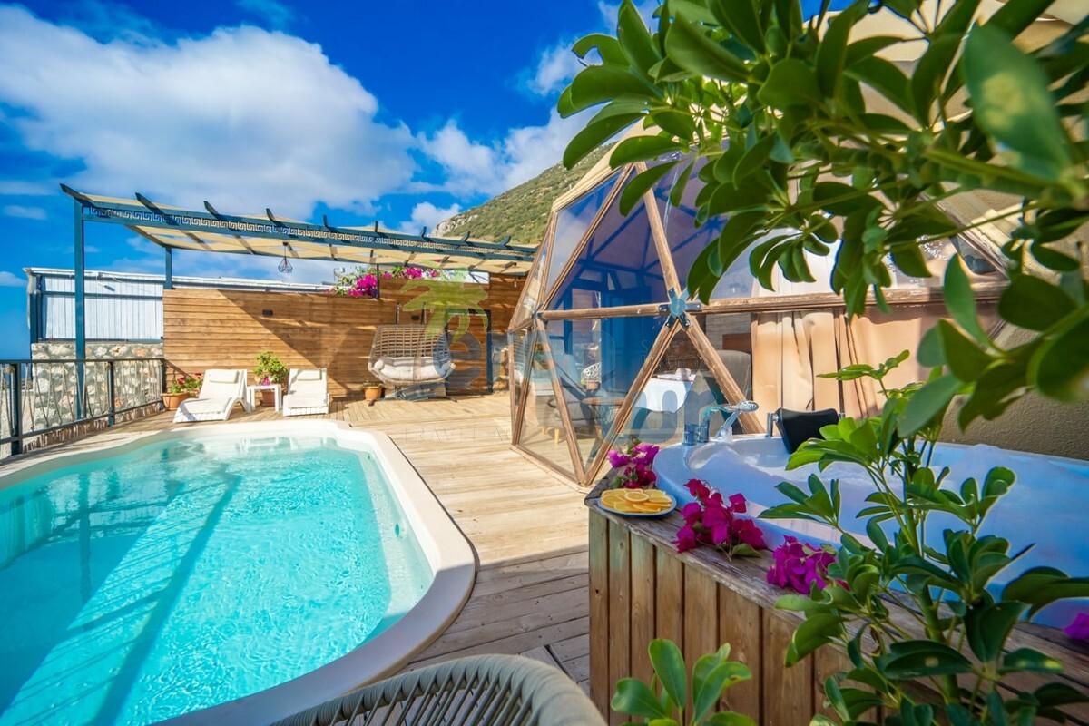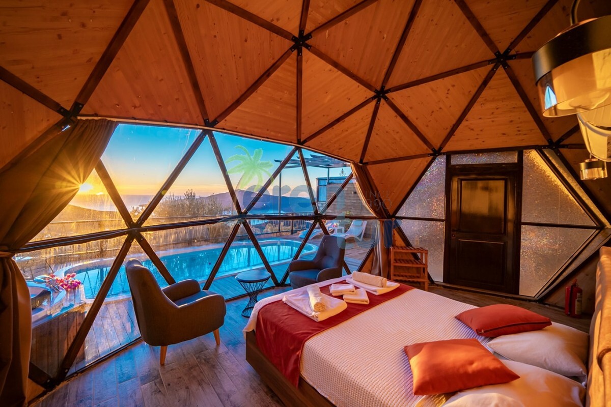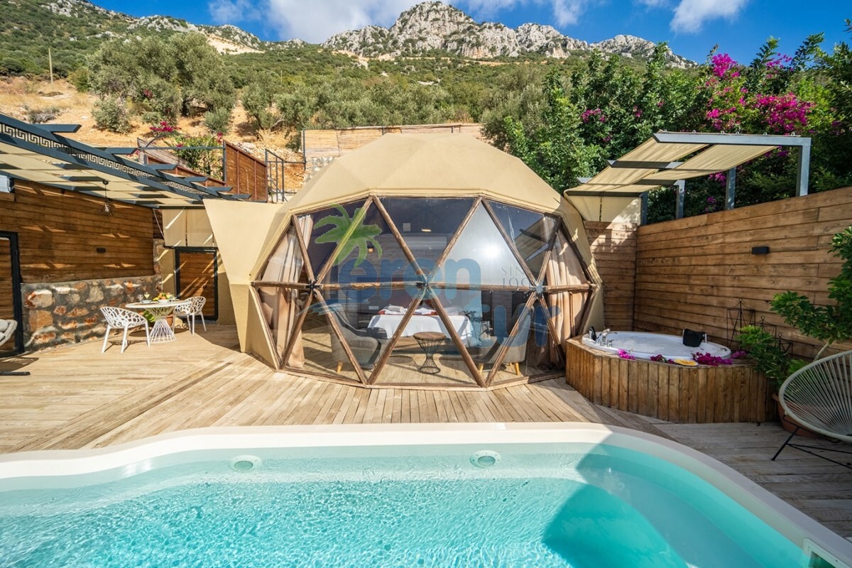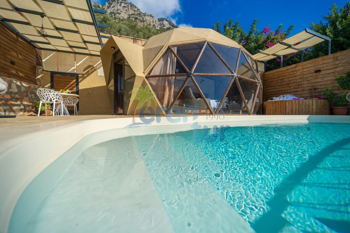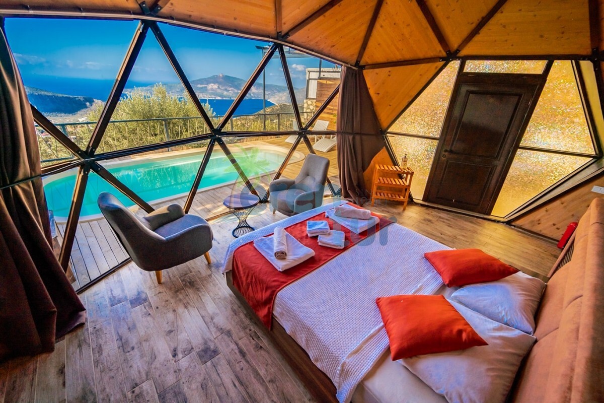 KAŞ DOMES / KALKAN etabımızda deniz manzaralı ÖZEL HAVUZLU aynı iç konseptli 3 adet kubbe villamız bulunmaktadır. Burada yer bulamayan konuklarımız için aynı konseptte İslamlar etabımızda da DOĞA manzaralı 5 adet villamız mevcuttur. (Villa kodu: KAV1500) Ayrı ayrı havuz teraslarına sahip olan kubbe tipi villalarımız, glamping kültürü ile çoğalan çadır konseptlerine nazaran Türkiye’de ilk olarak 7 mt çapında ve 4,30 kubbe yüksekliği ile 38 m2 olarak AHŞAP olarak imal edilmiştir. Binalarımızda güvenlik ve iklim endişesi olmadan rahatlıkla kalabilirsiniz.