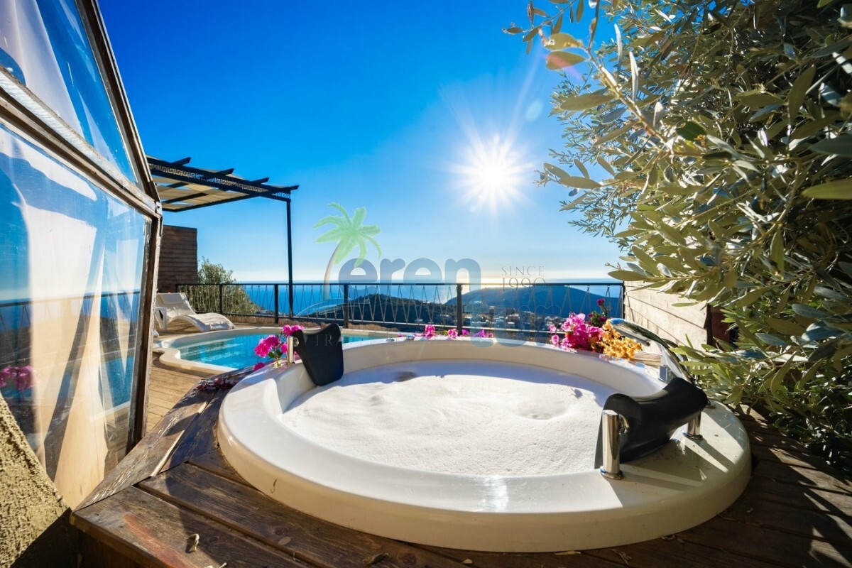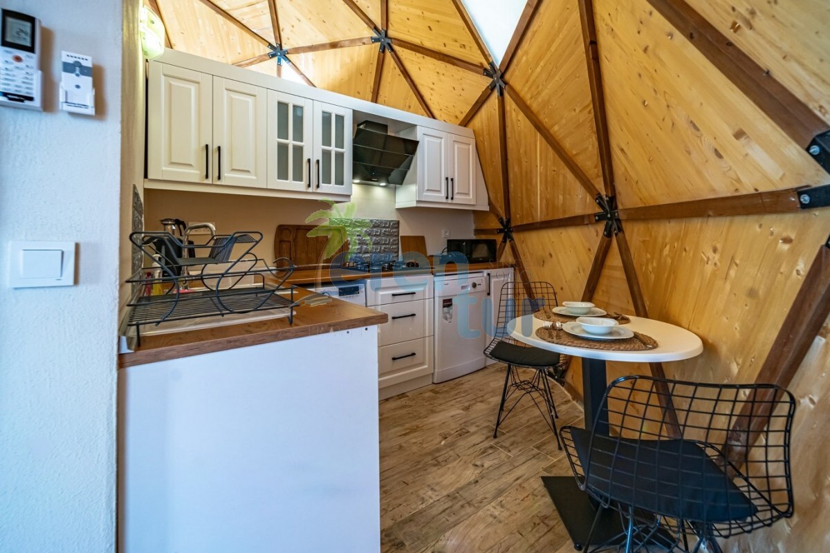 Kaş Kalkan’a 3,5 km mesafede bulunan muhteşem manzaralı kubbe villalarımız 1+0 olarak dizayn edilmiş olup 2 kişilik kapasiteye sahiptir. KAŞ DOMES / KALKAN etabımızda deniz manzaralı ÖZEL HAVUZLU aynı iç konseptli 3 adet kubbe villamız bulunmaktadır. Burada yer bulamayan konuklarımız için aynı konseptte İslamlar etabımızda da DOĞA manzaralı 5 adet villamız mevcuttur. (Villa kodu: KAV1500) Ayrı ayrı havuz teraslarına sahip olan kubbe tipi villalarımız, glamping kültürü ile çoğalan çadır konseptlerine nazaran Türkiye’de ilk olarak 7 mt çapında ve 4,30 kubbe yüksekliği ile 38 m2 olarak AHŞAP olarak imal edilmiştir. Binalarımızda güvenlik ve iklim endişesi olmadan rahatlıkla kalabilirsiniz. Villalarımızın iç mekanında standart olarak 2 kişilik yatak, 2 adet koltuk ve sehpası, makyaj masası, küçük yemek masası, Akıllı TV ve Uydu yayını, açık gardrop, Yangın söndürme tüpü, Klima ve uzaktan kumandalı Tavan vantilatörü bulunmaktadır. Mutfak bölümünde ise Çamaşır-Bulaşık Makinası, Mini buzdolabı (114 Lt), Mikrodalga fırın, Ankastre ocak- davlumbaz, yeterli sayıda mutfak malzemesi bulunmaktadır. Kısa süreli konaklayan konuklarımız için Çay kahve kutusu ve buklet malzemeleri (Tek kullanmlık Şampuan, saçkremi, sabun vs…) tek seferlik olarak konulacaktır. Villalarımızın dış mekanında sizleri basamaklı girişi ile özel bir yüzme havuzu beklemektedir (6 mt x 3 mt Derinlik 1,35 mt). Ayrıca 3 villamızda da manzaraya karşı keyif yapabileceğiniz geniş ebat çift kişilik sıcak su jakuzi bulunmaktadır. İki adet şezlong, şemsiye, salıncak, geniş yemek masası ve oturma grubu standart olarak mevcuttur. Doğa içinde Glamping kültürü ile Villa konseptini bir araya getiren yeni tarz tesislerimiz sadece yetişkinlere açık olup maalesef çocuk kabul edilmemektedir. (Binaların birbirine yakın olması ve ahşap yapıda olabilecek kıymık ve benzeri bir sıkıntı yaşanmaması içindir) Ayrıca doğa içinde ve ahşap konsept dolayısı ile binalarımızda Mangal ve barbekü yapmak yasaktır. Ancak konuklarımızın bu keyiften Mahrum kalmamaları için her binamızda küçük tüplü Mangal mevcuttur. Sadece bu mangallar ile barbekü keyfini yapabilirsiniz. Villalarımız, villa turizminin kalbi olan Kalkan şehir merkezine yaklaşık 3,5 km. uzaklıkta olup, araç ile 5-10 dakika mesafededir. Yol üzerinde 1 km mesafede Şok ve benzeri küçük marketler bulunmaktadır. Ayrıca bölgedeki restaurantlardan paket servis verebilirsiniz. Villamızın dış mekanında açık otopark ve Wifi İnternet bağlantısı mevcuttur. Minimum konaklama 2 gecedir ve temizlik ücreti bulunmamaktadır.