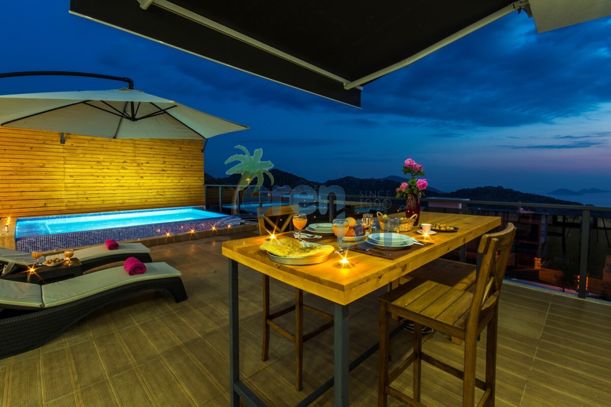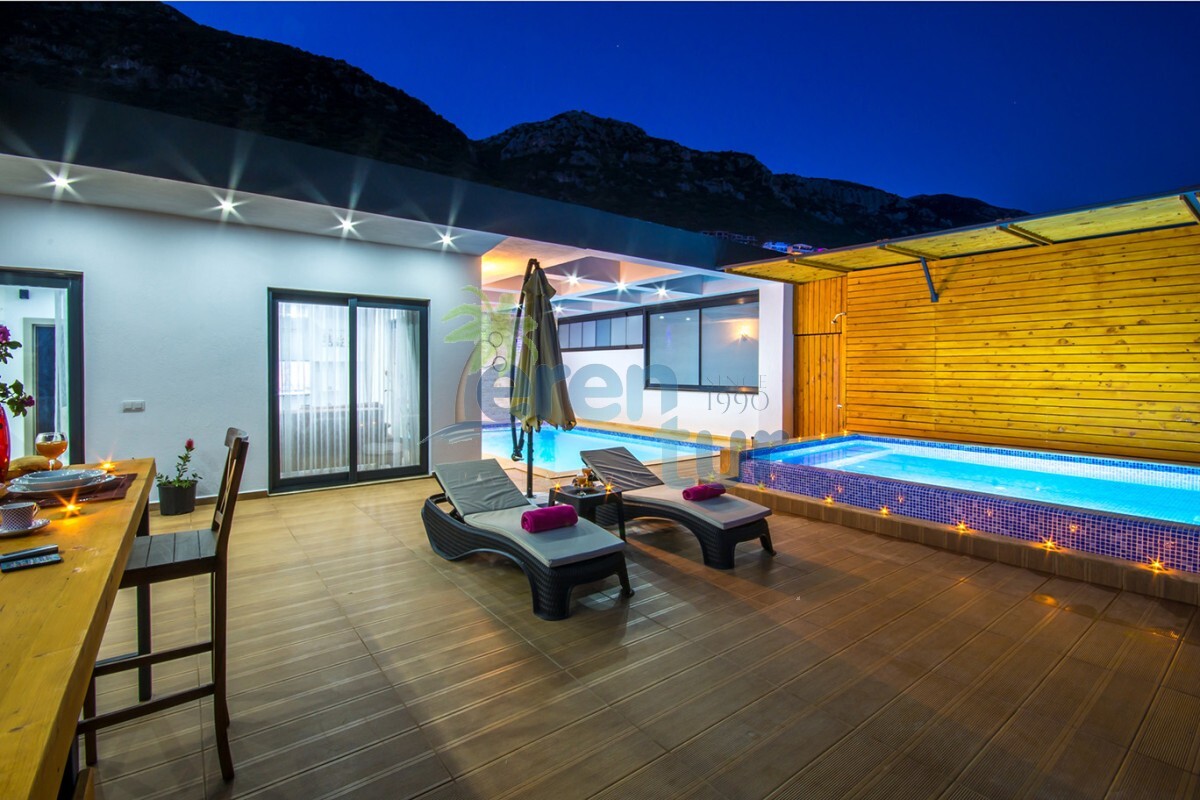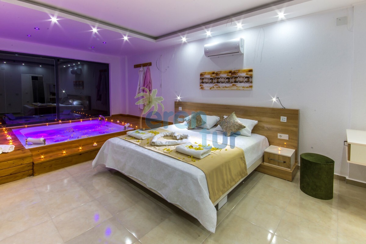 Kalkan Kördere mevkiinde bulunan bu lüks balayı villası, tek yatak odası ile 2 kişilik kapasiteye sahiptir. Ancak 3 kişilik aileler içinde uygun bir villadır 2 yetişkin bir küçük çocuk kalabilir villamızda .Villamızın salondaki kanepeleri açılmaktadır bu nedenle 2 yetişkin ve bir küçük çocuğun kalabileceği kapasitede bir villadır.Bebeği olan konuklarımız içinde ayrıca bebek yatağı konulacaktır.