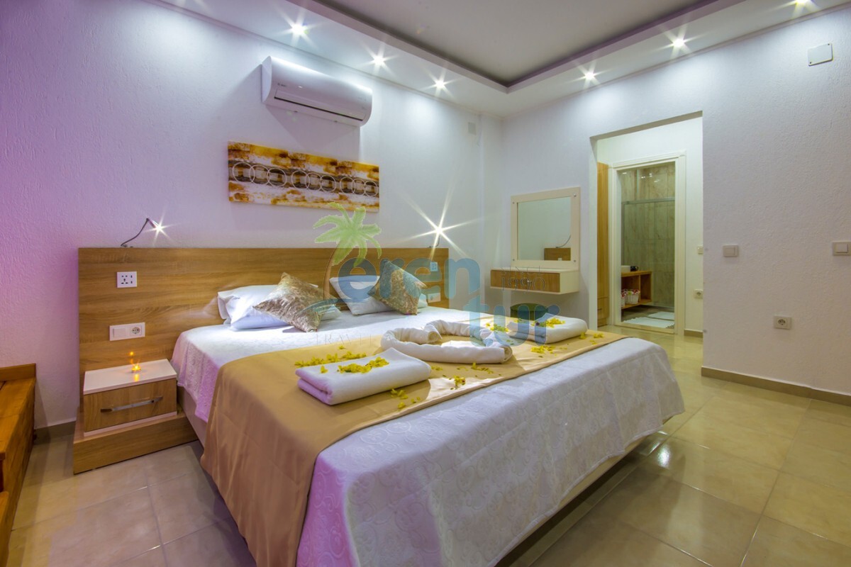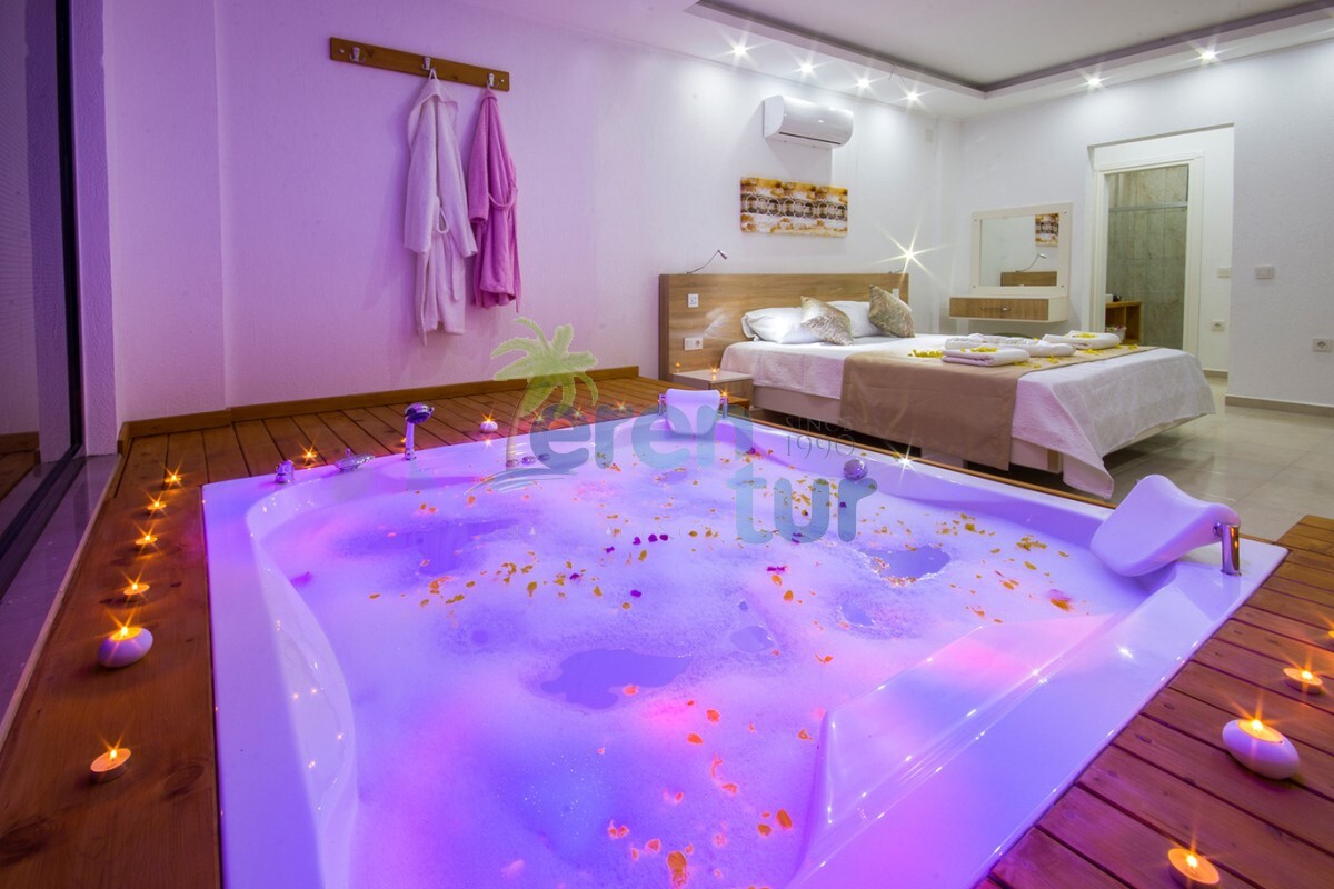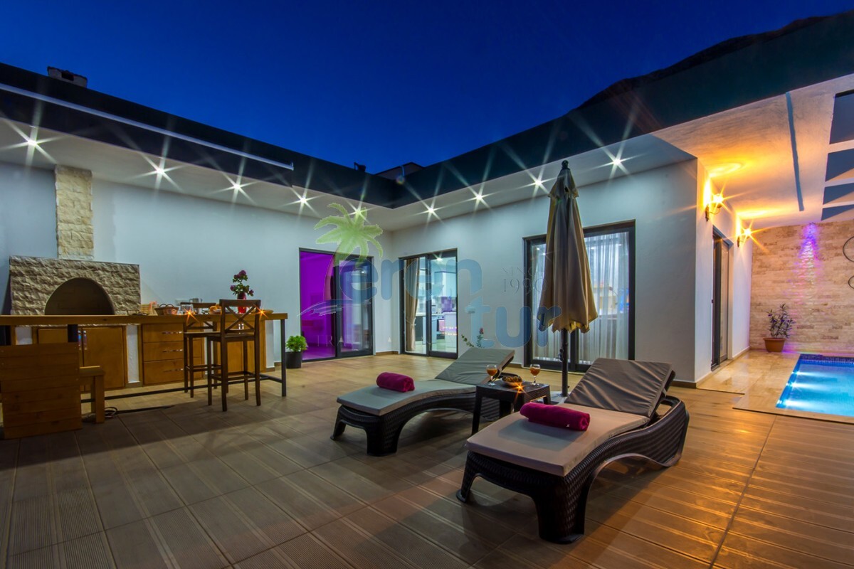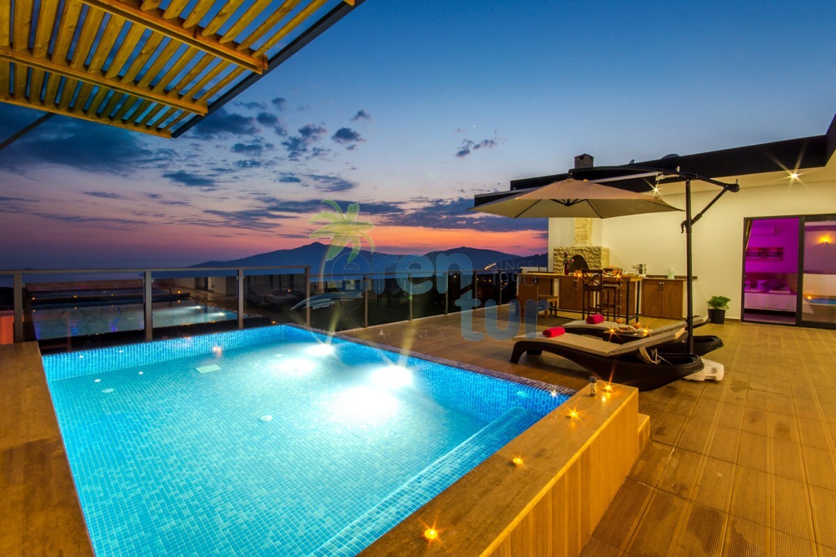 Kalkan Kördere mevkiinde bulunan bu lüks balayı villası, tek yatak odası ile 2 kişilik kapasiteye sahiptir. Ancak 3 kişilik aileler içinde uygun bir villadır 2 yetişkin bir küçük çocuk kalabilir villamızda .Villamızın salondaki kanepeleri açılmaktadır bu nedenle 2 yetişkin ve bir küçük çocuğun kalabileceği kapasitede bir villadır.Bebeği olan konuklarımız içinde ayrıca bebek yatağı konulacaktır.