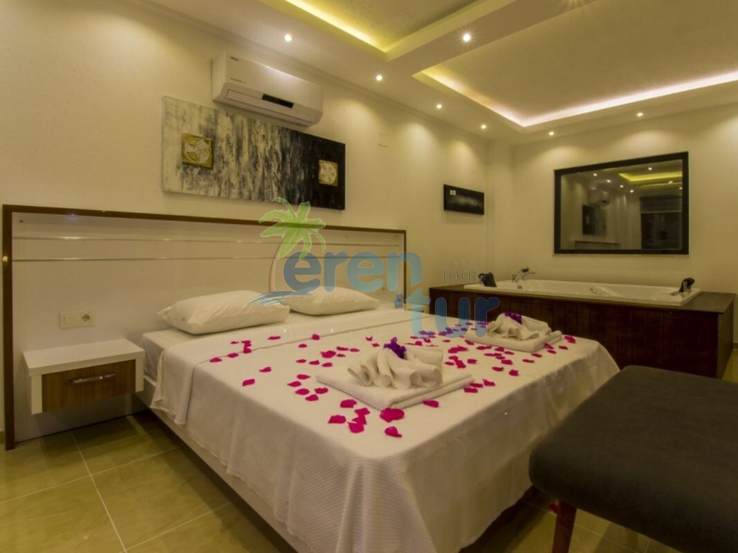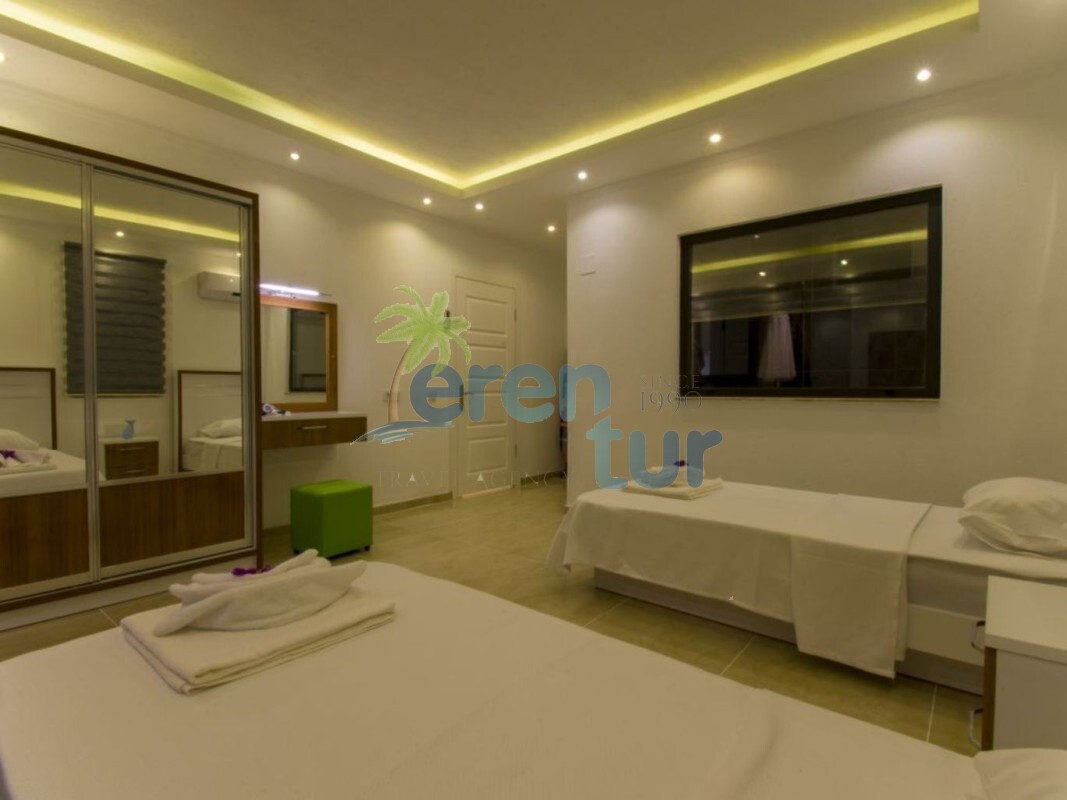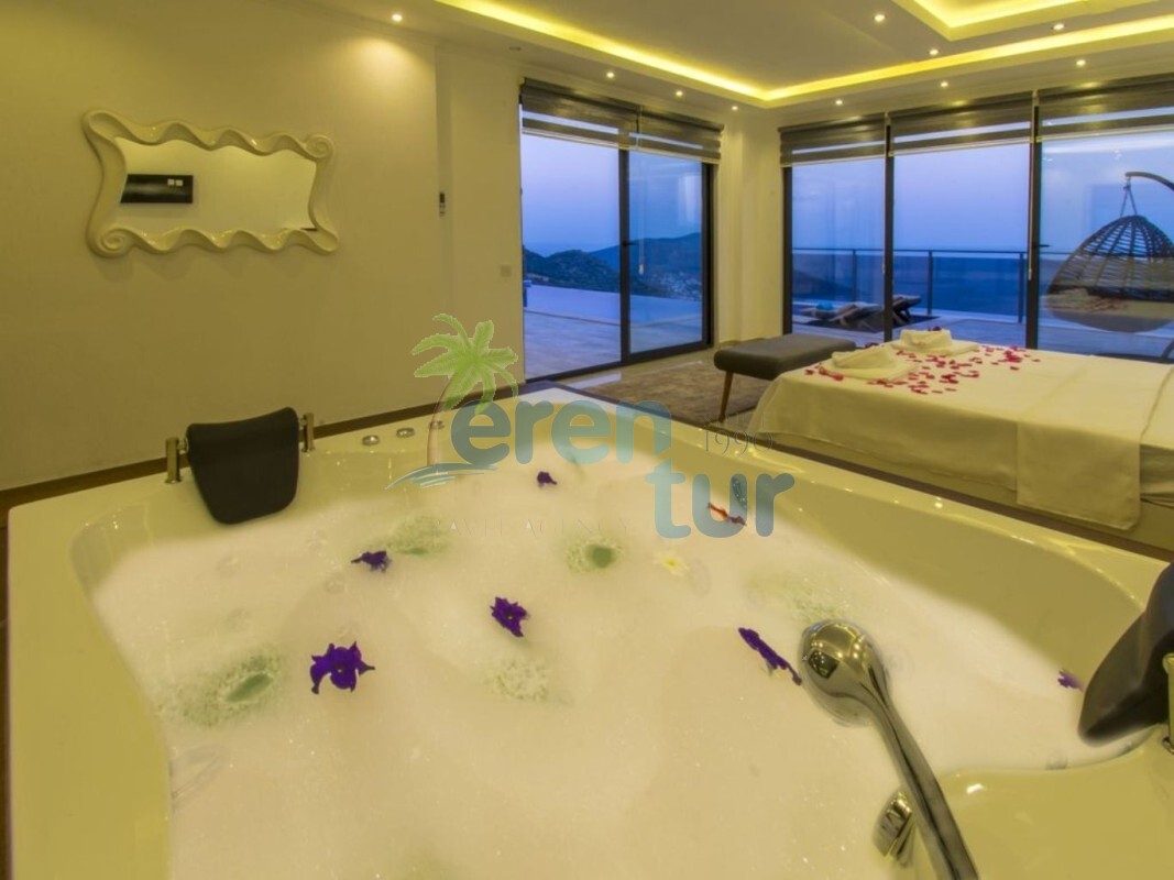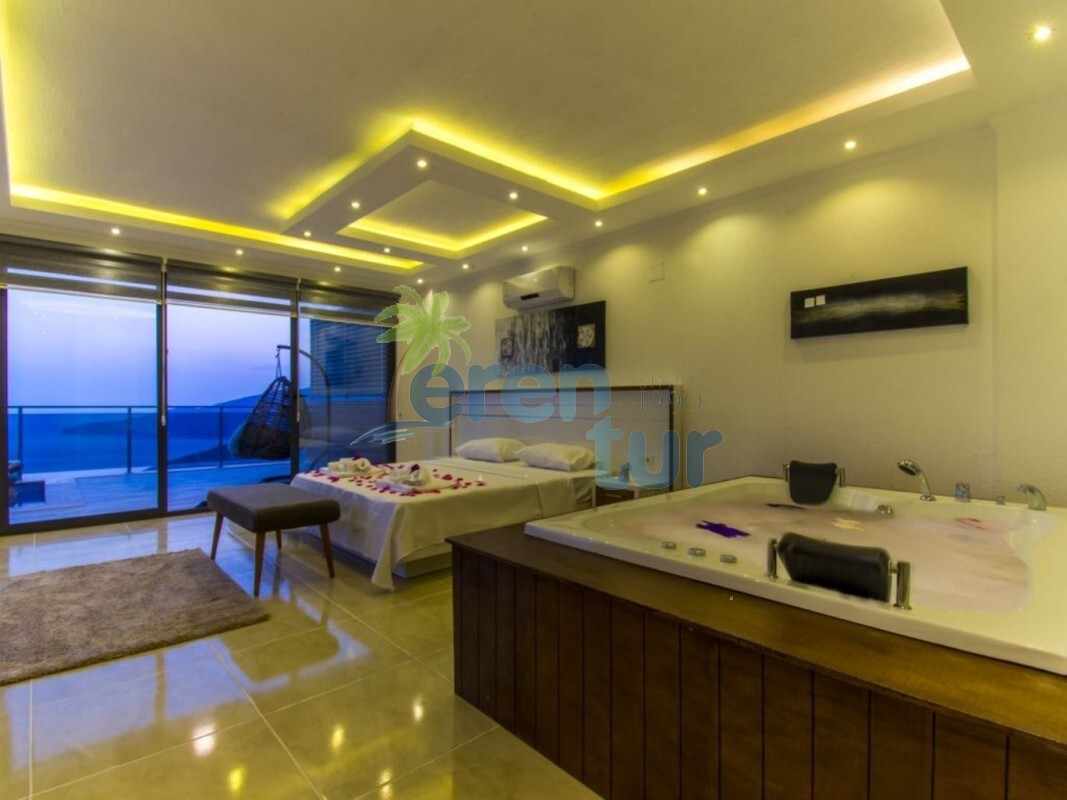 Ana yatak odasında, büyük boyutlu (190 x 150) bir jakuzi de dahil olmak üzere tüm ihtiyacınız olan olanaklar mevcuttur. Villanın büyük yüzme havuzu, havuz terası ve sığ havuzu da oldukça geniş ve ferah bir alana sahiptir. Villanın çevresinde birçok yapılaşma olsa da, havuz ve güneşlenme alanı dışarıdan görünmez şekilde muhafaza edildiği için muhafazakar ailelere uygun bir seçenektir.