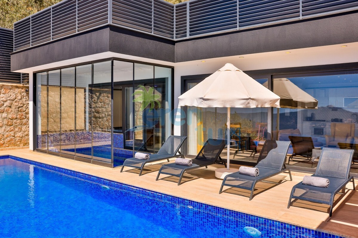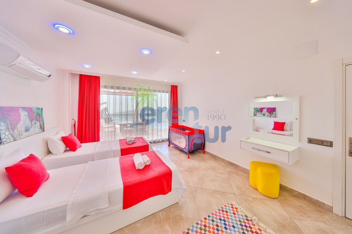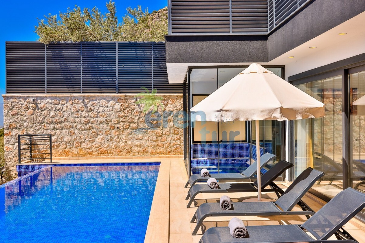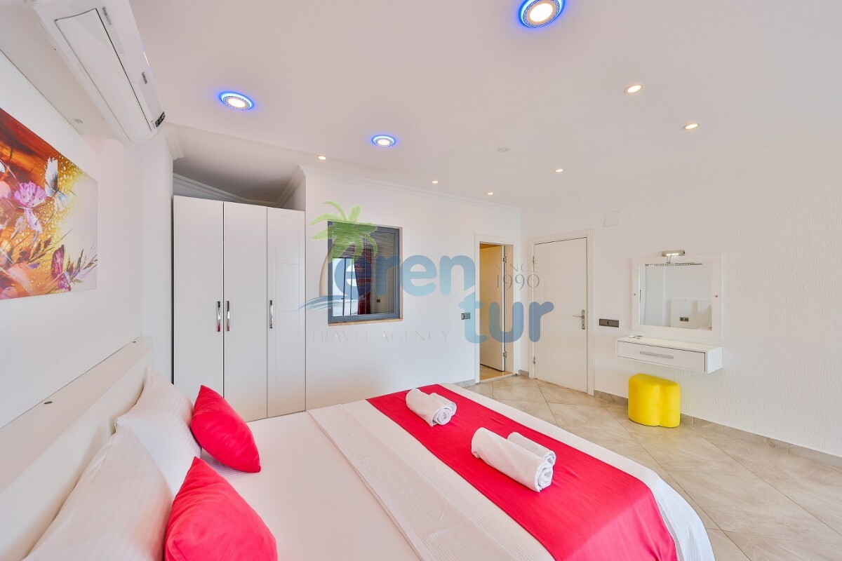 Kalkan Kördere mevkiinde bulunan bu lüks villa 2 süit (banyolu) yatak odası ile 4 kişilik kapasiteye sahiptir. Oturma odasındaki kanepe ile kapasite 5 kişiye kadar çıkabilir. Kalkan'ın en güzel manzaraya sahip bölgesinde Torosların yamaçlarında inşaa edilerek özenle dizayn edilen villamız 3 villadan oluşan bir kompleks içinde 3 numaralı villa olup villaların hiçbiri birbirini görmemektedir, rahatsız etmemektedir.