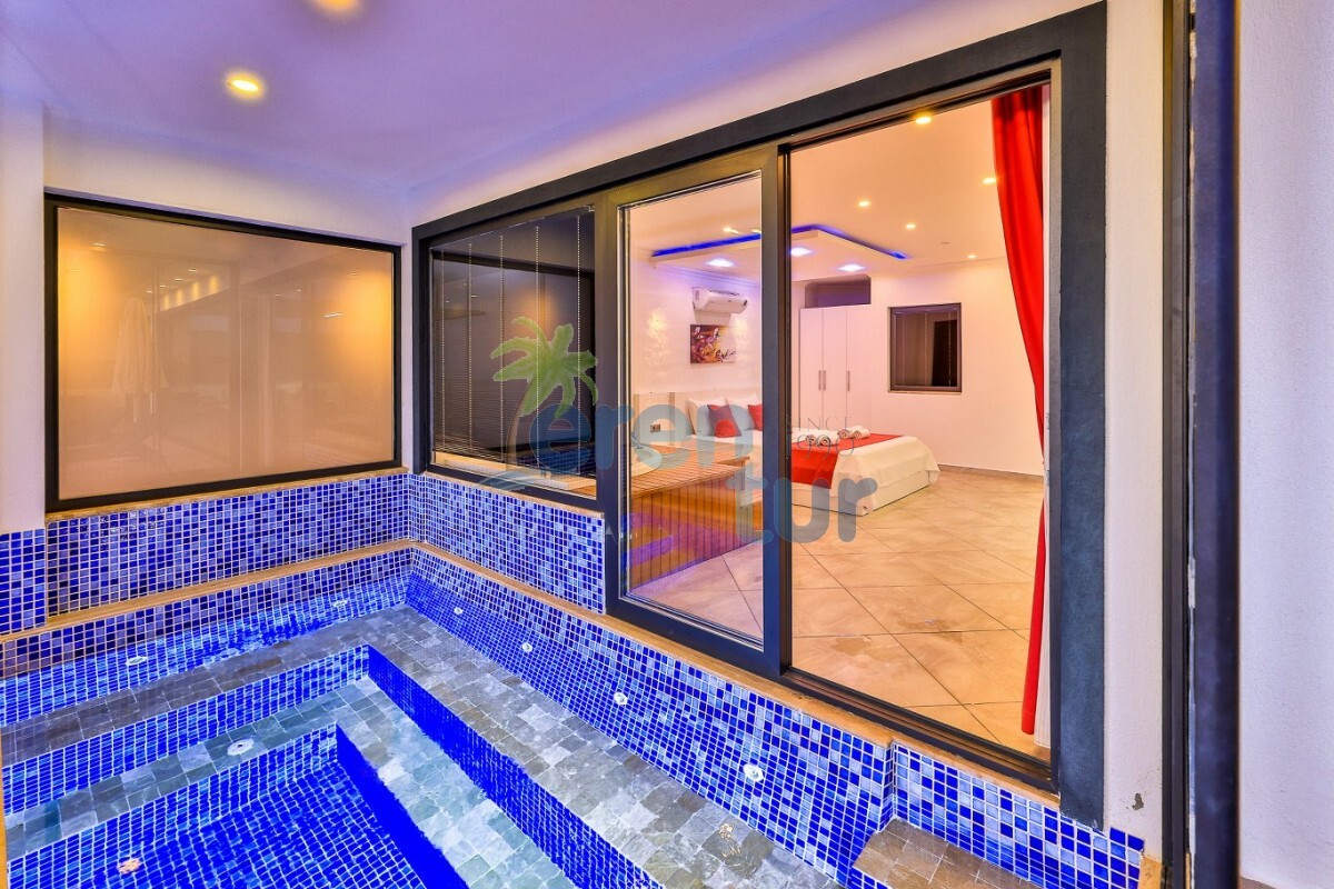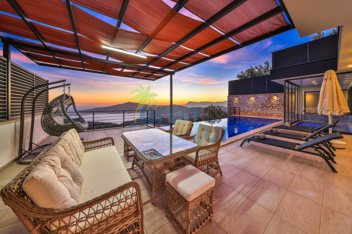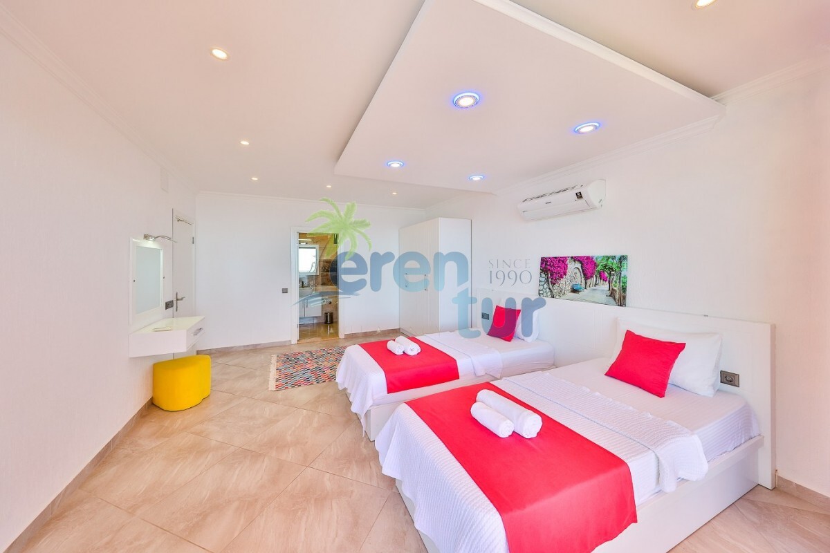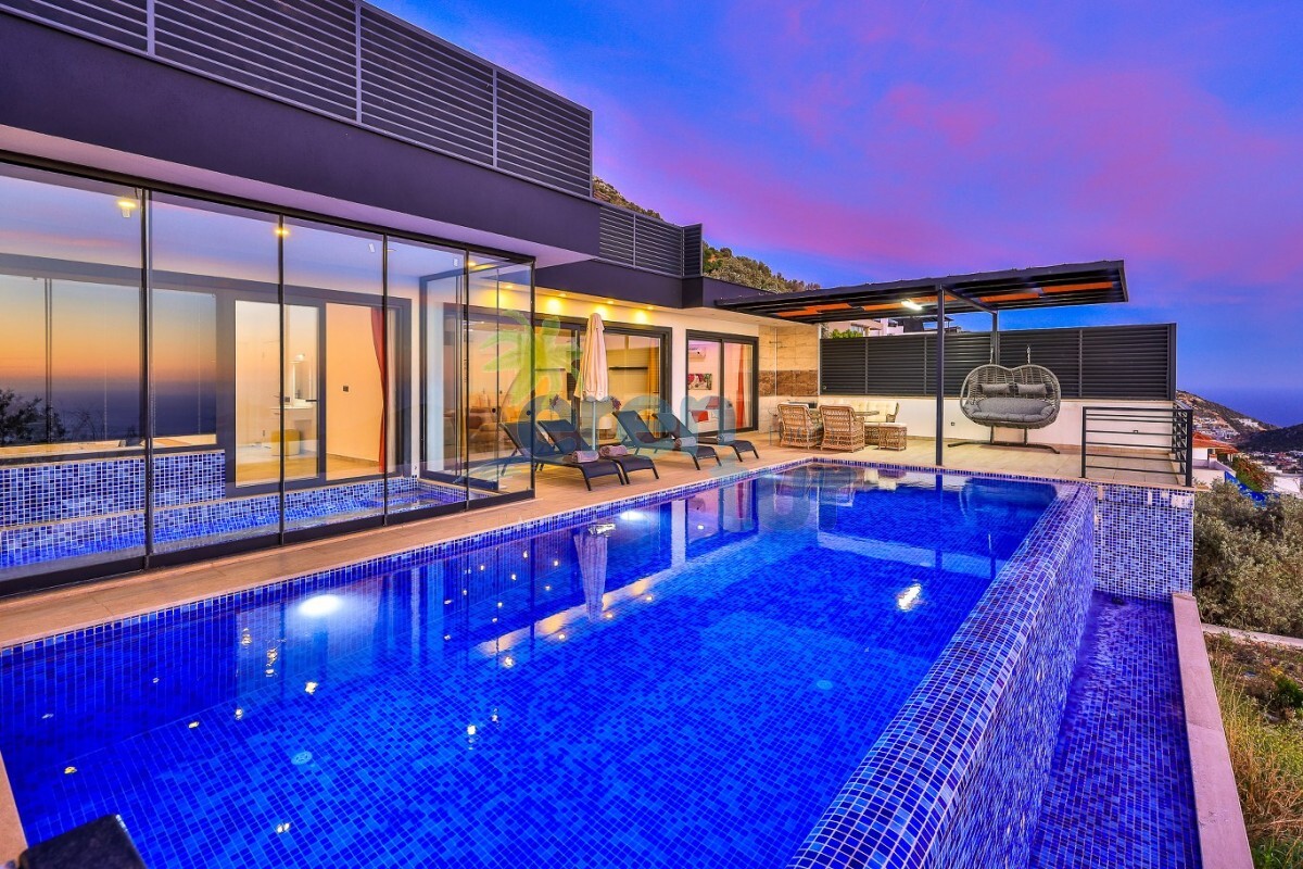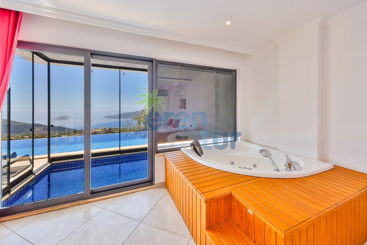 Kalkan Kördere mevkiinde bulunan bu lüks villa 2 süit (banyolu) yatak odası ile 4 kişilik kapasiteye sahiptir. Oturma odasındaki kanepe ile kapasite 5 kişiye kadar çıkabilir. Kalkan'ın en güzel manzaraya sahip bölgesinde Torosların yamaçlarında inşaa edilerek özenle dizayn edilen villamız 3 villadan oluşan bir kompleks içinde 3 numaralı villa olup villaların hiçbiri birbirini görmemektedir, rahatsız etmemektedir.