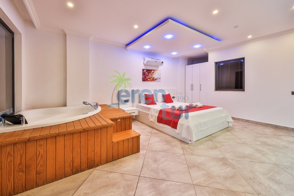 Tek kattan oluşan villamızda oturma odası, açık plan bir mutfak, çamaşır odası, bir adet kapalı havuzlu, jakuzili ve banyolu ebeveyn yatak odası, bir adette banyolu genç yatak odası bulunmaktadır. 4 mt x 2,5 mt ebatlarında 1,20 derinliğinde olan kapalı havuzumuz katlanır cam ile kapanıp açılma özelliğine sahip olup hidromasaj ve ısıtma tertibatı bulunmaktadır. (Bu tip havuzlarda havanın durumunda göre ortalama 1 günde ısınmakta ve havuz ısısı 25 derece ile maksimum 30 derece arasında olmaktadır.) NOT: Havuz ısıtma için günlük 750 TL ek ücret talep edilmektedir ısıtma sistemleri giriş tarihinden 1 gün önce açıldığı için minimum 2 gece konaklamalı da 3 gecelik ısıtma ücreti talep edilecektir.