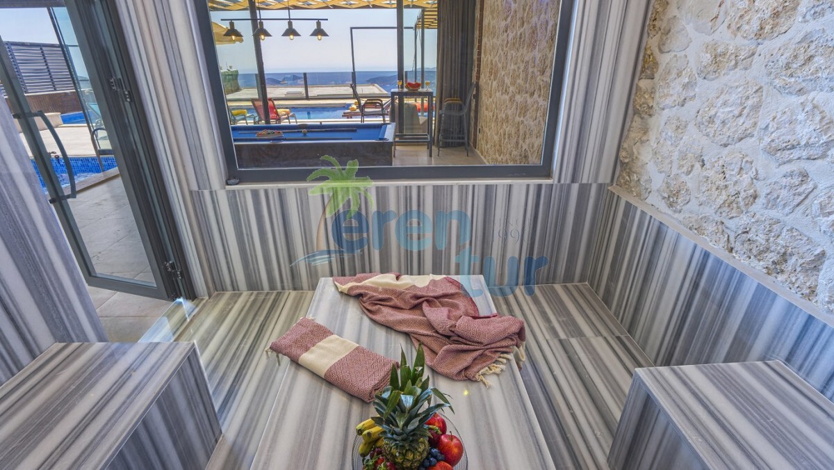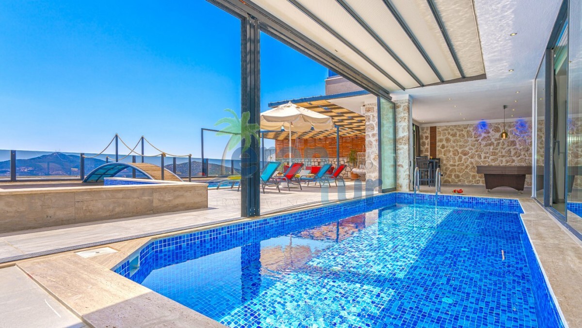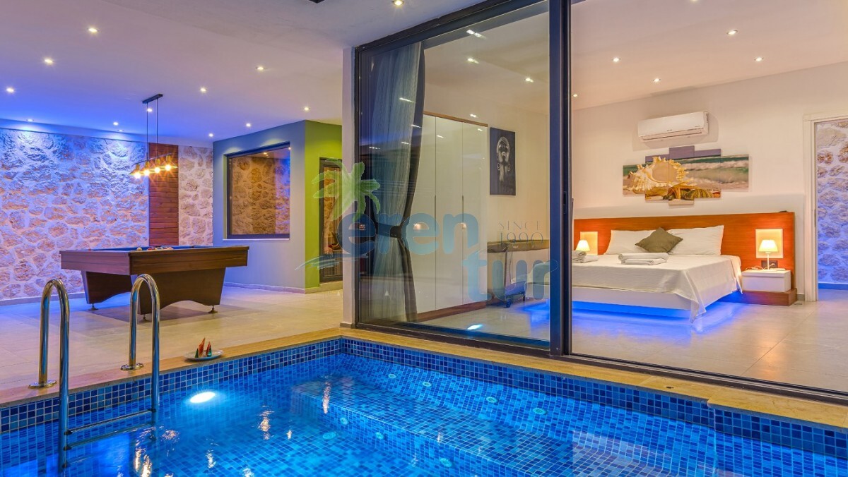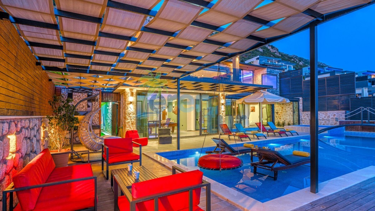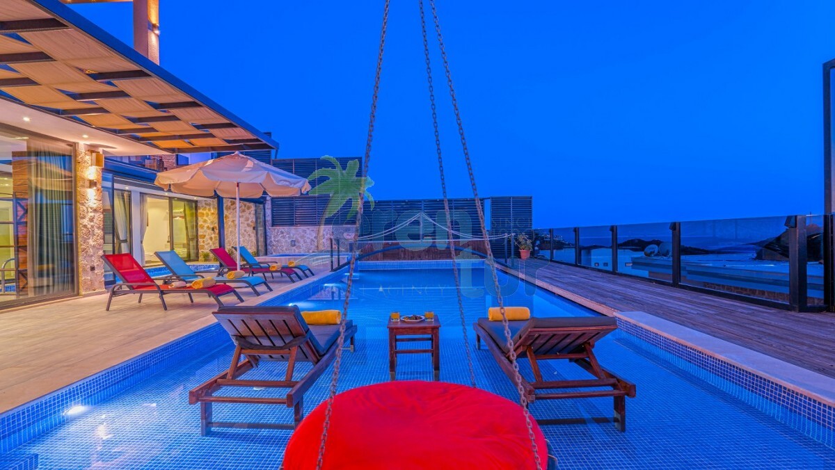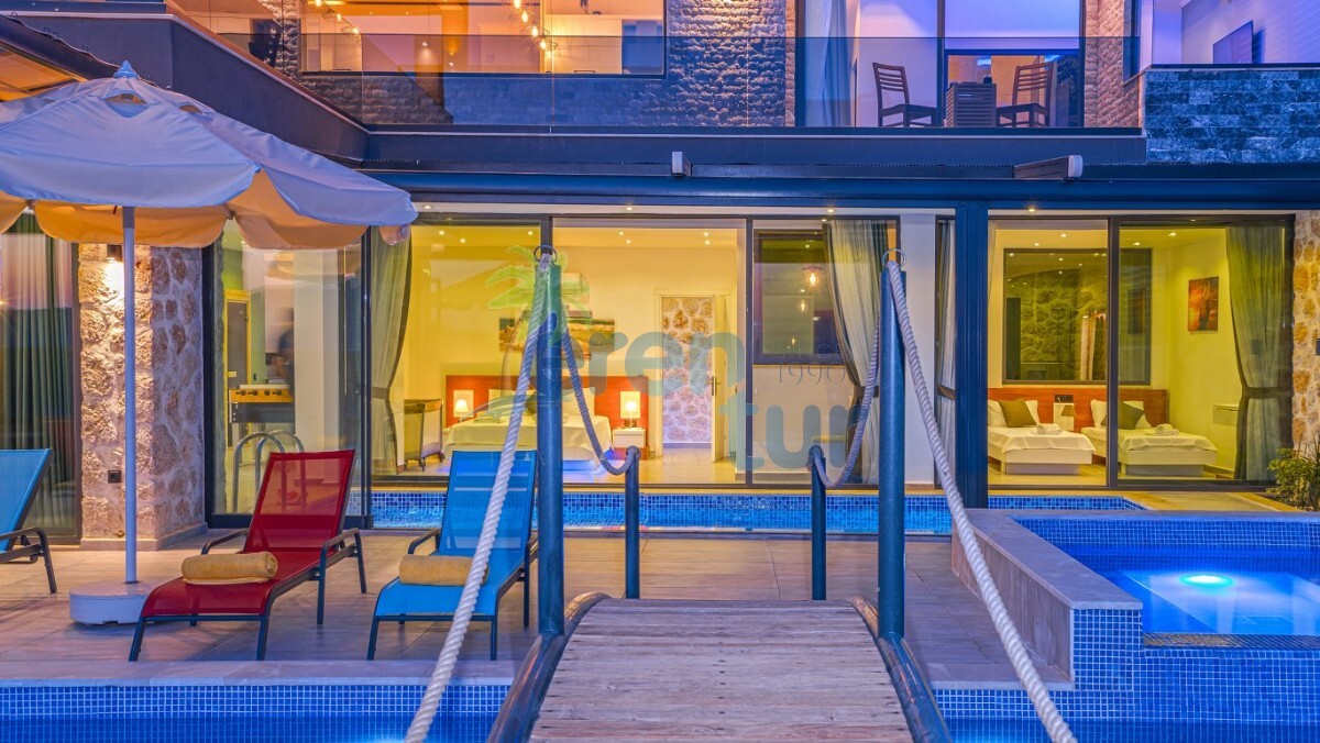 Villamız Kalkan Kördere mevkiinde yer almaktadır. 3 yatak odası ile 6 kişilik konaklama kapasitesine sahiptir. Villamız muhteşem bir manzaraya ev sahipliği yaparken geniş havuzu ile güzel anları şahitlik yapabilirsiniz. Villamız lüks tasarımı ile dikkat çekmektedir. Özel olarak dizayn edilen yata odalarında dışarıya açılan katlanır cam ve açılır kapanır tavan sistemi ile kapatılmıştır. Burada bulunan küçük kapalı havuz ile kış dönemlerinde de villamızda konaklama yapabilirsiniz. Villamızda yerden ısıtma mevcuttur. Günlük olarak ekstra 1250 TL ücret talep edilmektedir. Küçük kapalı havuz için ise günlük 1000 TL ısıtma ücreti talep edilmektedir. Havuz kısmı korunaklı olan villamız muhafazakar ailelerimiz ve balayı çiftlerimiz için ideal tatil villalarımız arasındadır.