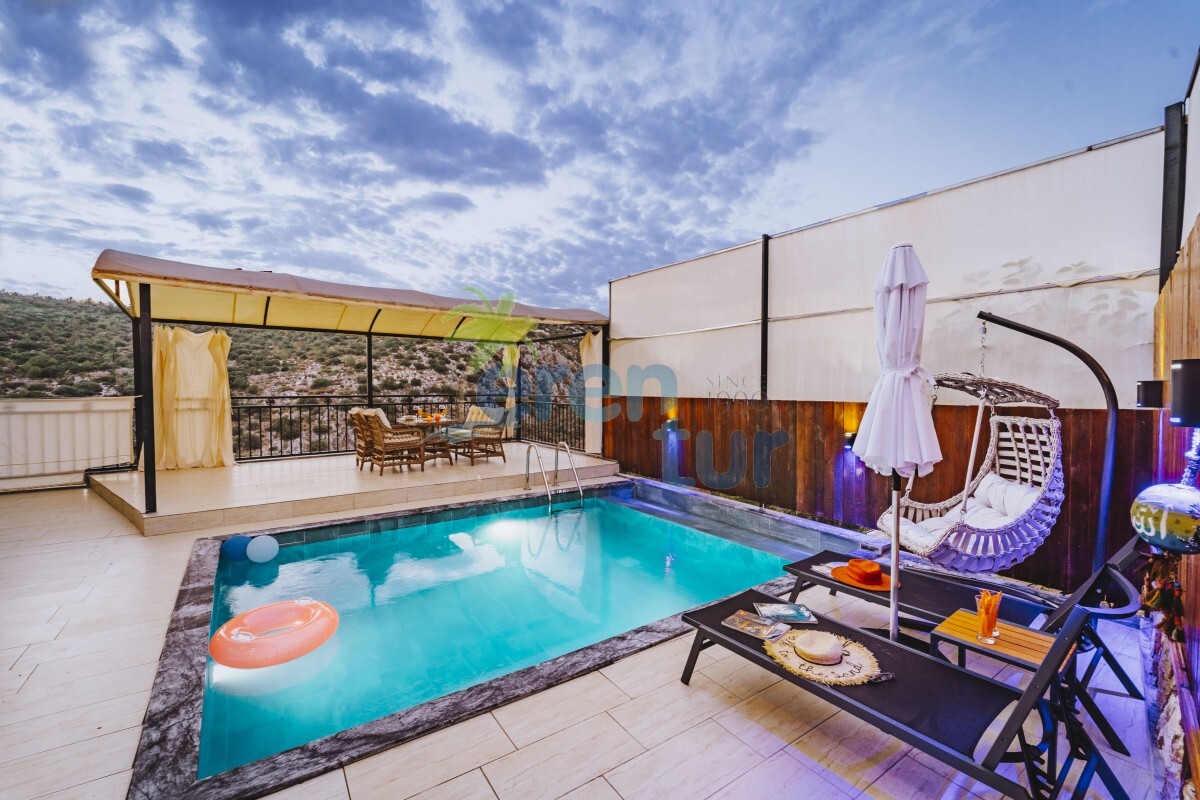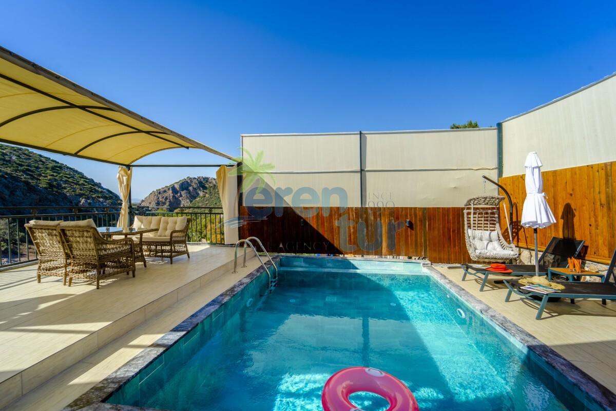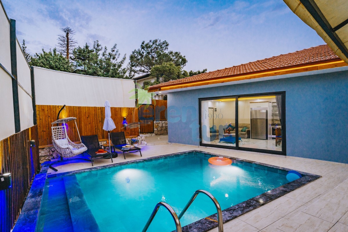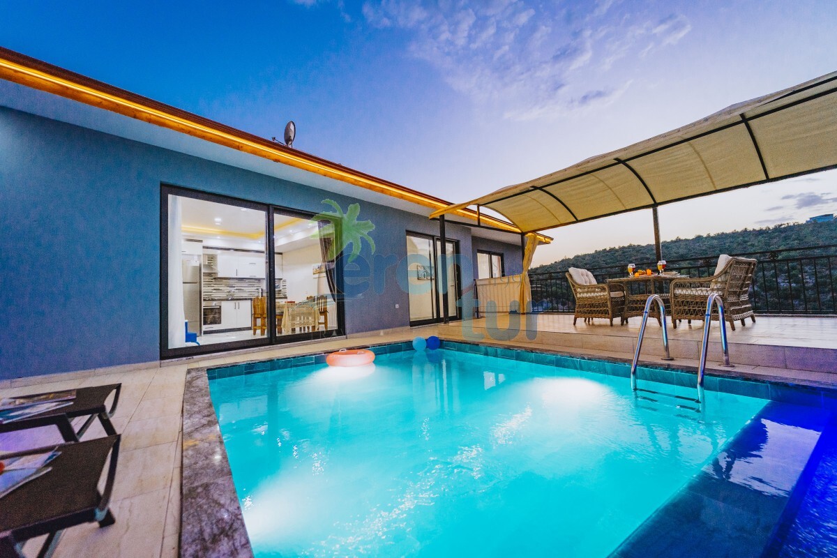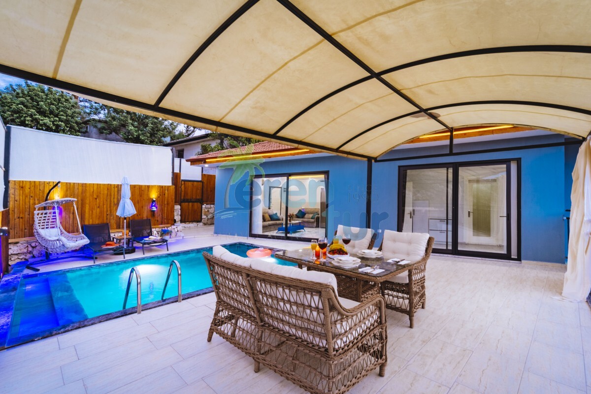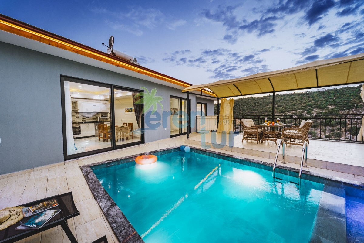Kalkan Patara'nın giriş tepesinde yer alan havadar, vadi ve deniz manzaralı, 1 yatak odalı 2 kişilik konaklama kapasiteli villadır. Villamızın içerisi modern ve konforlu bir şekilde dizayn edilmiş olup sizler için hazır hale getirilmiştir. Villamız havuz terası ve bahçesi korunaklı olup dışarıdan gözükmemektedir.