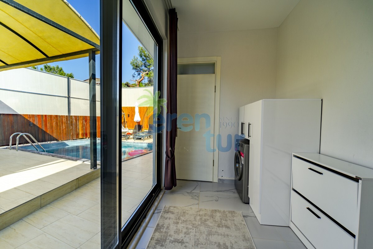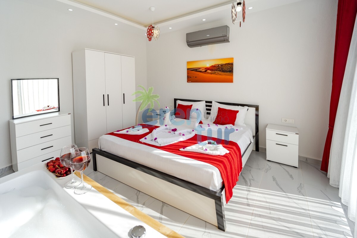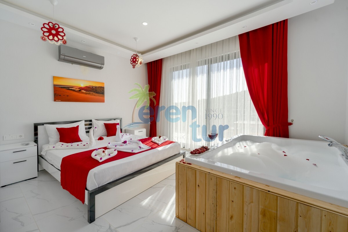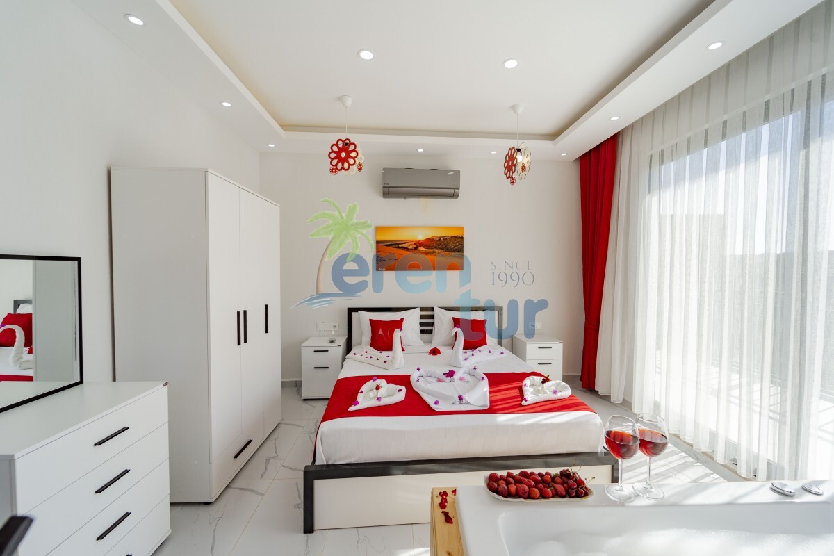 Balayı çiftleri ve küçük çekirdek aileler için ideal bir seçenektir. Villamızın yatakodasında Bir adet çift kişilik yatak, jakuzi, klima, komodin, elbise dolabı, makyaj masası, banyo ve wc bulunmaktadır. Mutfakta ise Amerikan tarzı bir mutfağa sahip olan villanın mutfağında, buzdolabı, bulaşık makinesi, çamaşır makinesi, yemek masası, fırın, 4’lü ocak, kettle, 6 kişilik yemek takımı, tava, tencereler, çatal, bıçak takımı bulunmaktadır. Villamız korunaklı yapısı ile muhafazakar çitlerimiz içinde ideal bir seçenketir