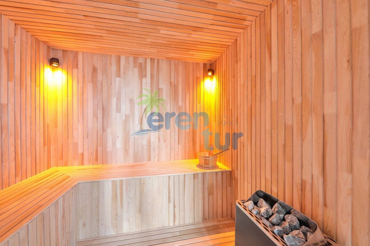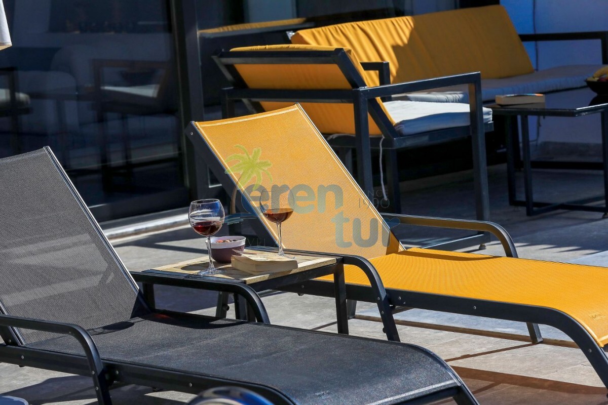 Salon: İklima, uydu alıcısı, televizyon, oturma grubu ve lavabo bulunan bir salon mevcuttur. Salon havuz katındadır. Rahatlama ve güneşlenme için geniş bir teras da bulunmaktadır. Bu alanda oturma grubu, masa ve sandalyeler yer almaktadır.