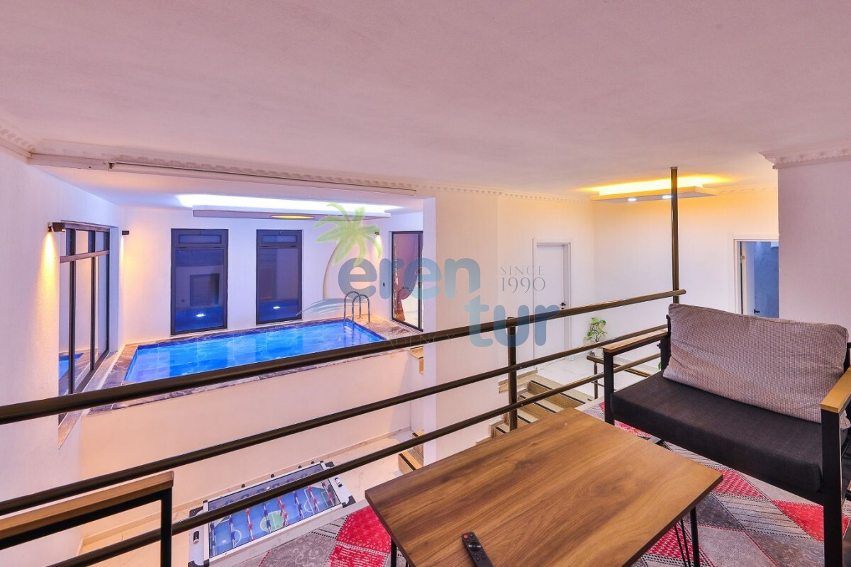 Havuz ve Bahçe: Bahçede havuz, yemek masası, pergoleli oturma grubu, salıncak, sandalyeler, mangal, şezlonglar ve güneş şemsiyesi bulunmaktadır. Havuzun düzenli bakımı günlük olarak görevli personel tarafından yapılmaktadır. Temizlik ve Bakım: Villa size temiz bir şekilde teslim edilmekte olup, haftada bir kez temizlik yapılmaktadır. İsteğe bağlı olarak ek temizlik hizmeti sunulmakta ve bu hizmet ücrete tabidir. Temizlik, yeni çarşaf, yastık kılıfı gibi talepler, görevli personel tarafından yerine getirilmektedir.